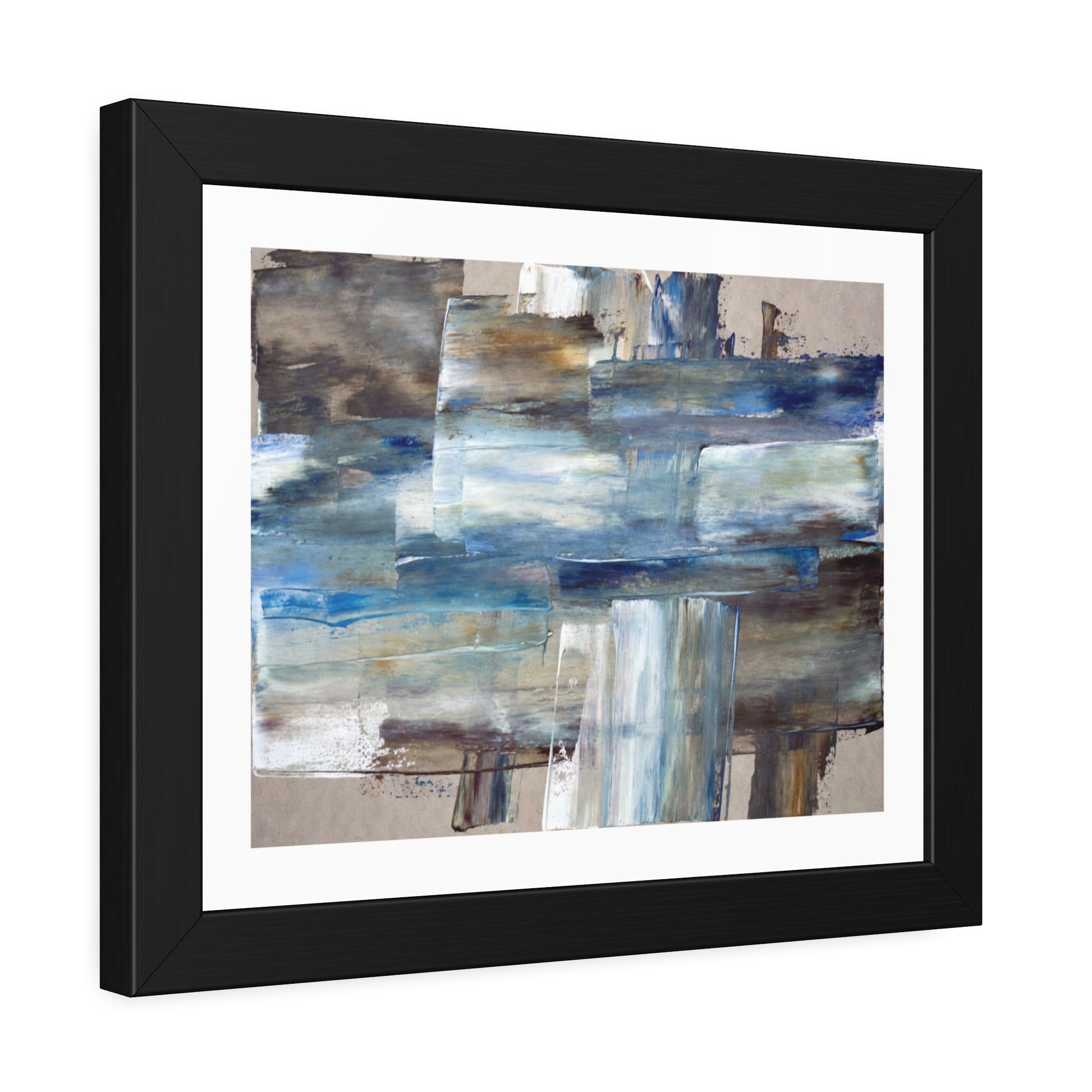 Abstract Blue Horizon Framed Paper Poster — Modern Coastal Wall Art