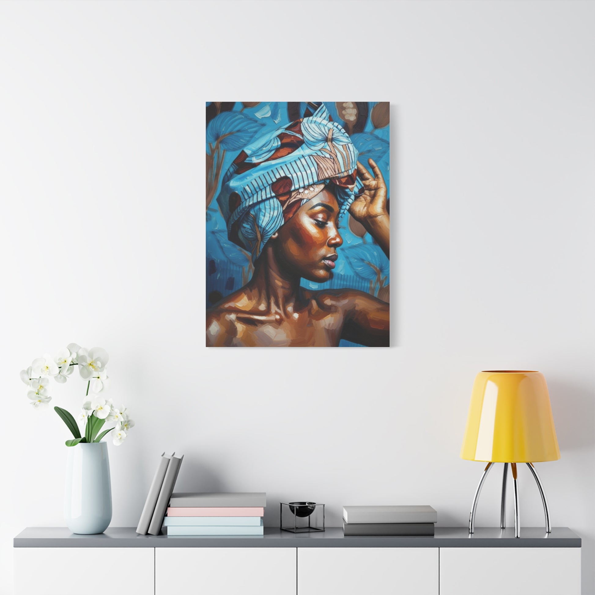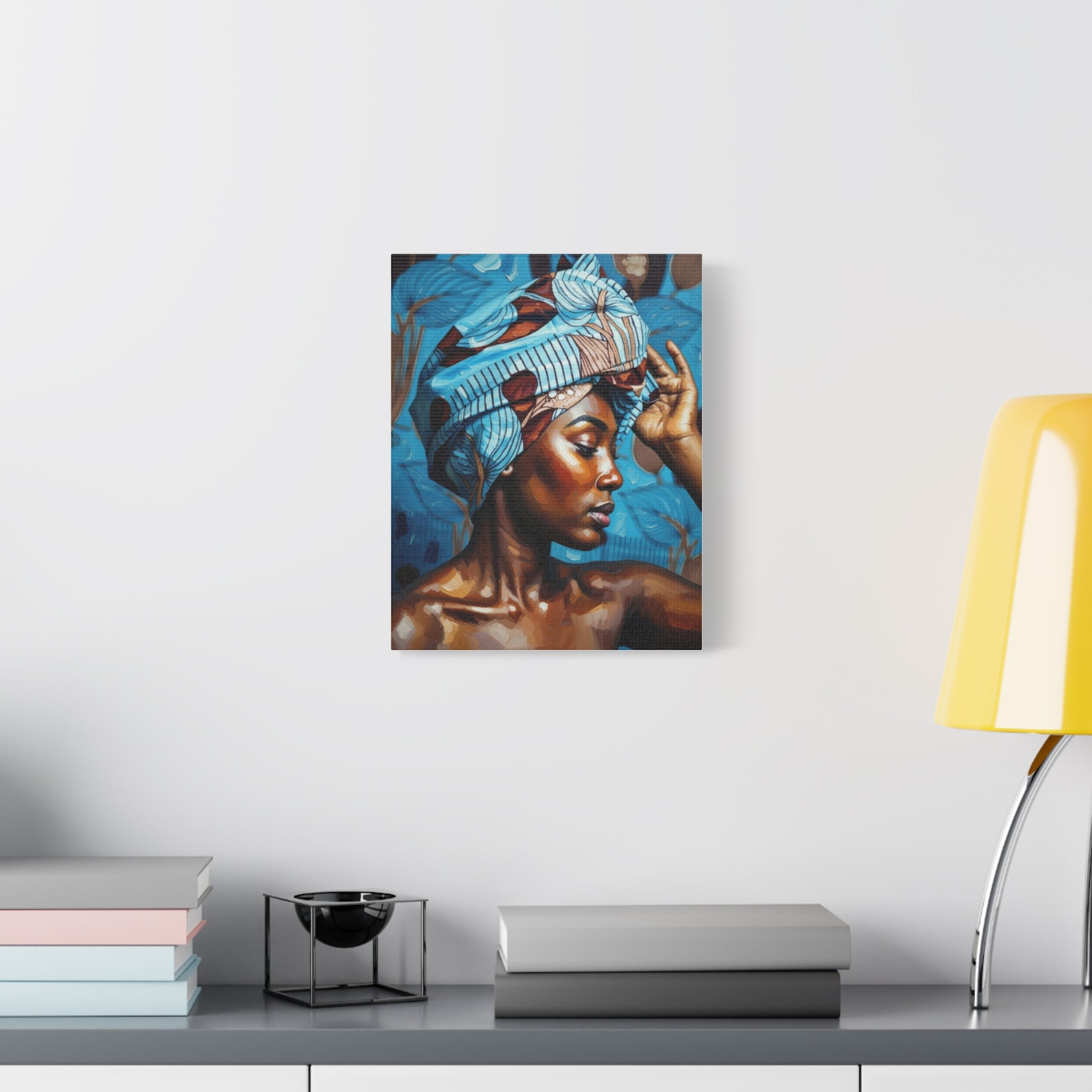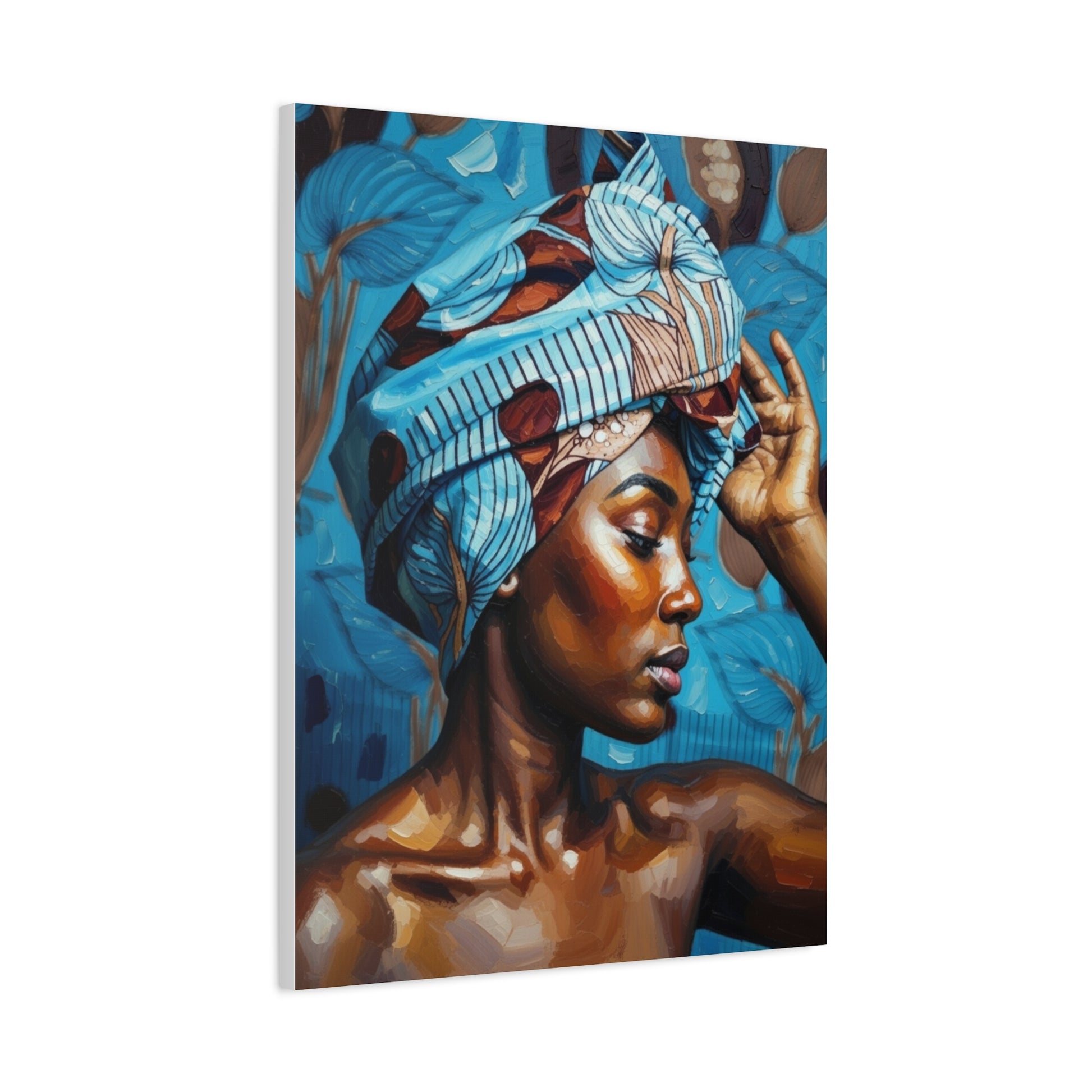African Woman Portrait Canvas Wall Art - Blue Headwrap Matte Stretched Canvas