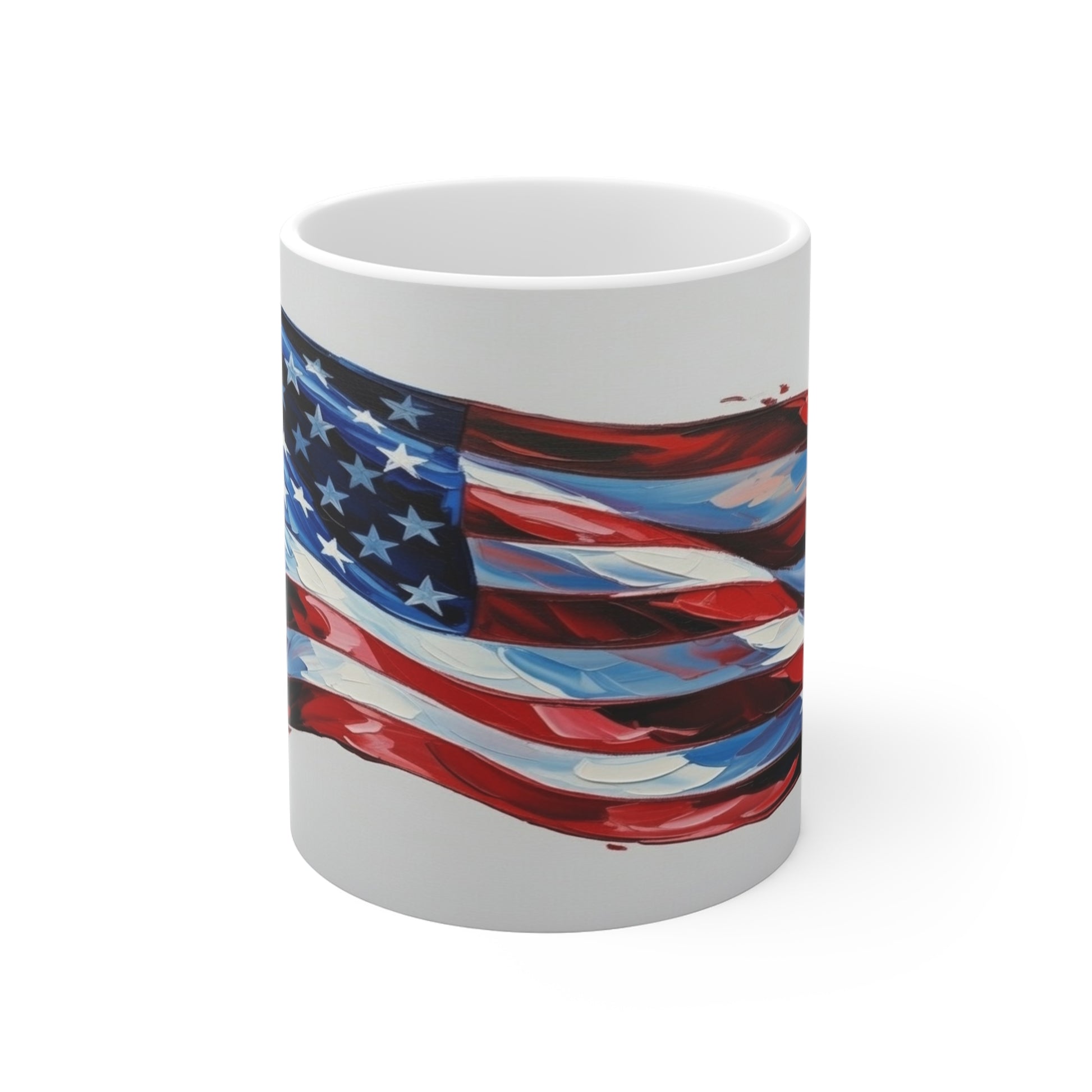 American Flag Coffee Mug — Patriotic 11oz White Mug