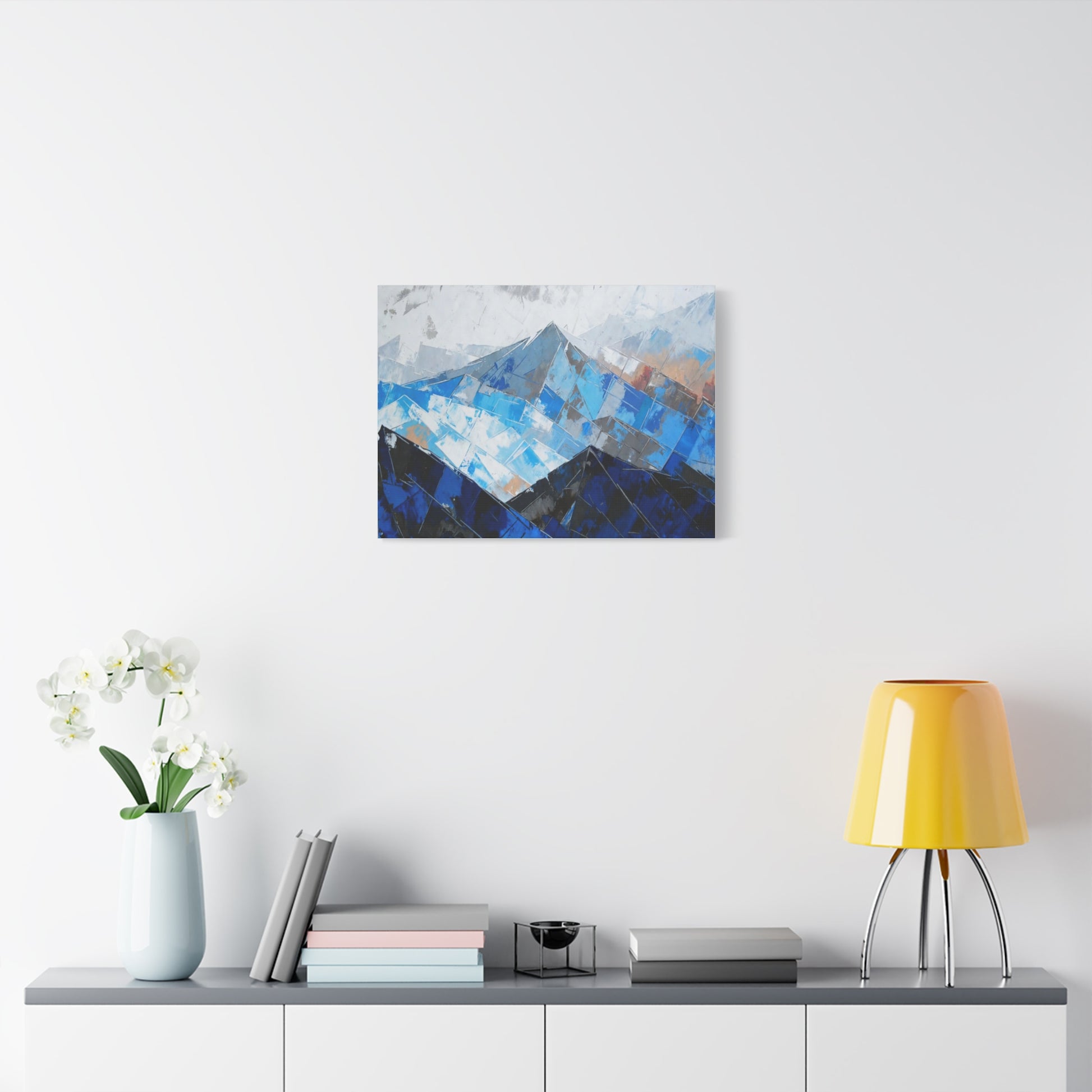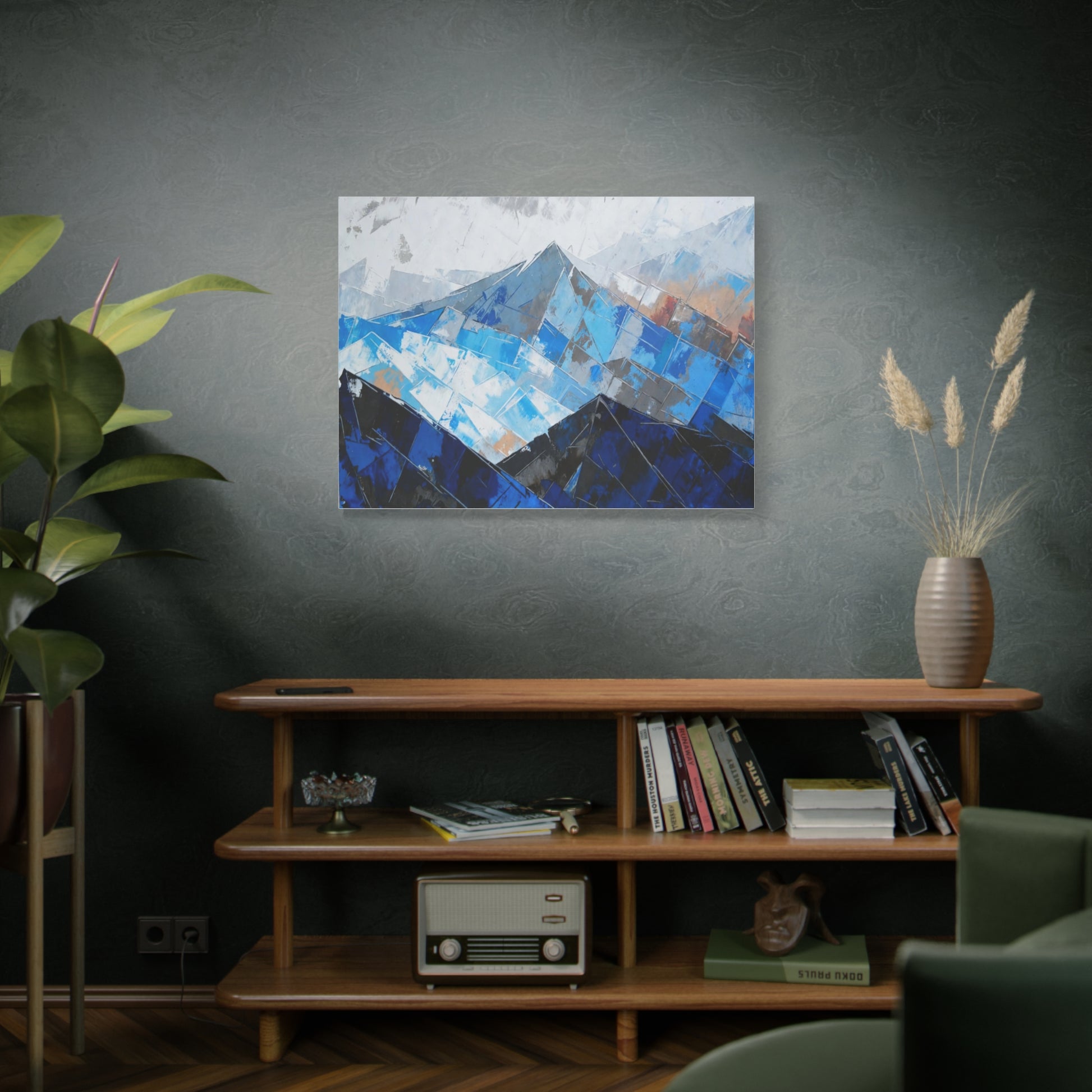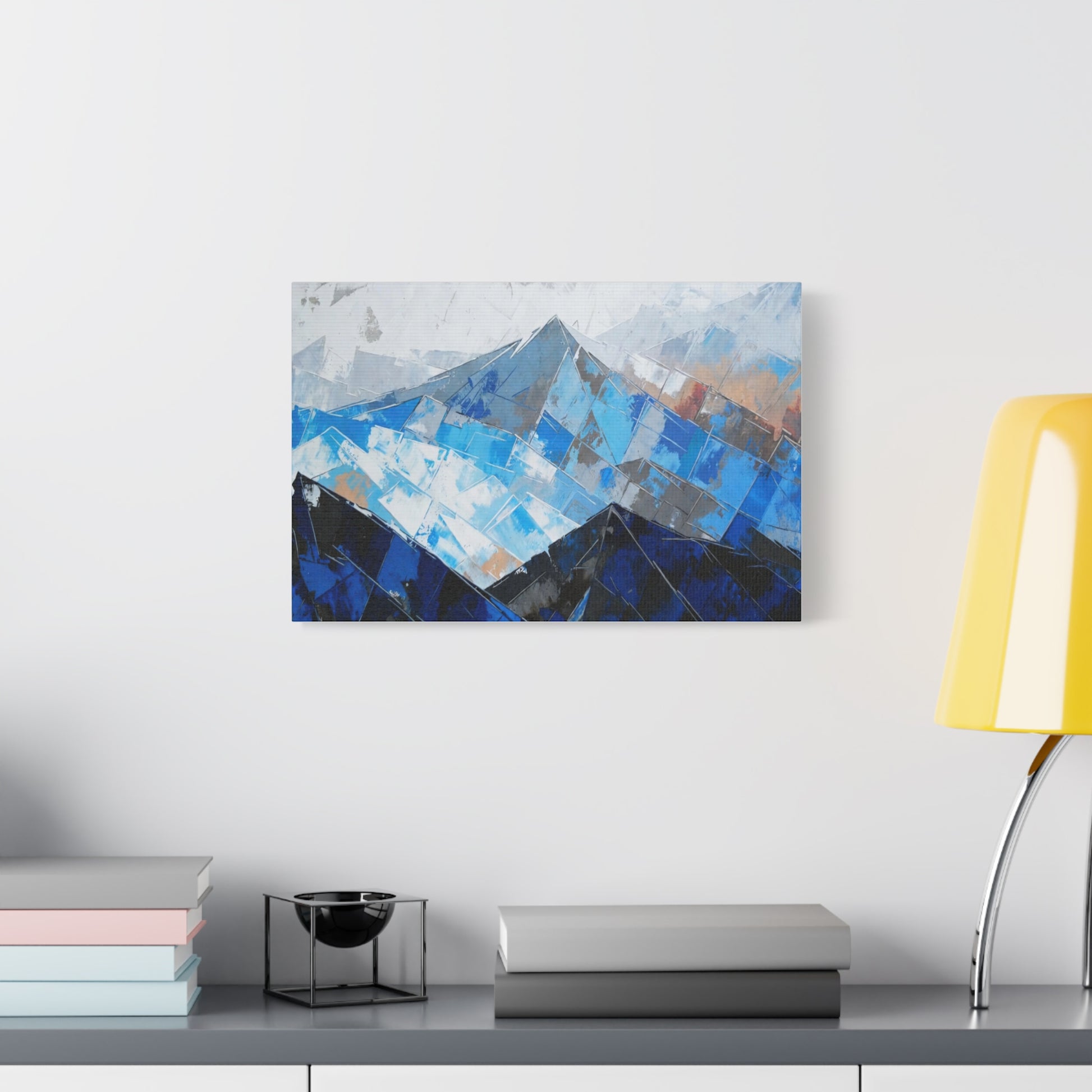 Blue Abstract Mountain Canvas Print – Modern Geometric Landscape Wall Art