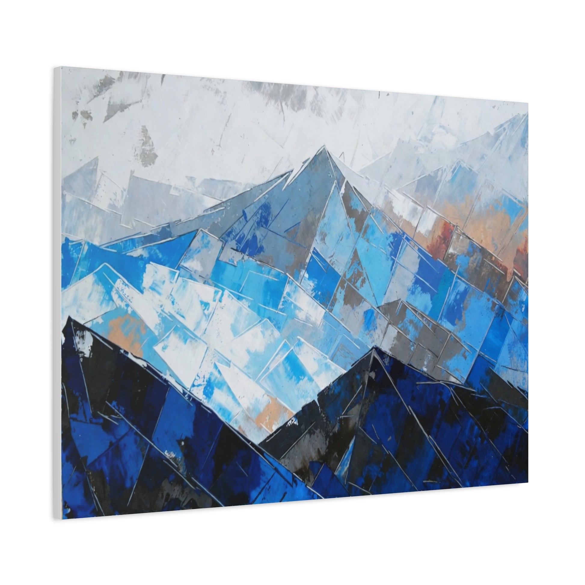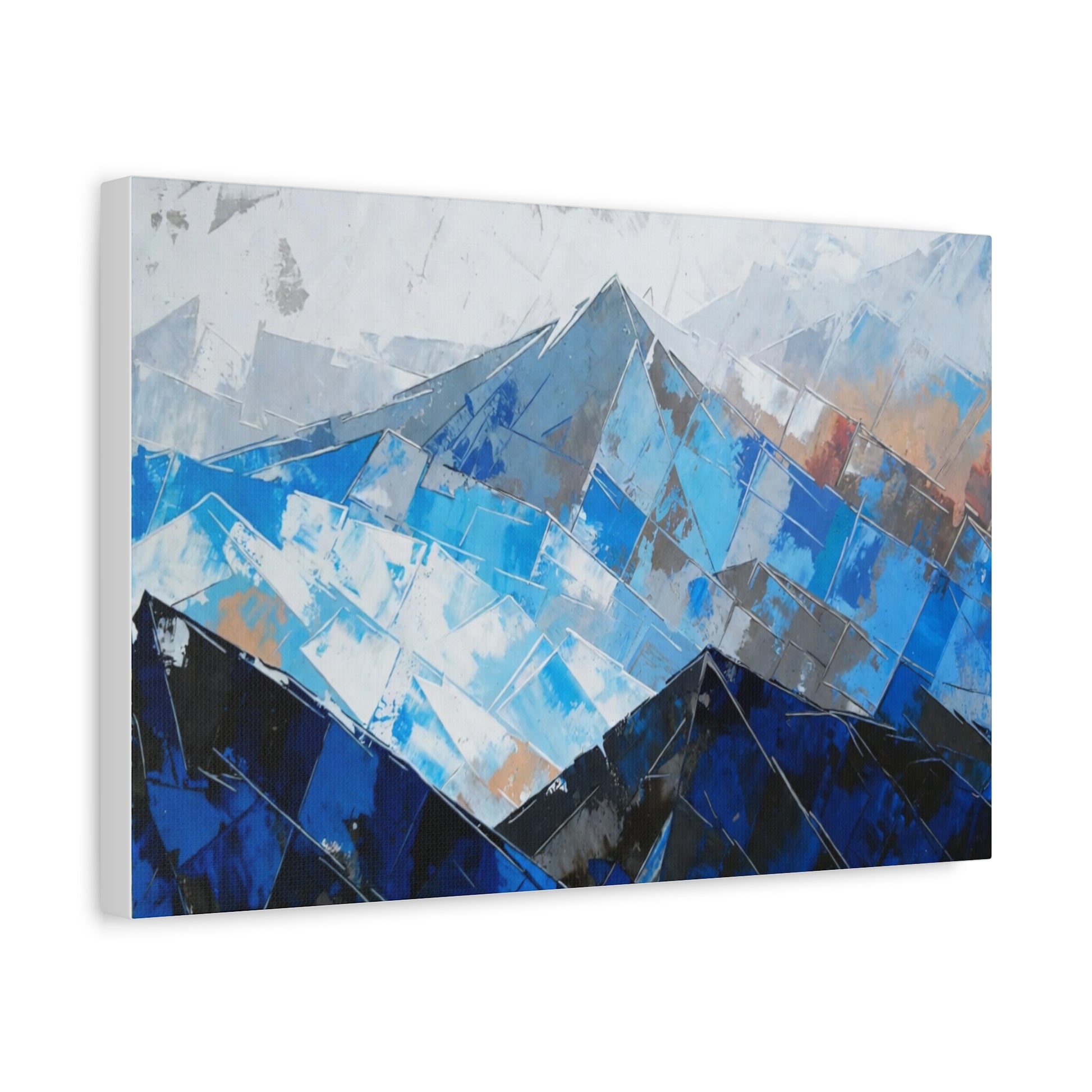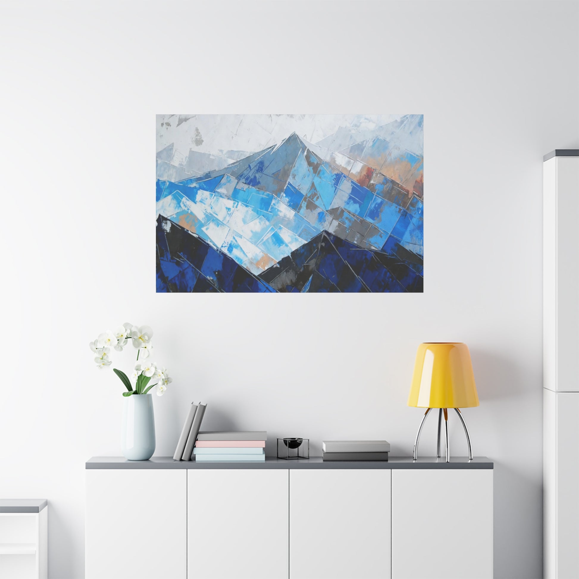 Blue Abstract Mountain Canvas Print – Modern Geometric Landscape Wall Art