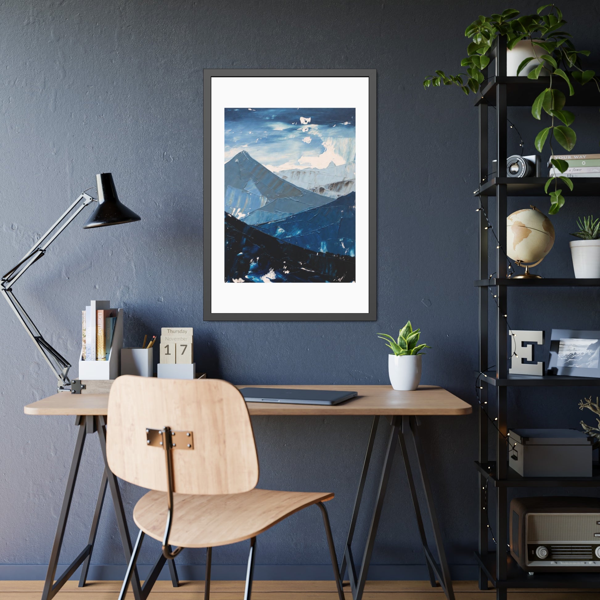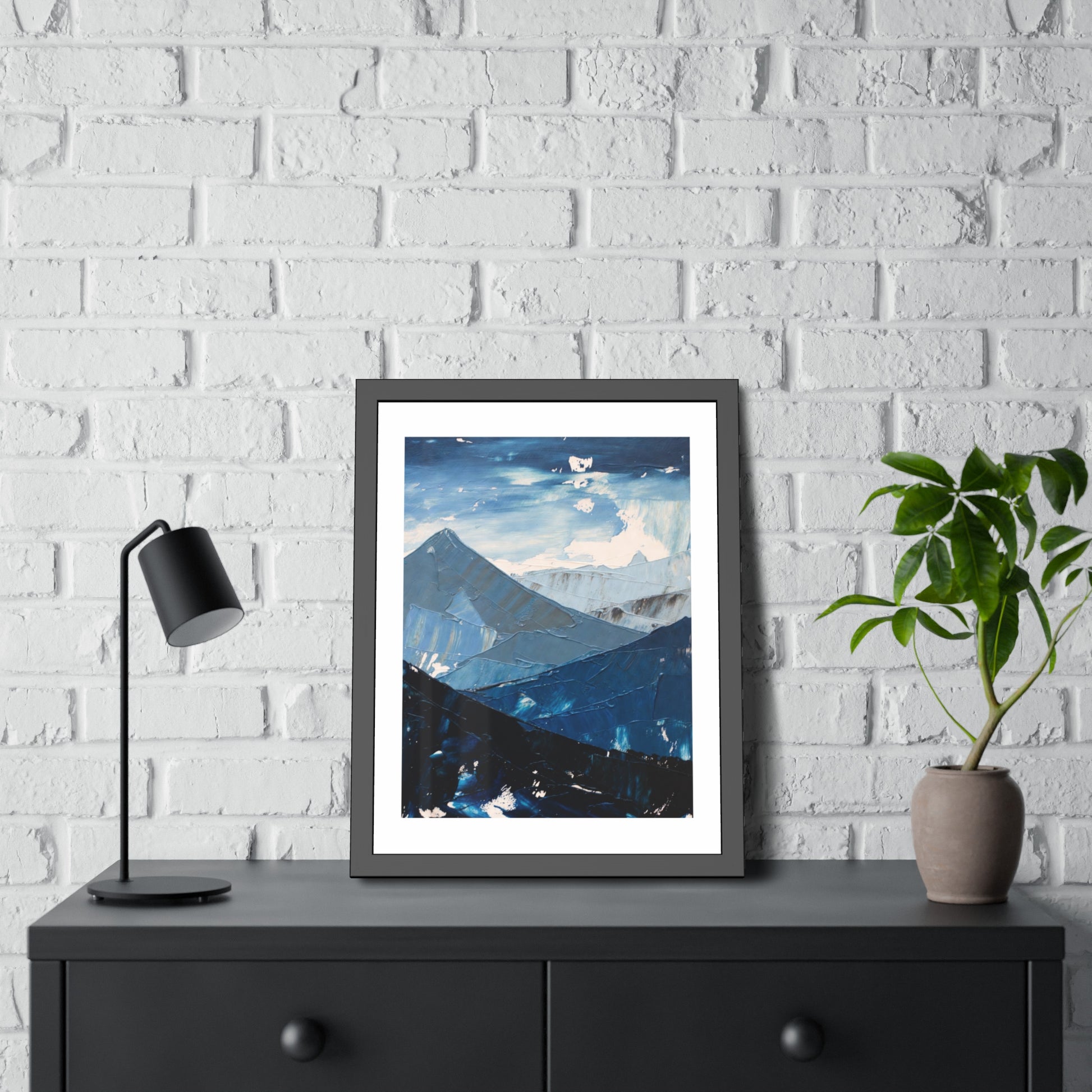Blue Mountain Abstract Framed Poster — Scenic Wall Art Print