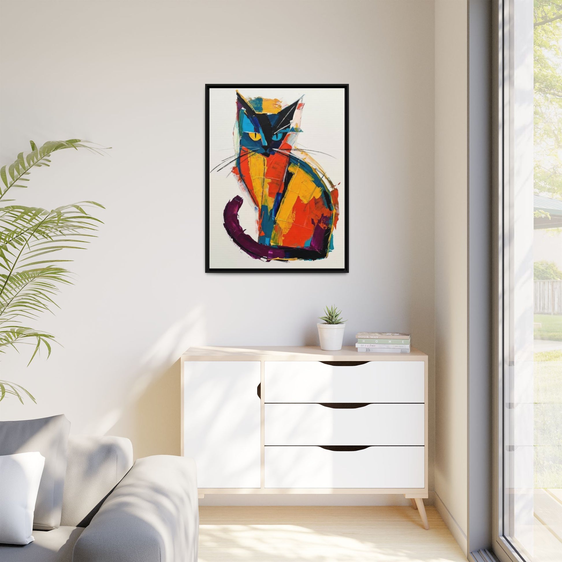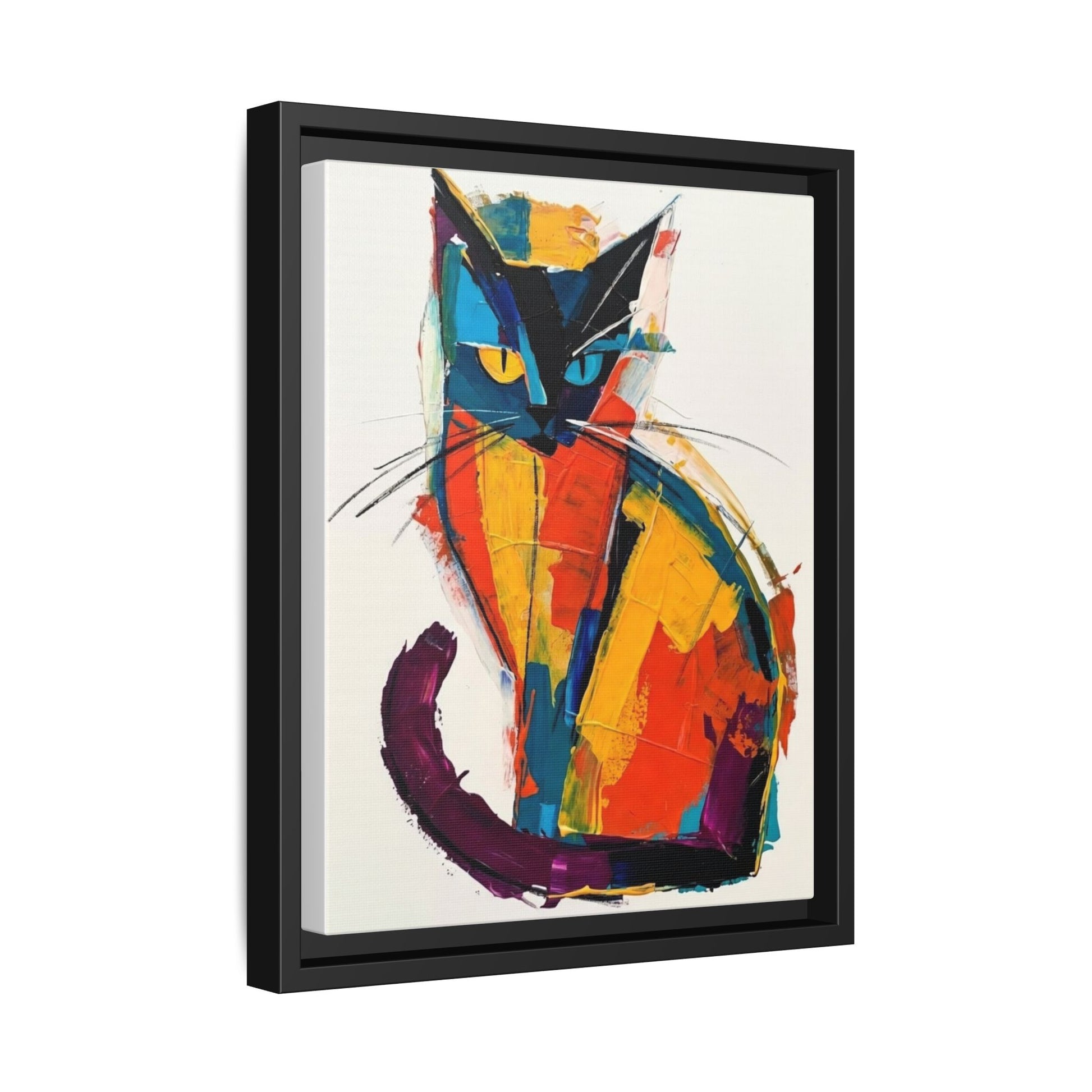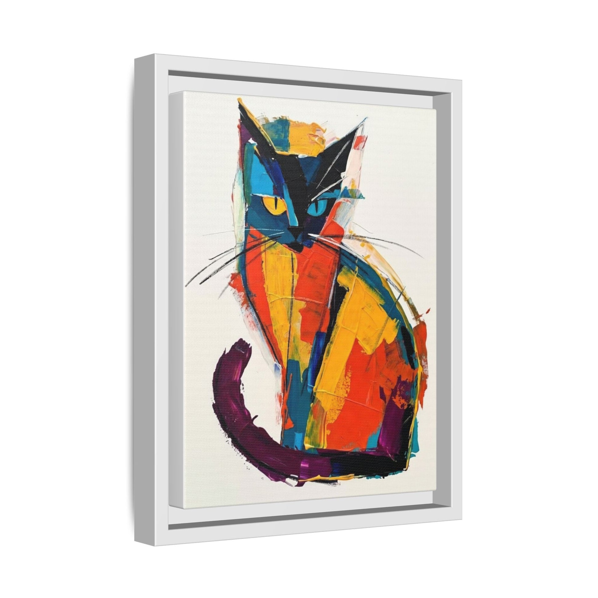 Colorful Abstract Cat Framed Canvas — Modern Matte Wall Art