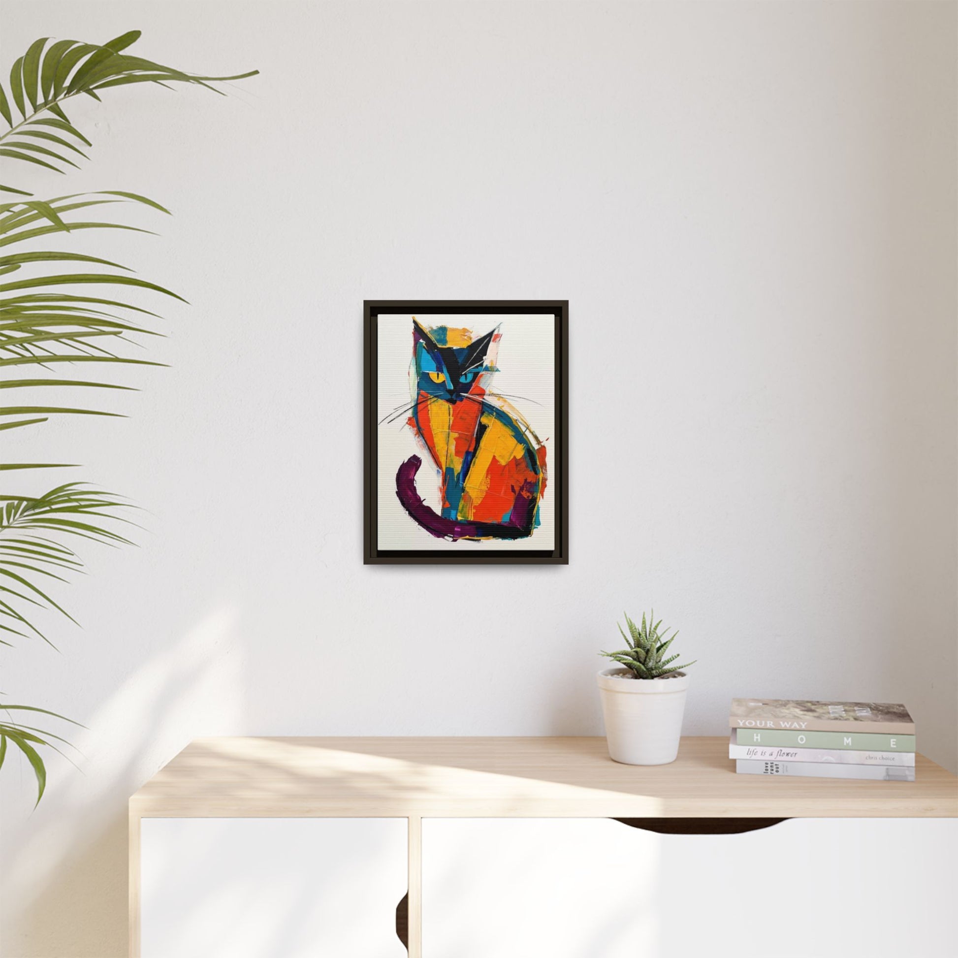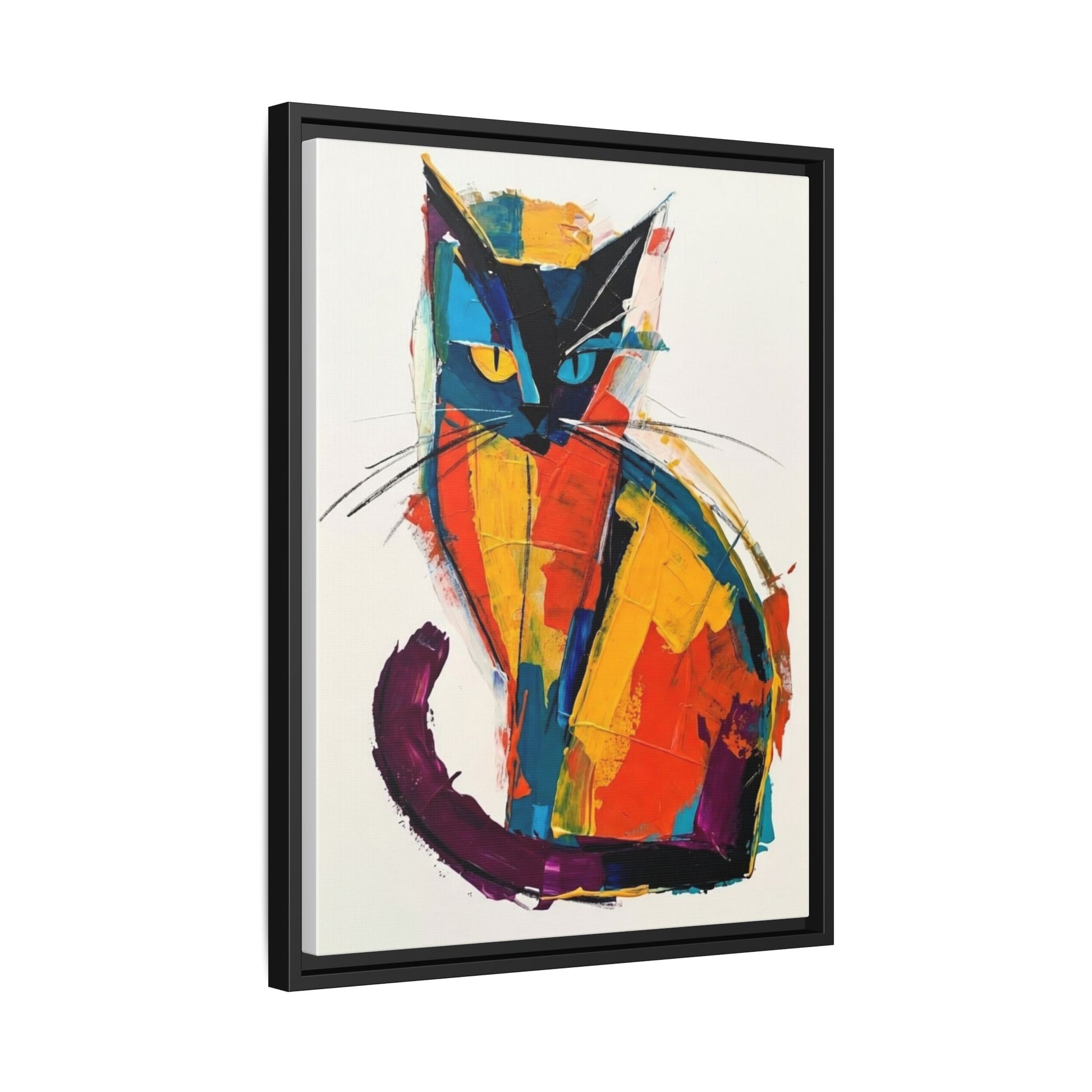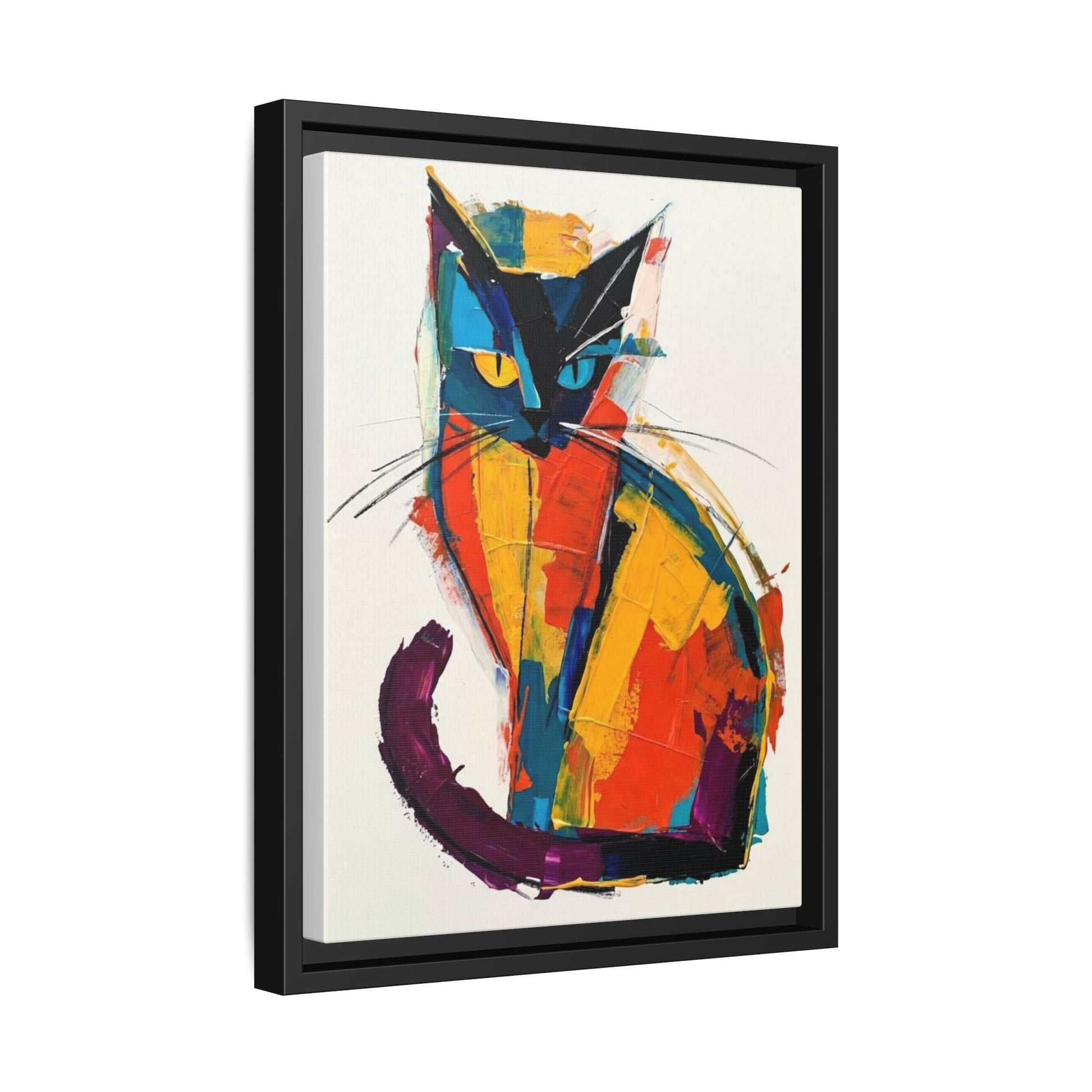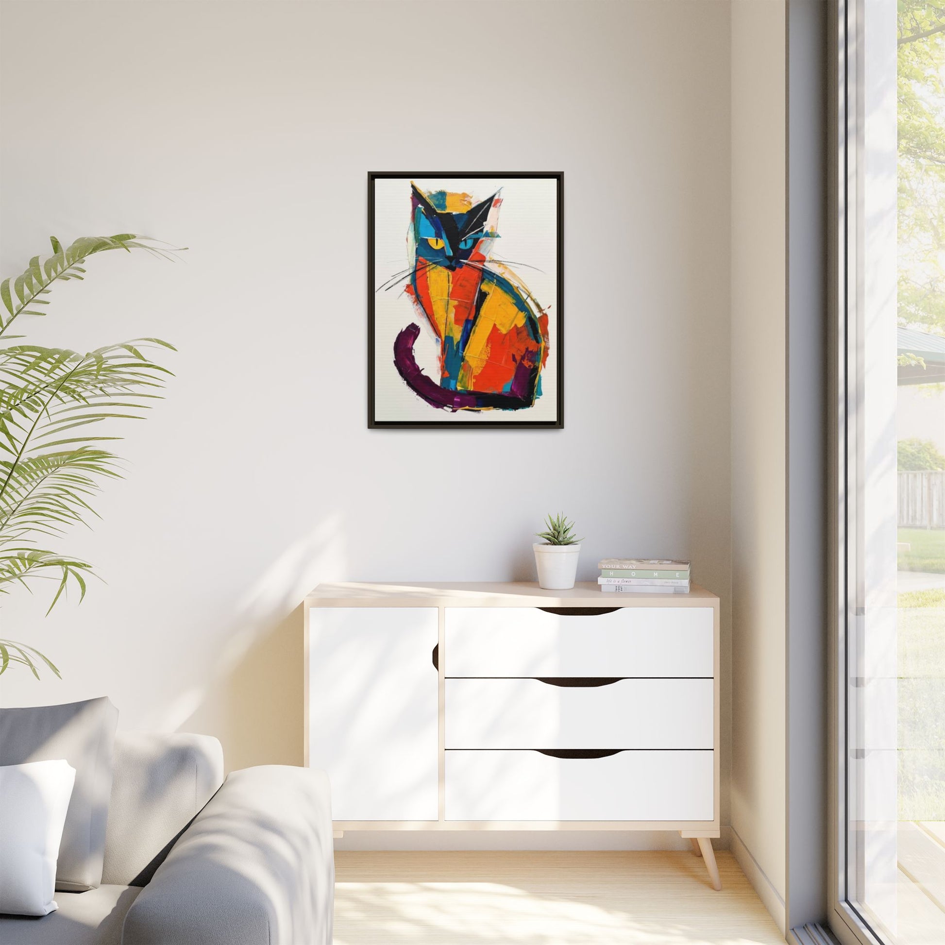 Colorful Abstract Cat Framed Canvas — Modern Matte Wall Art