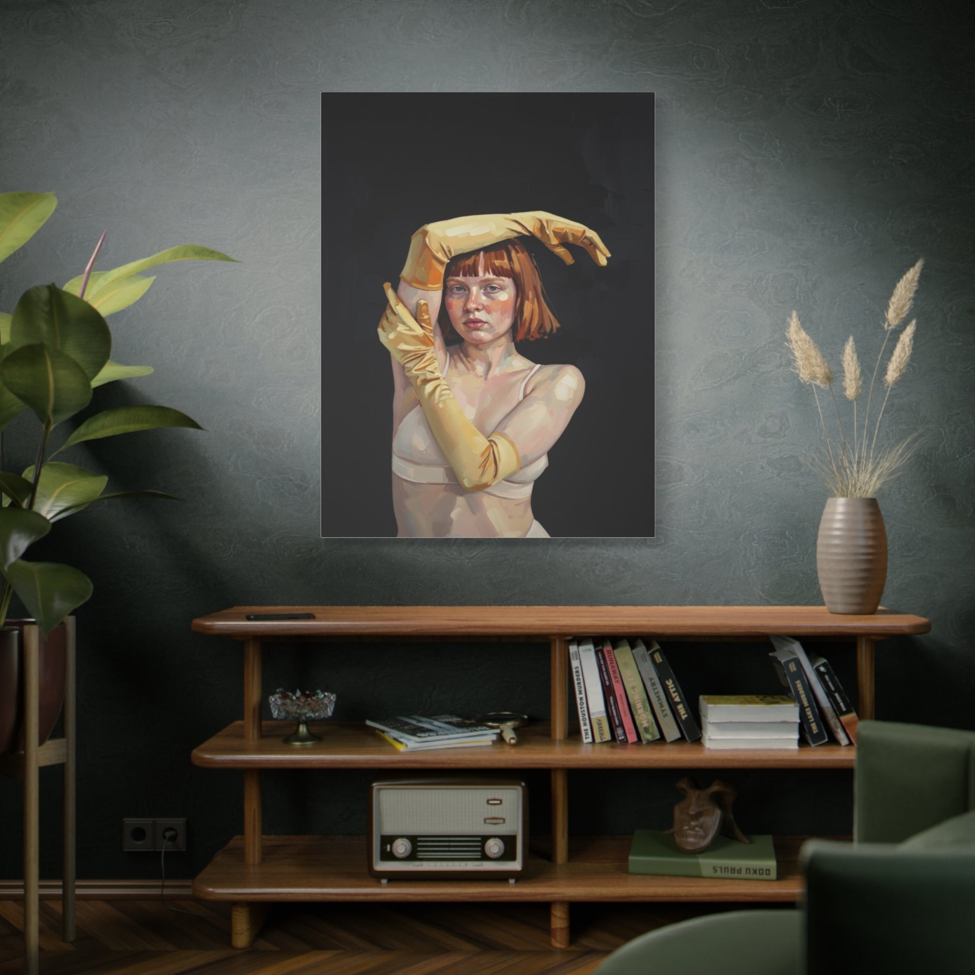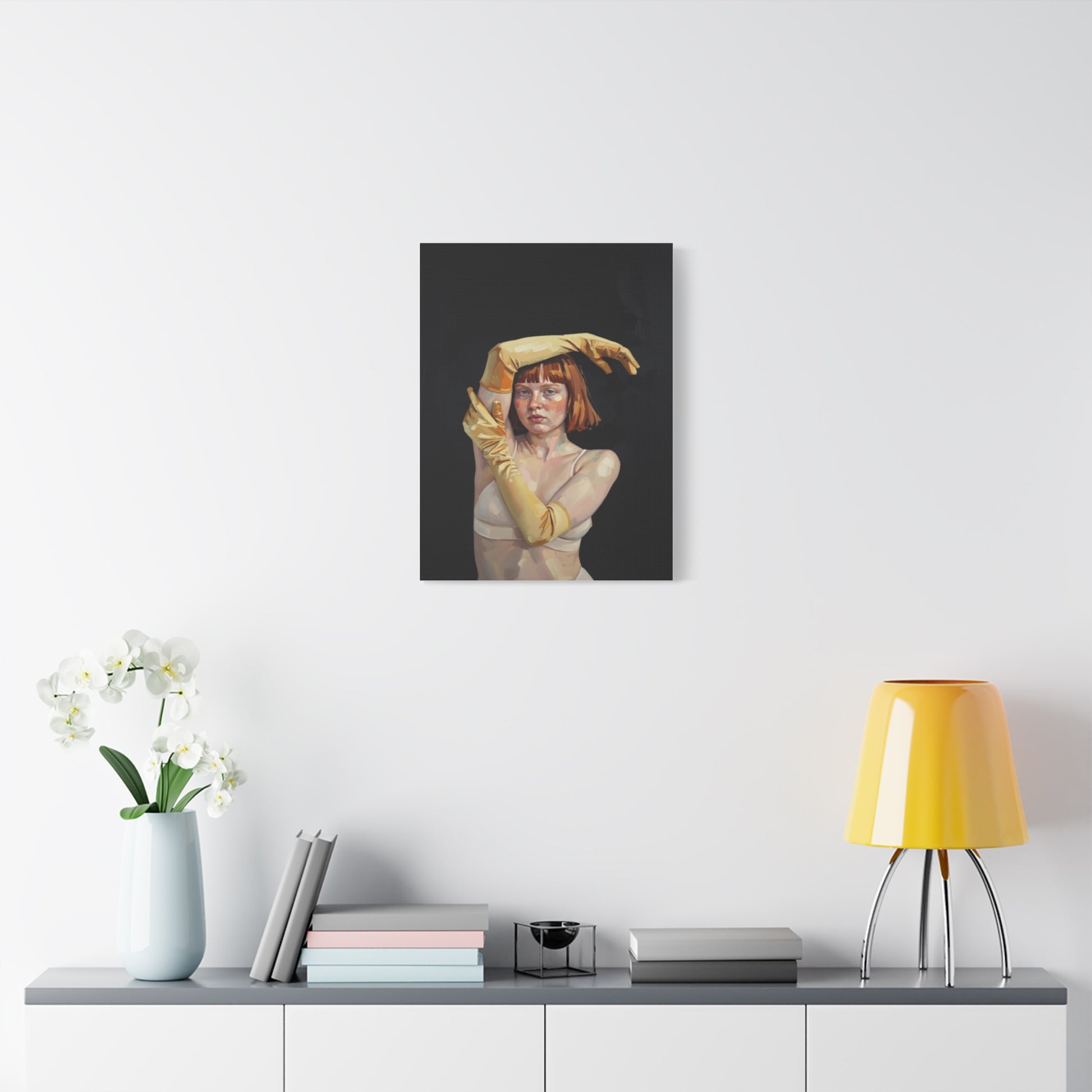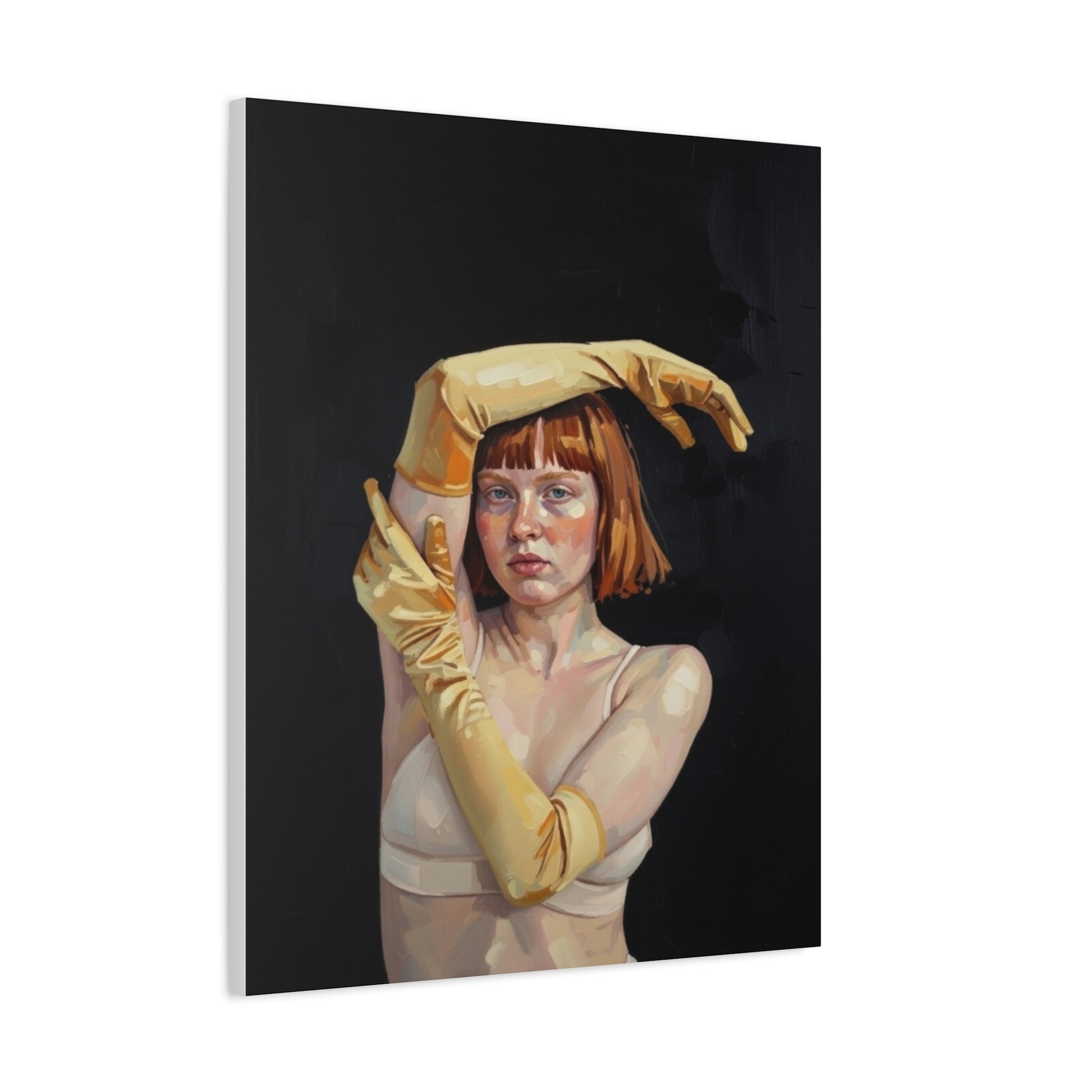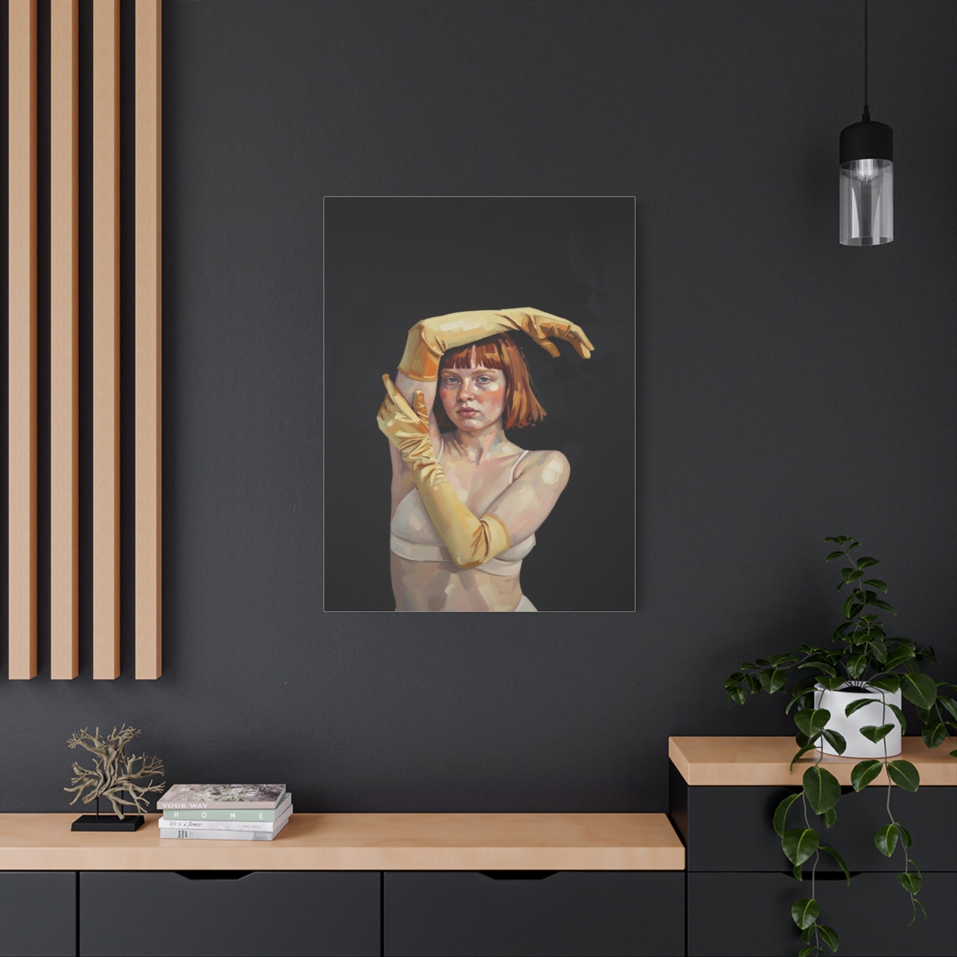 Contemporary Portrait Canvas — Redhead in Yellow Gloves Matte Stretched Art