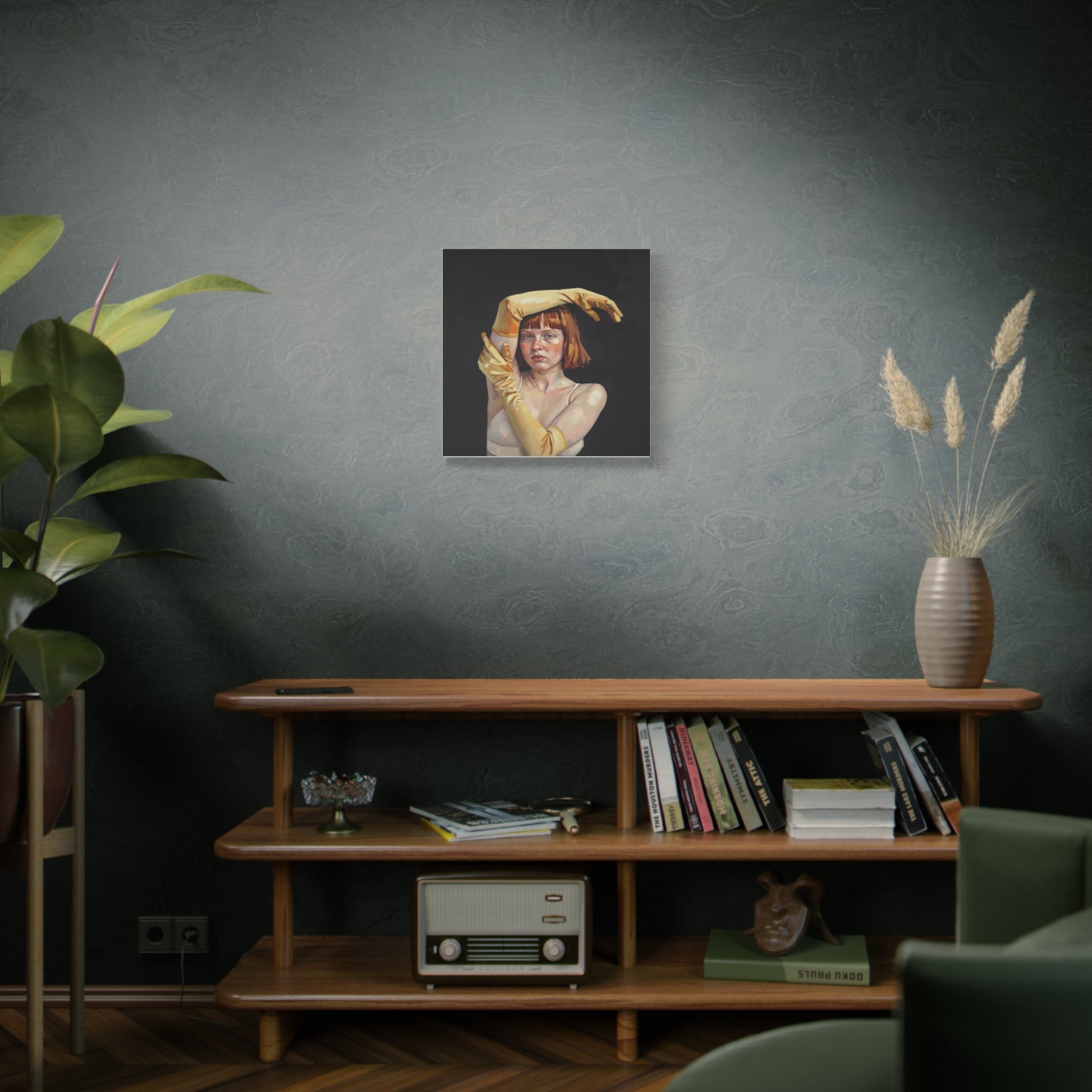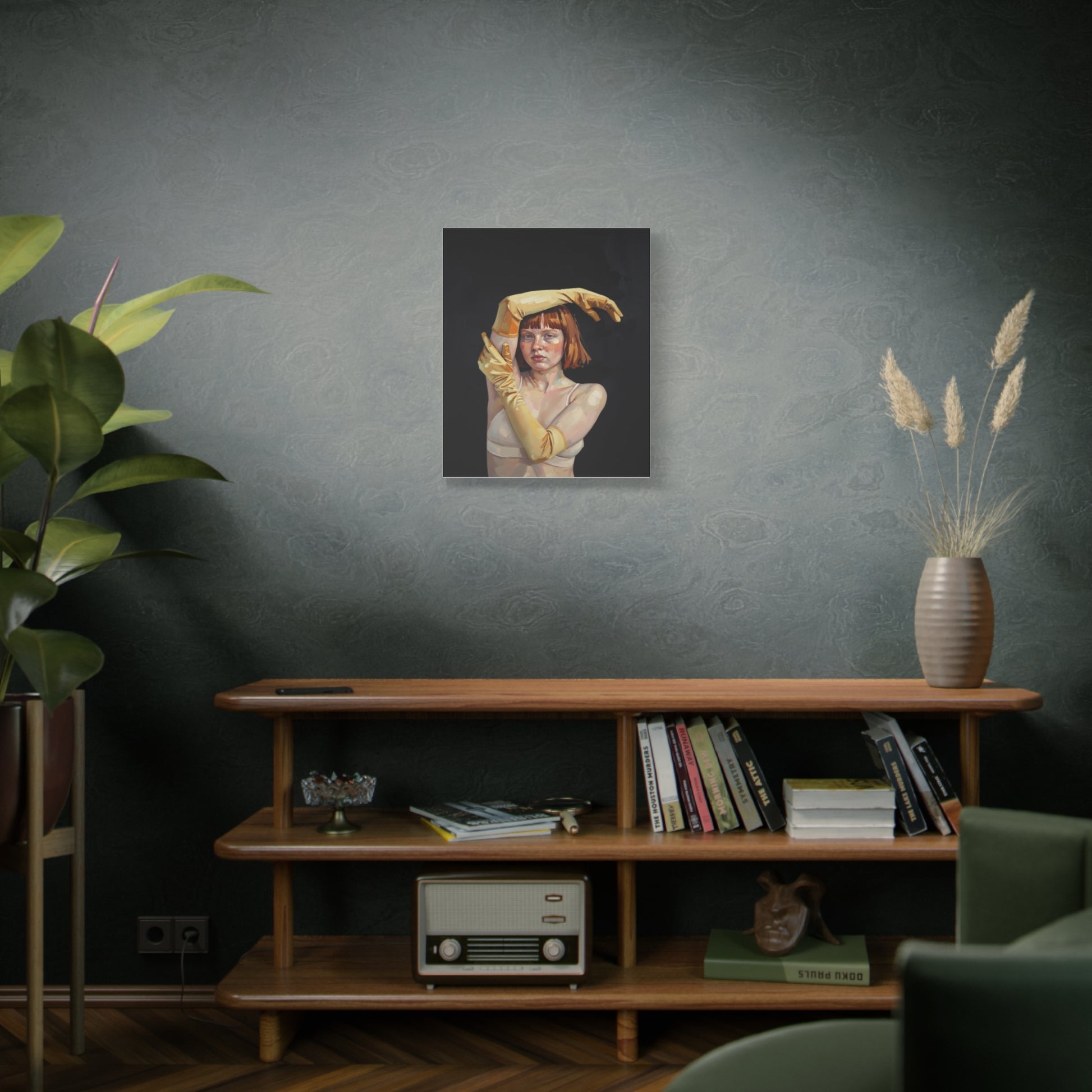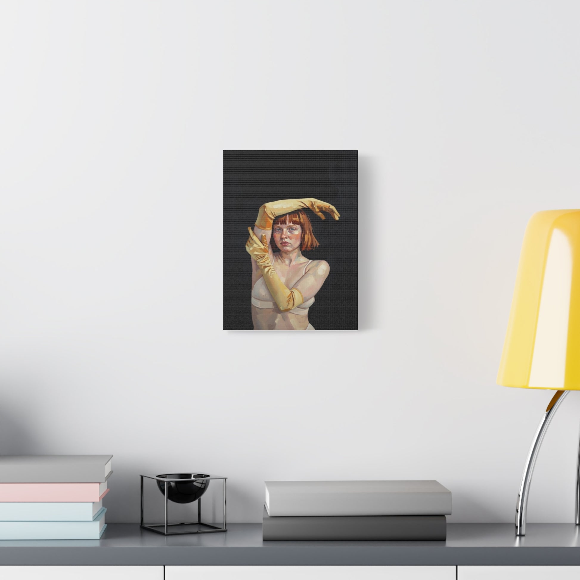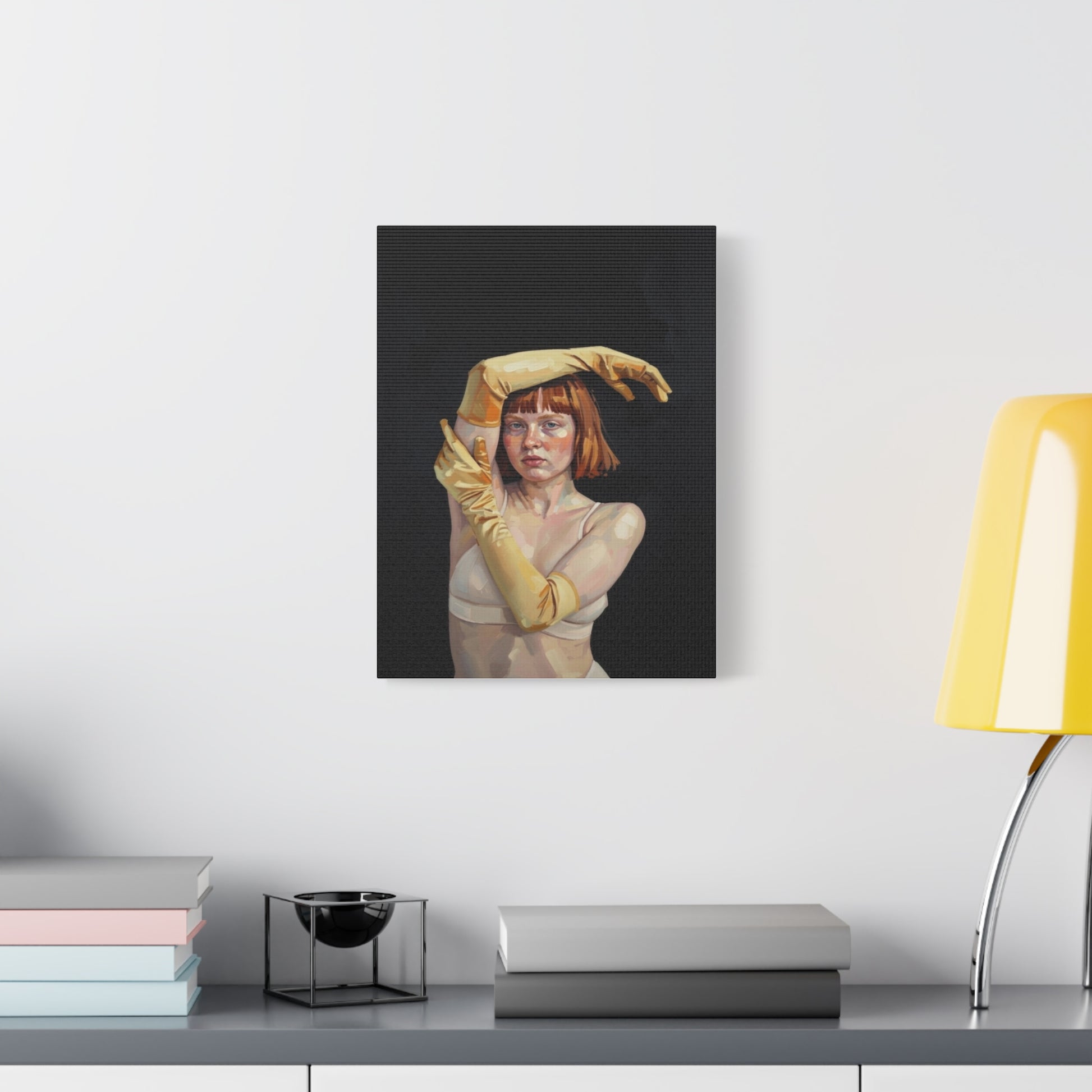 Contemporary Portrait Canvas — Redhead in Yellow Gloves Matte Stretched Art