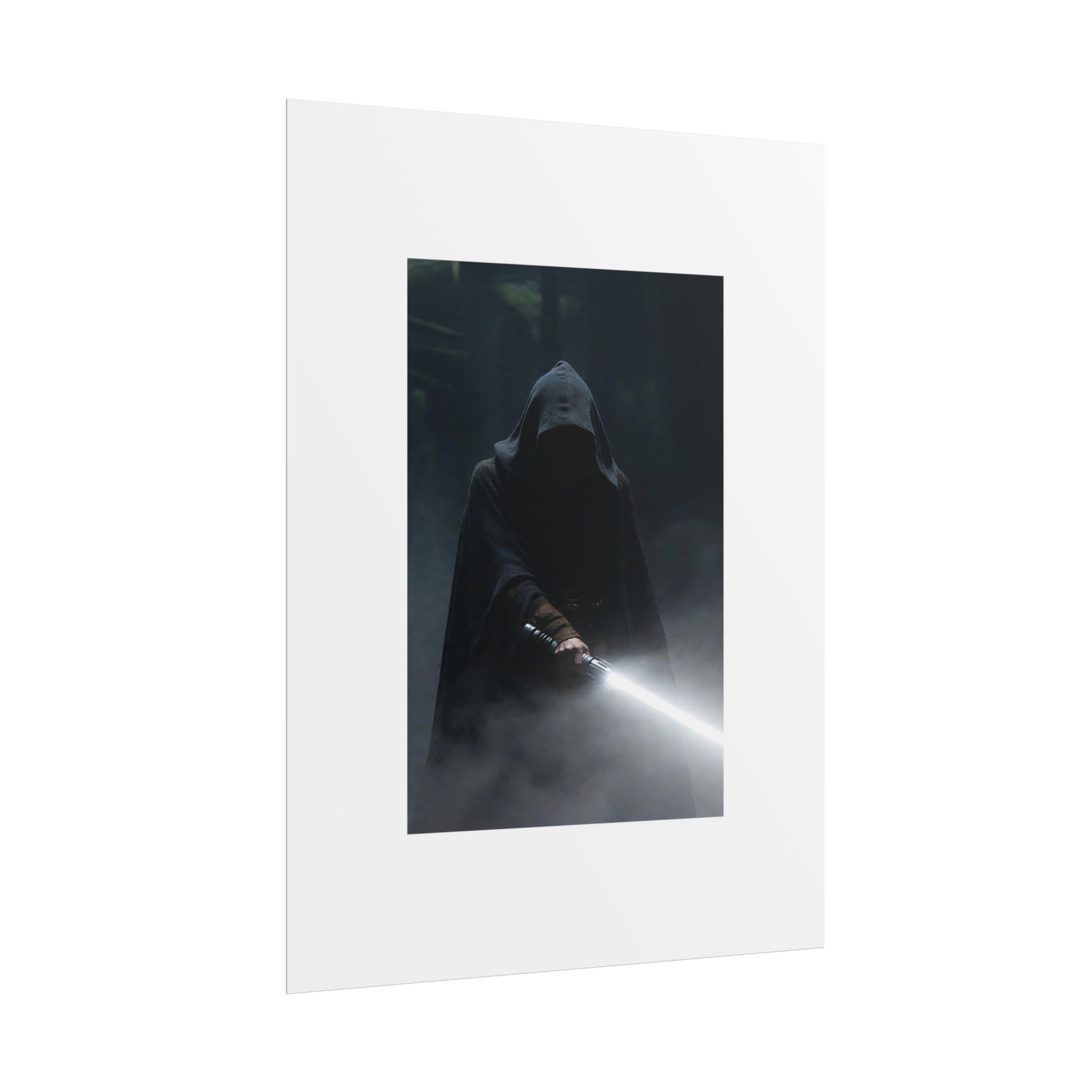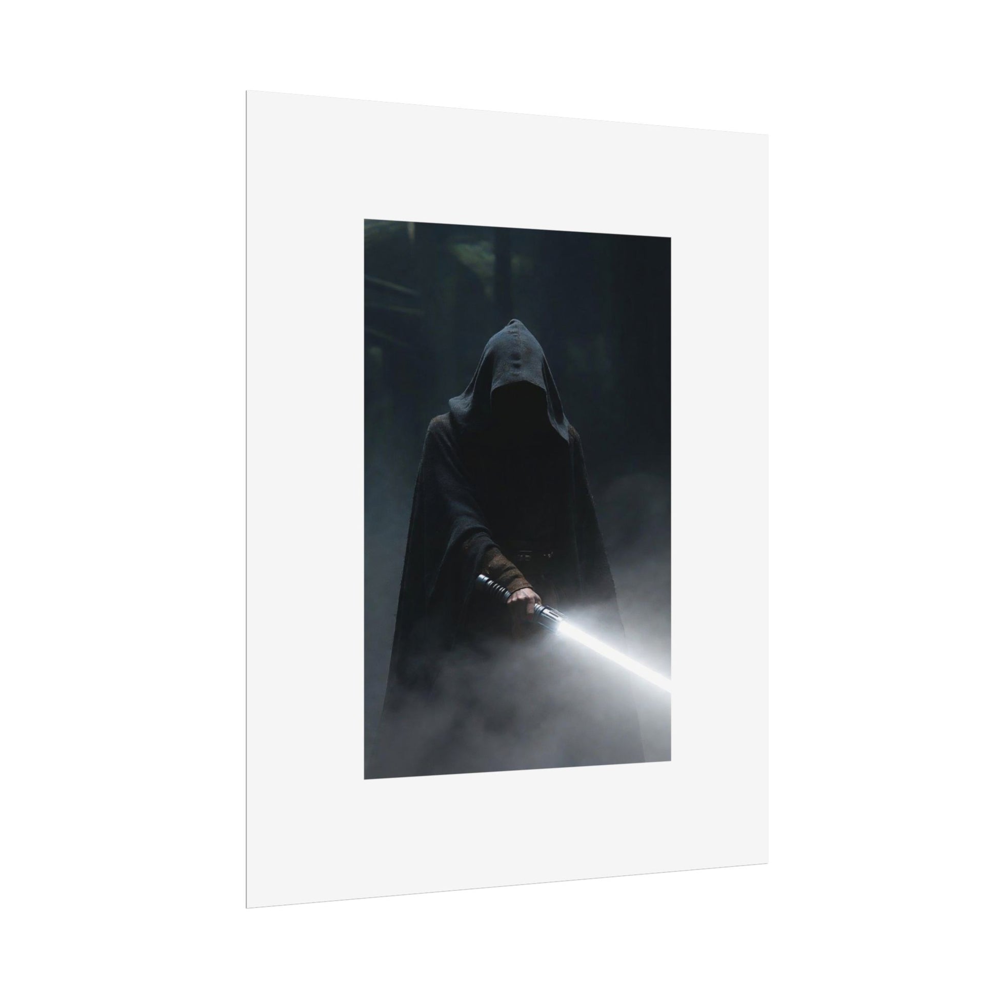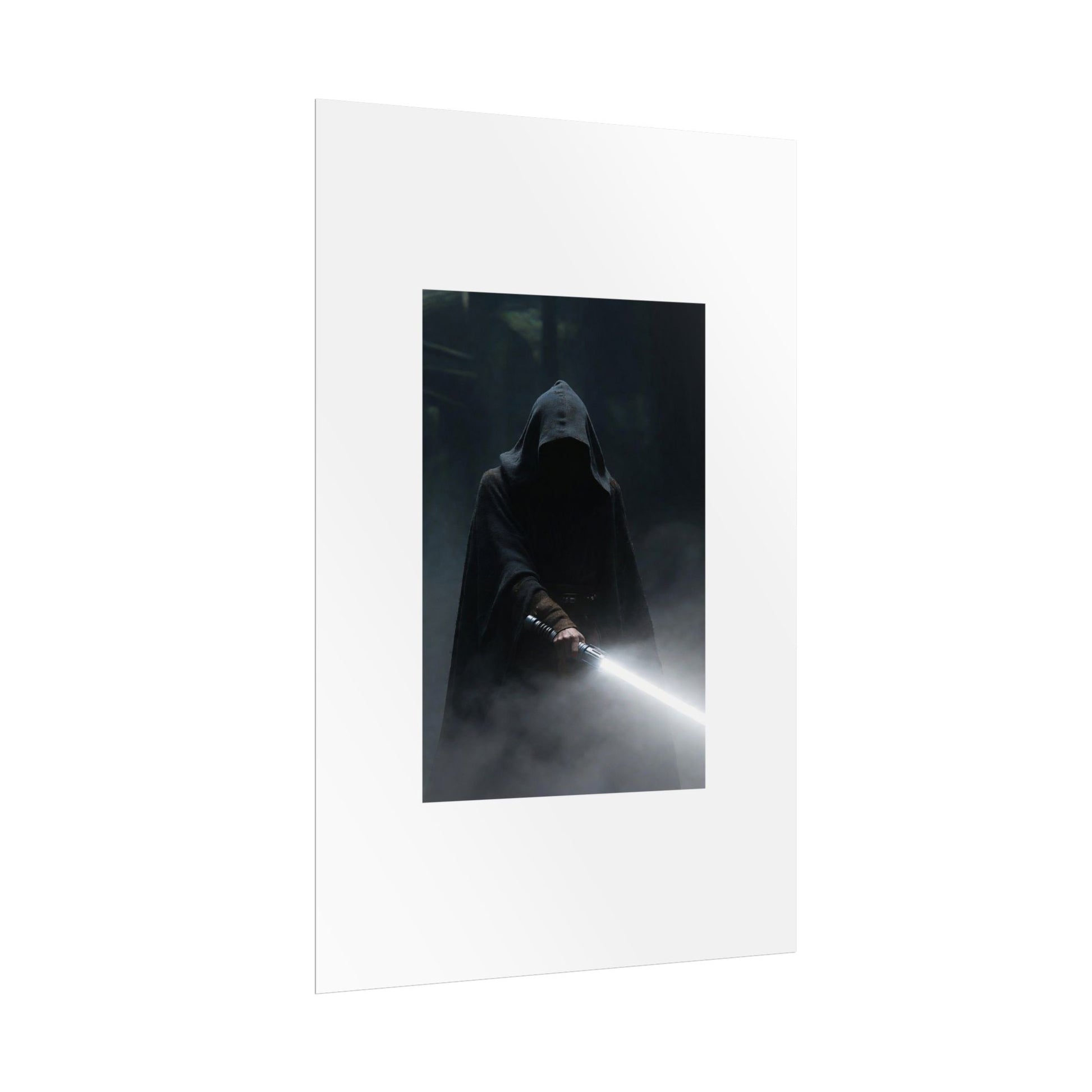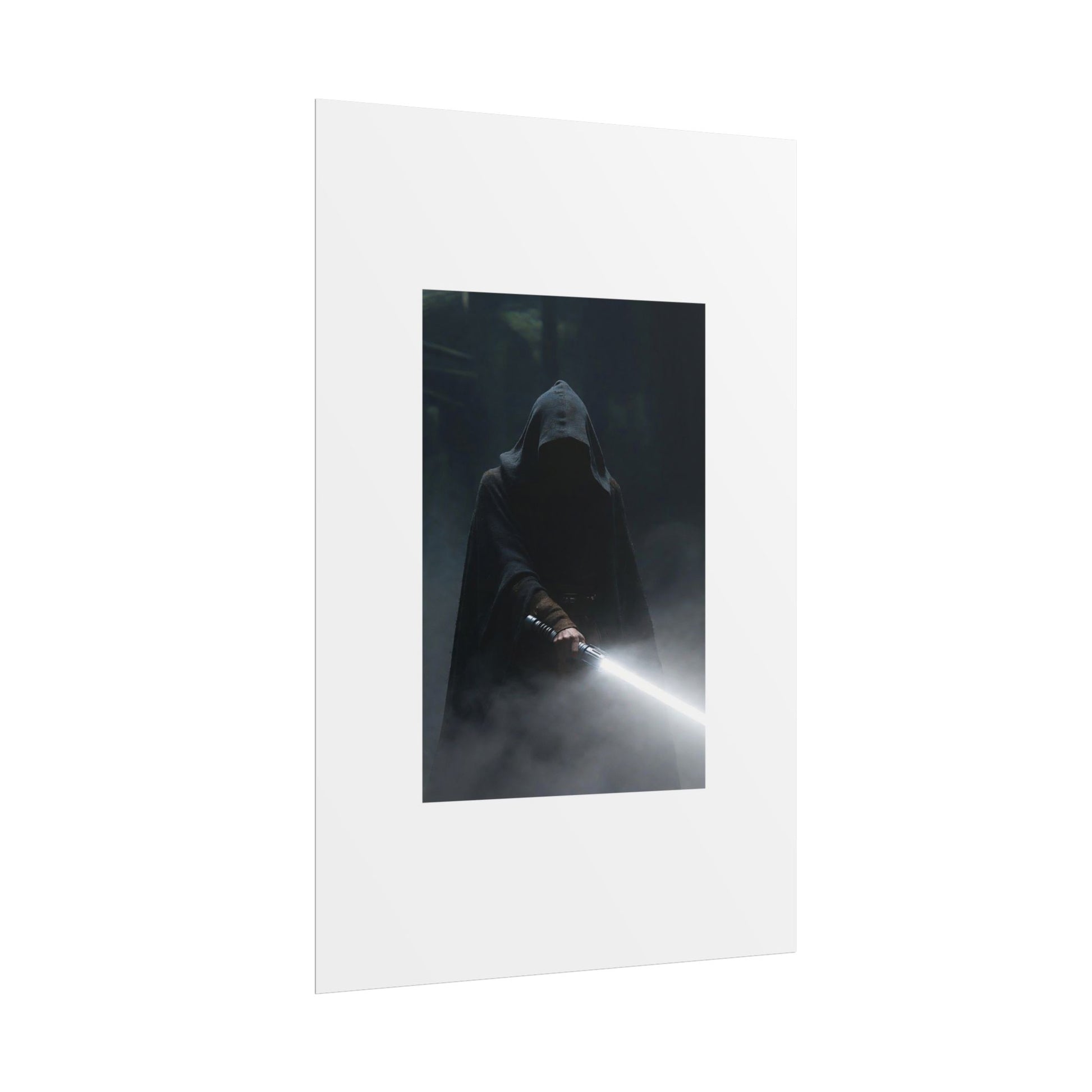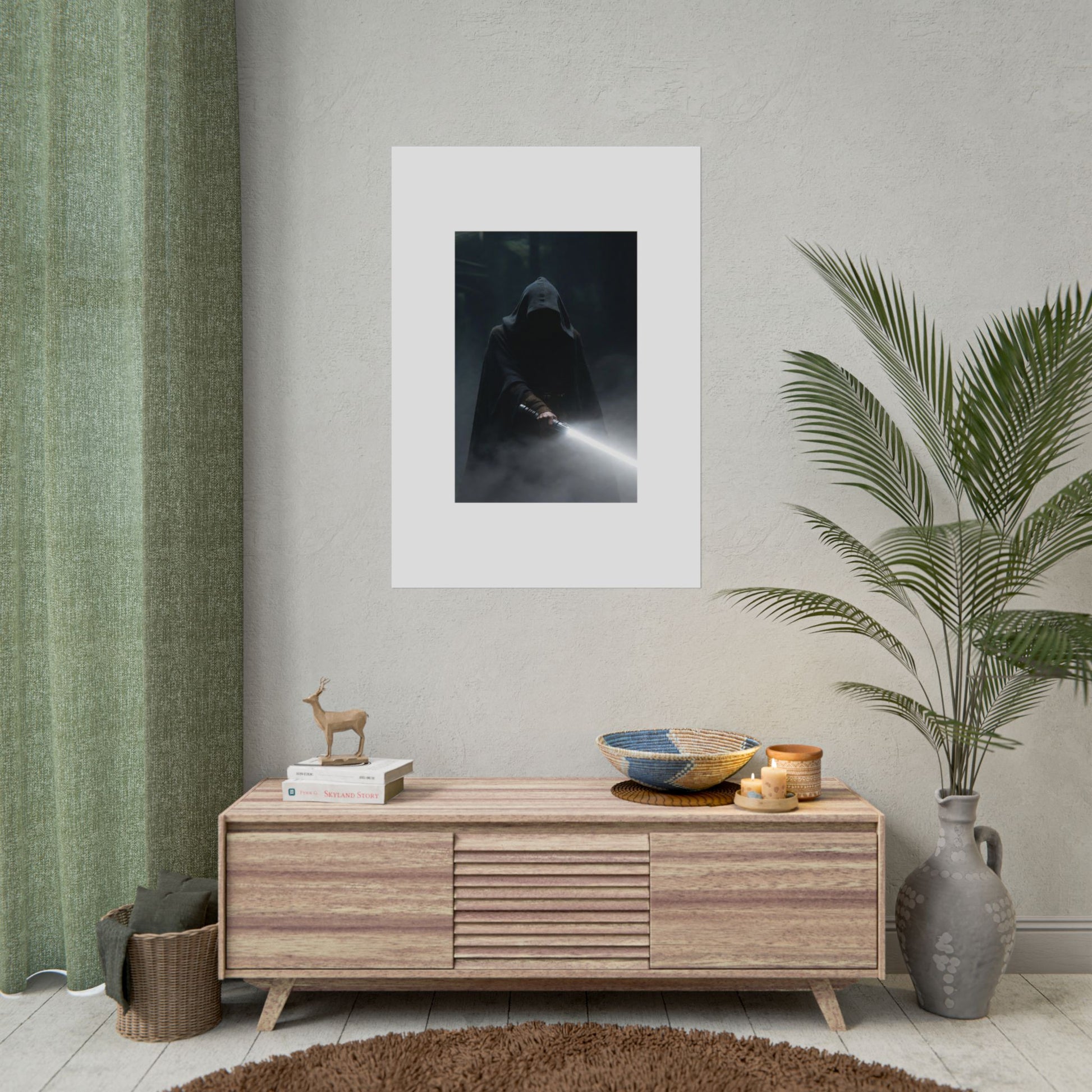 Dark Hooded Warrior Lightsaber Poster — Rolled Sci‑Fi Wall Art