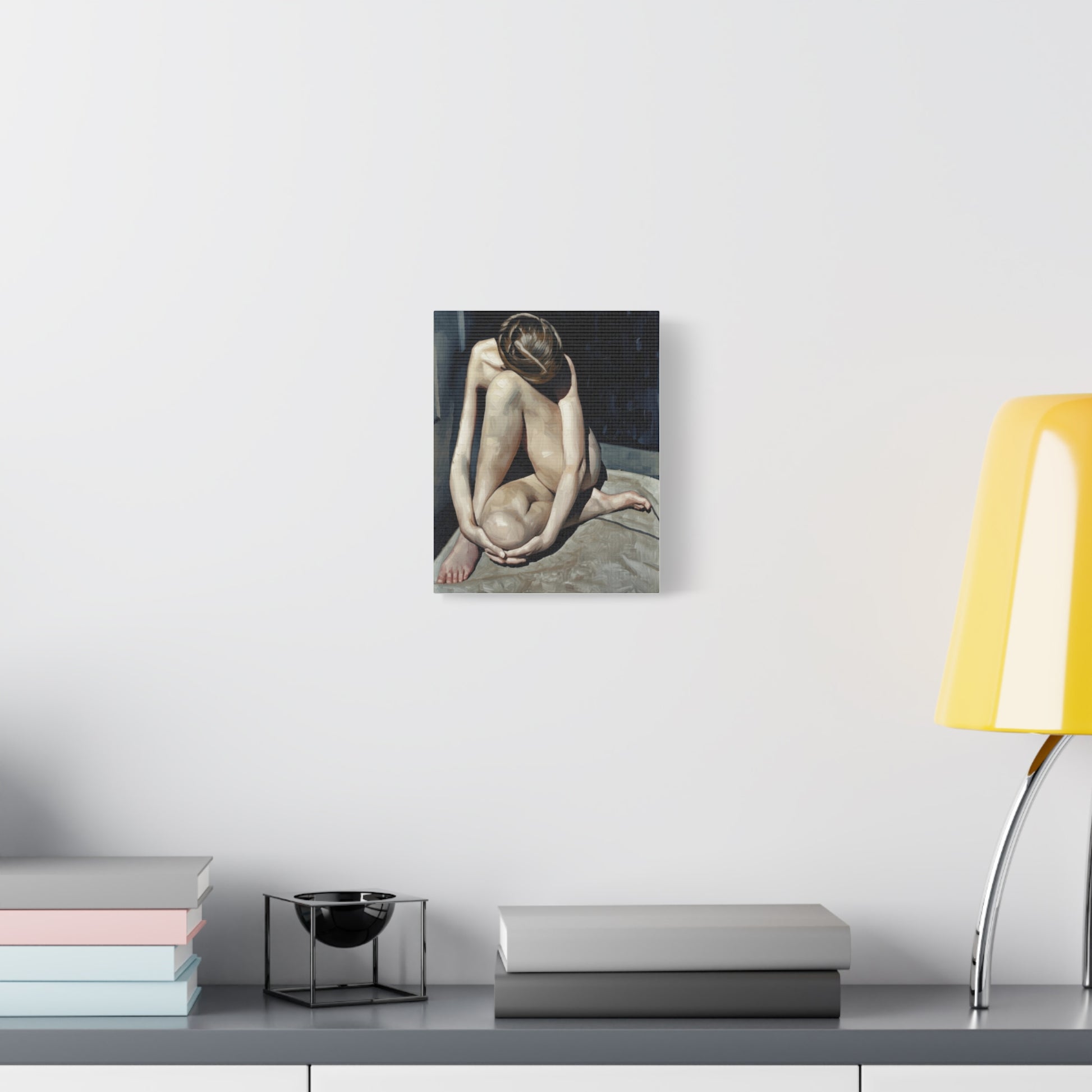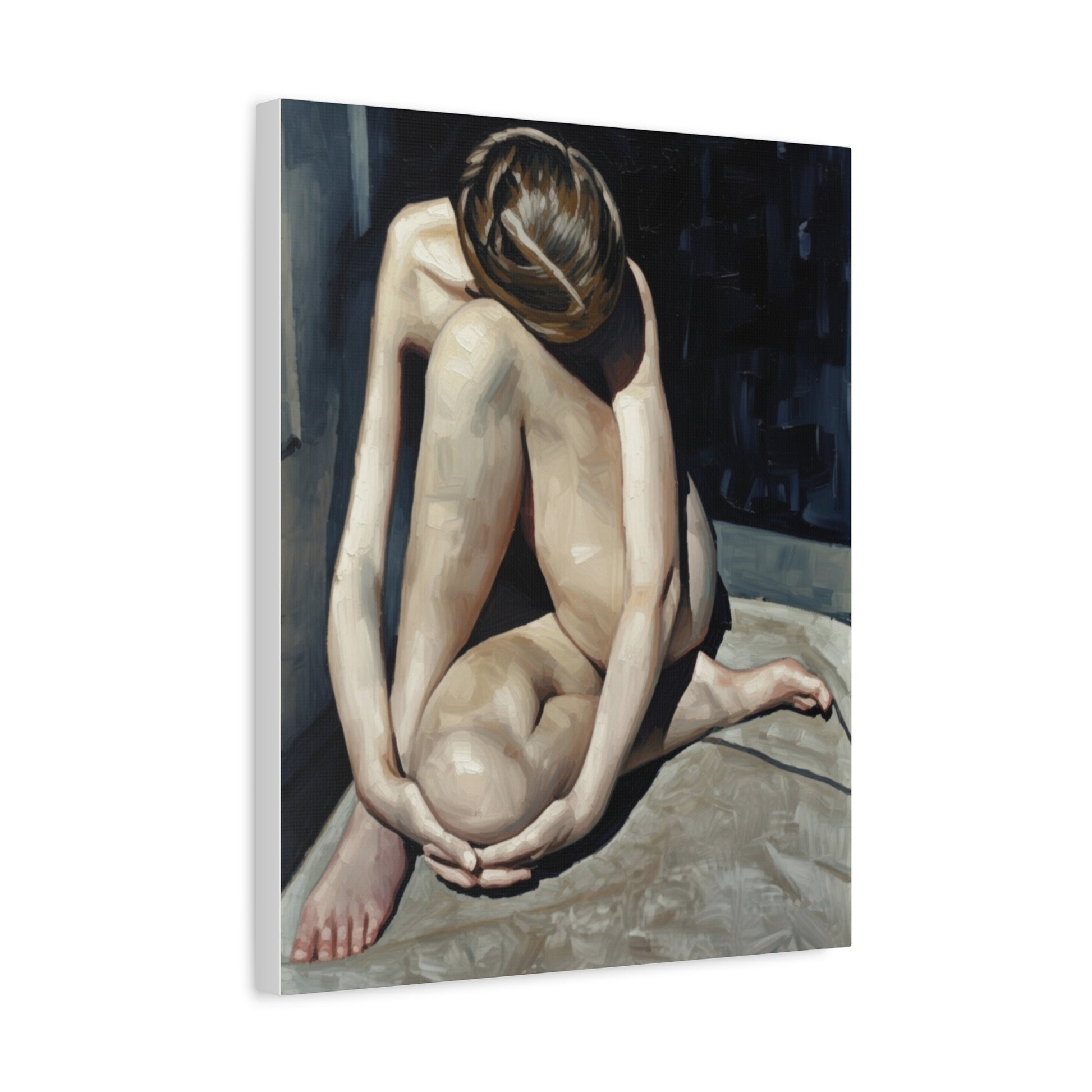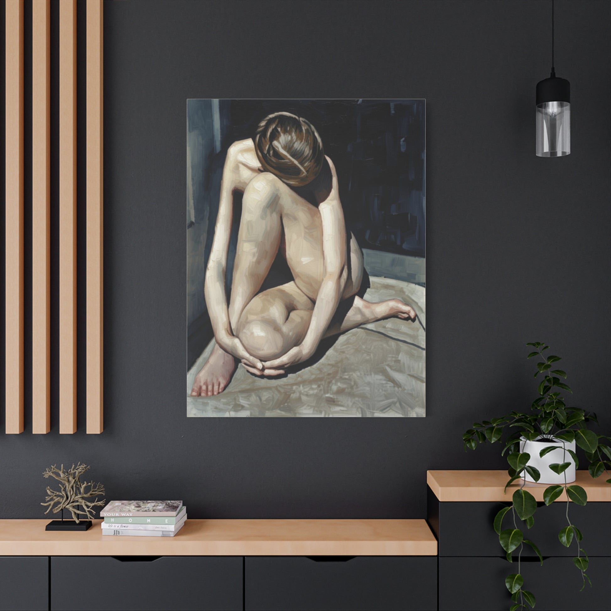 Figurative Nude Art Canvas Print — Contemplative Female Figure Matte Stretched