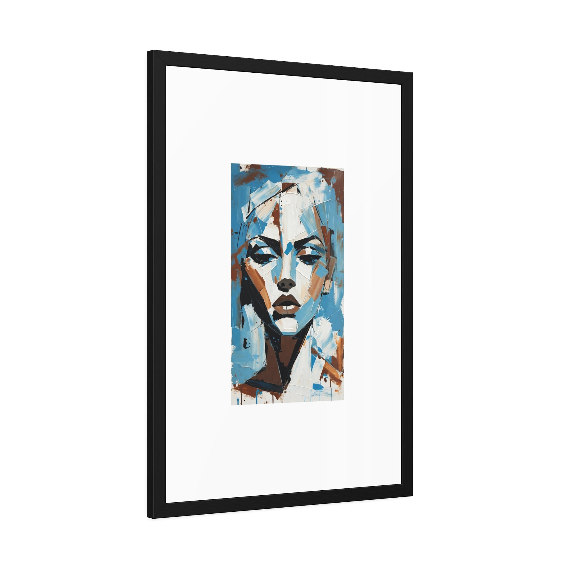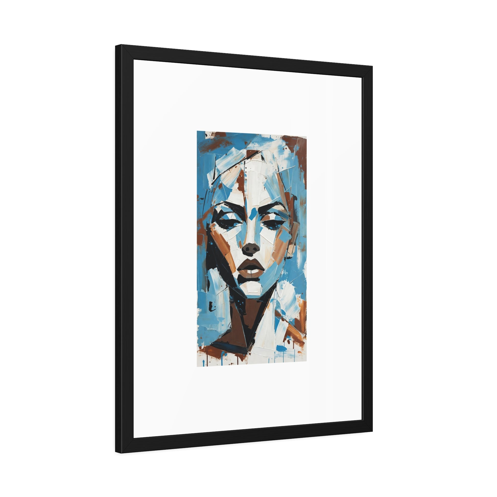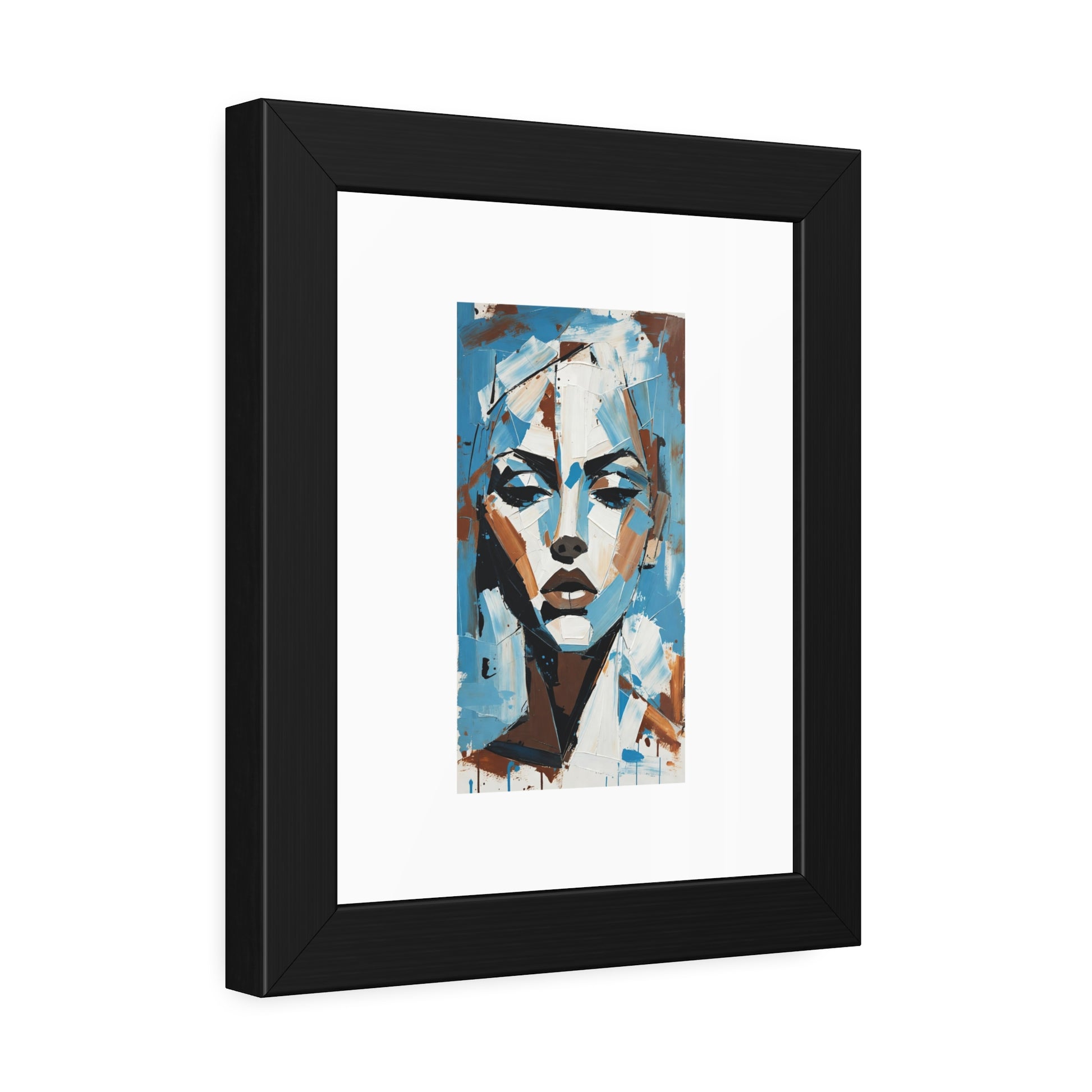 Framed Art Print - Abstract Blue Portrait Poster (Modern Wall Decor)