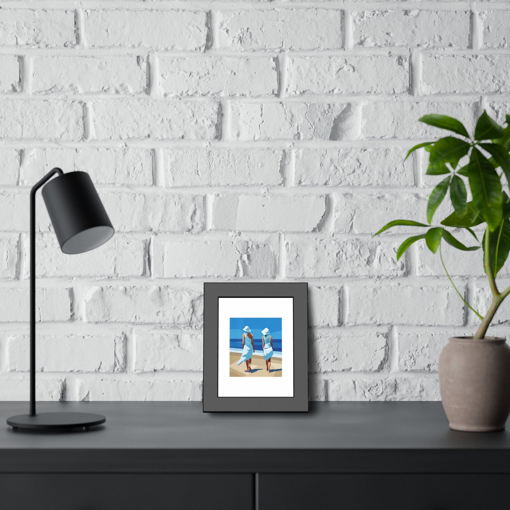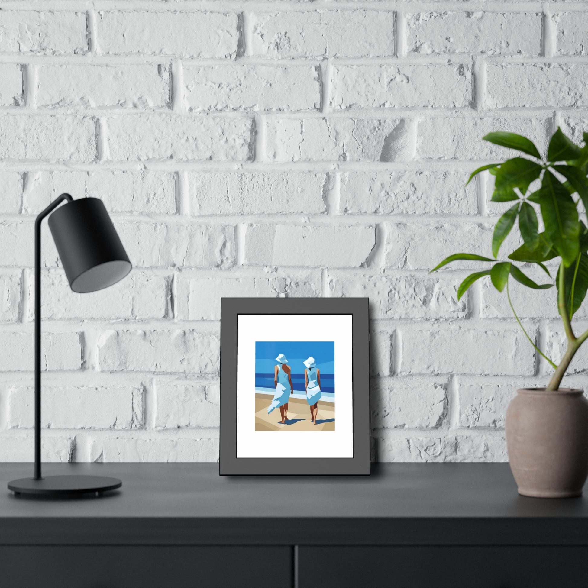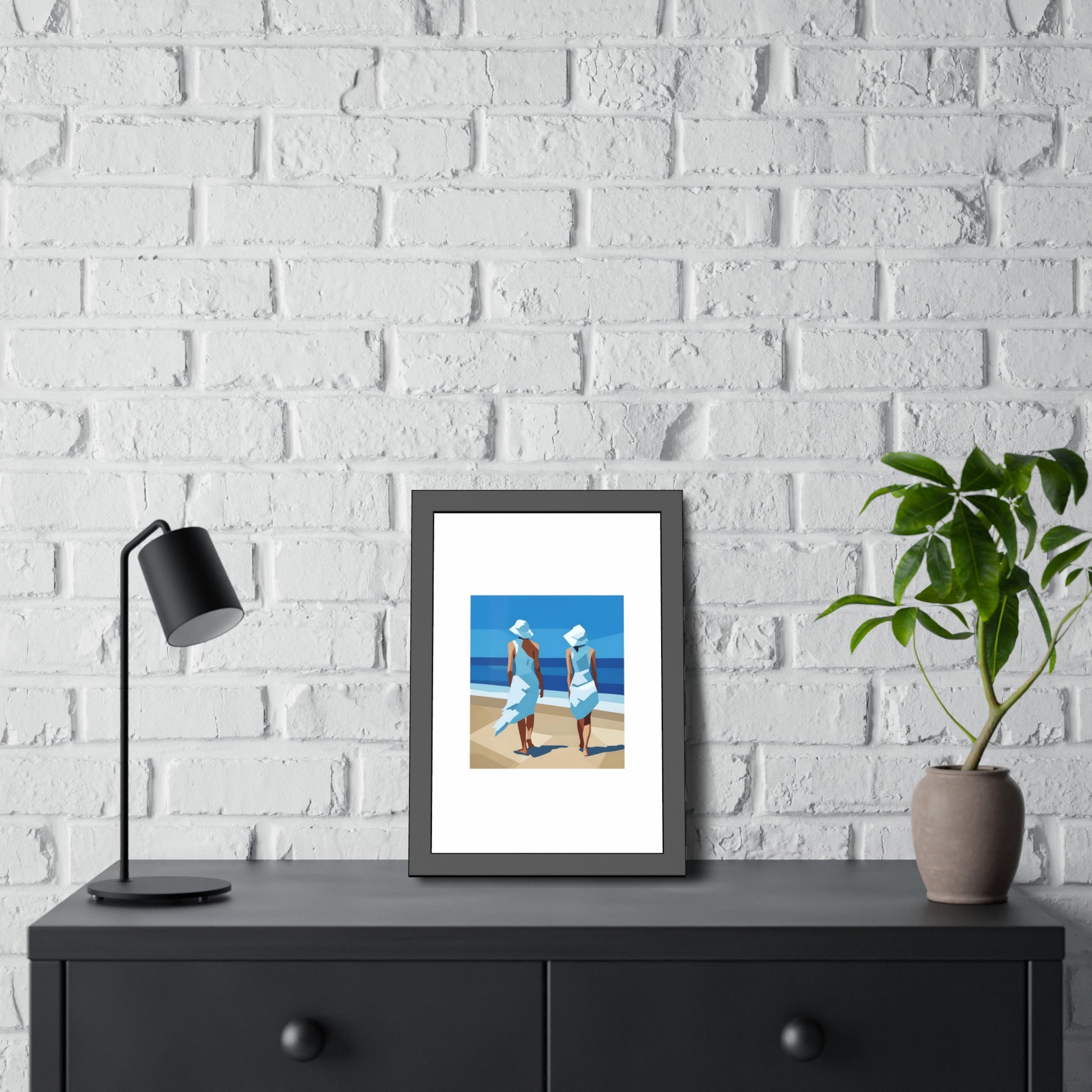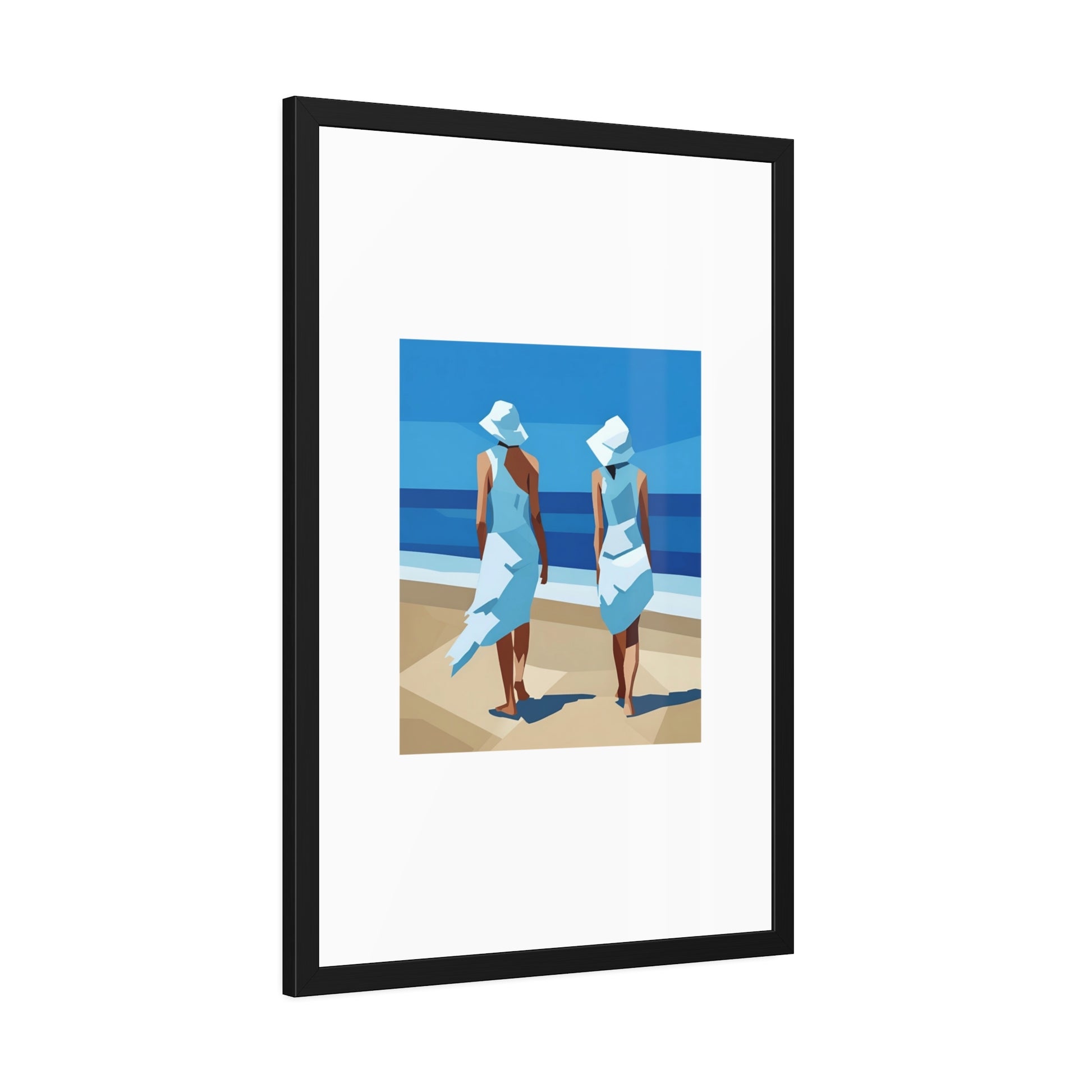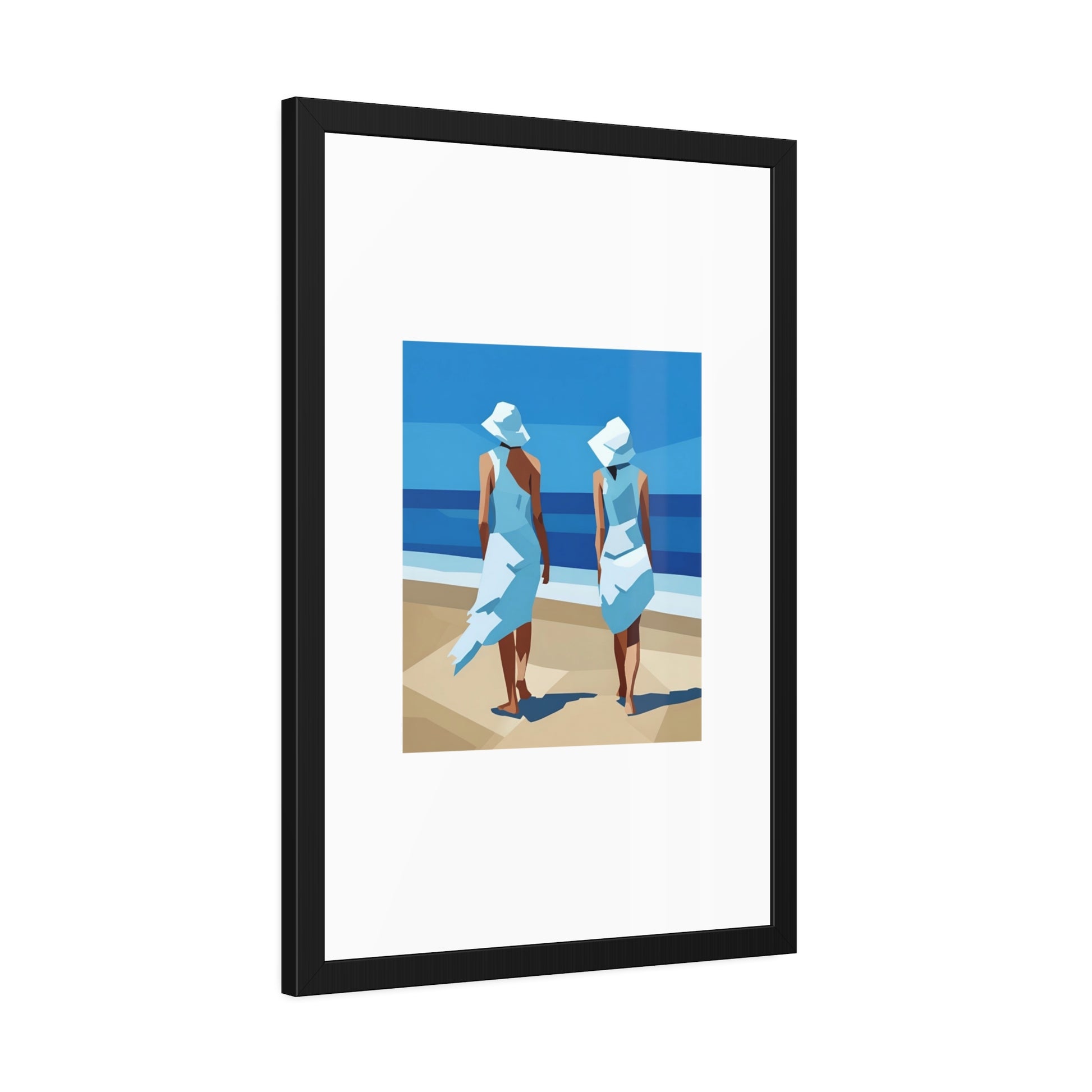 A classic framed art print that brings calm seaside moments into any room. The print is mounted in a matte black pinewood frame with a clean white mat and shatter‑proof plexiglass, giving the image crisp presence on the wall. Choose between fine art paper with a textured, traditional feel or a bright semi‑gloss photo paper for punchy, vivid color. The frame ships ready to hang with pre‑installed hardware and rubber bumpers so it sits straight and protects your walls. Available in horizontal or vertical layouts and multiple sizes to fit bedroom nooks, living room galleries, or coastal entryways.