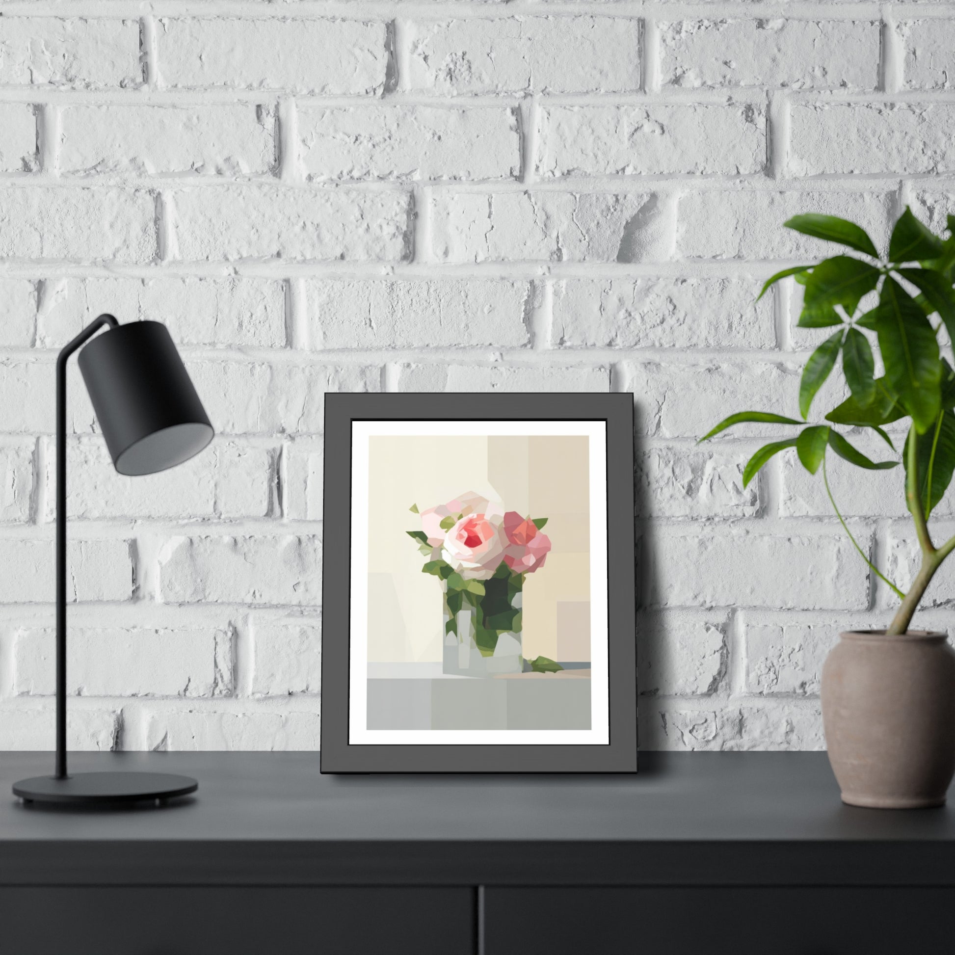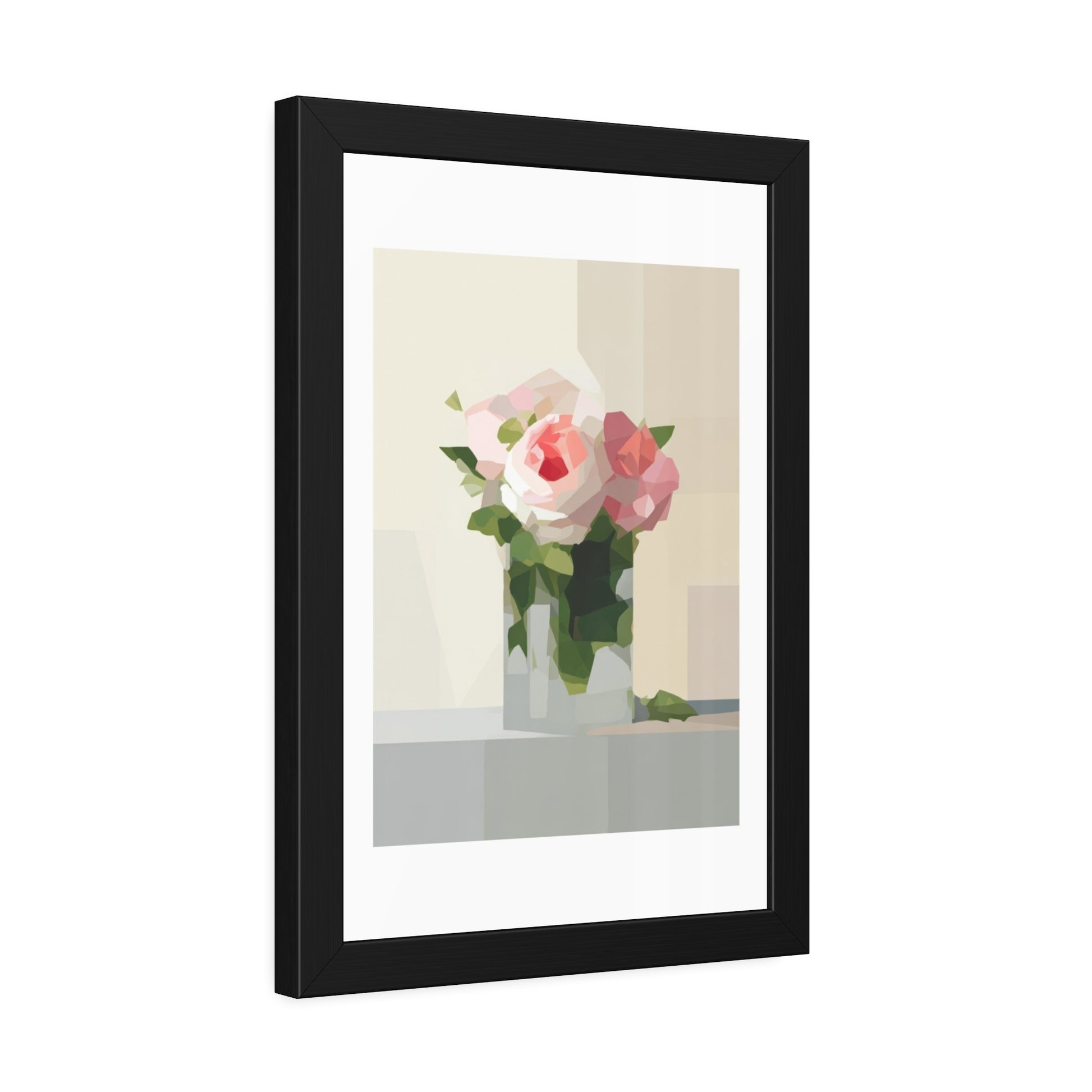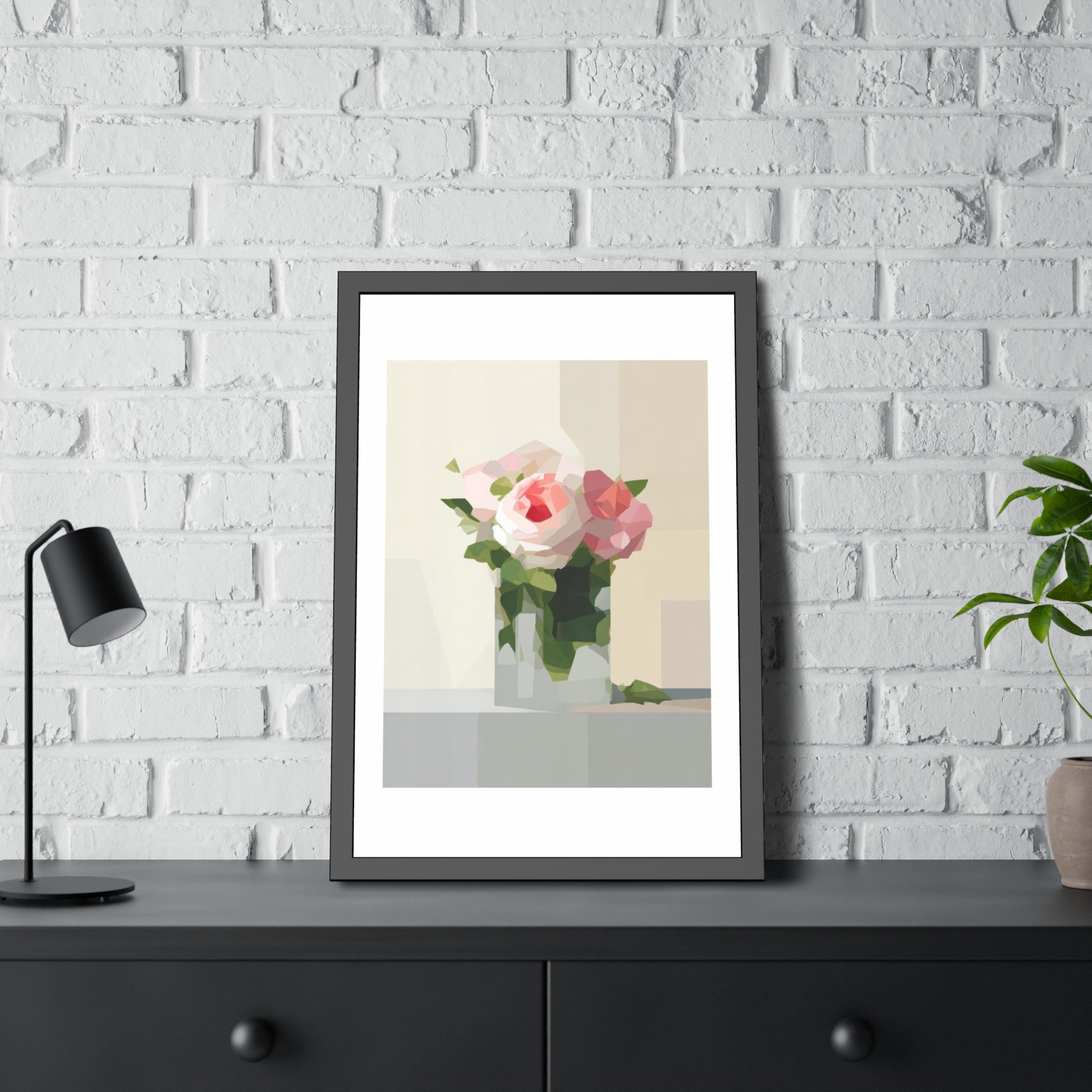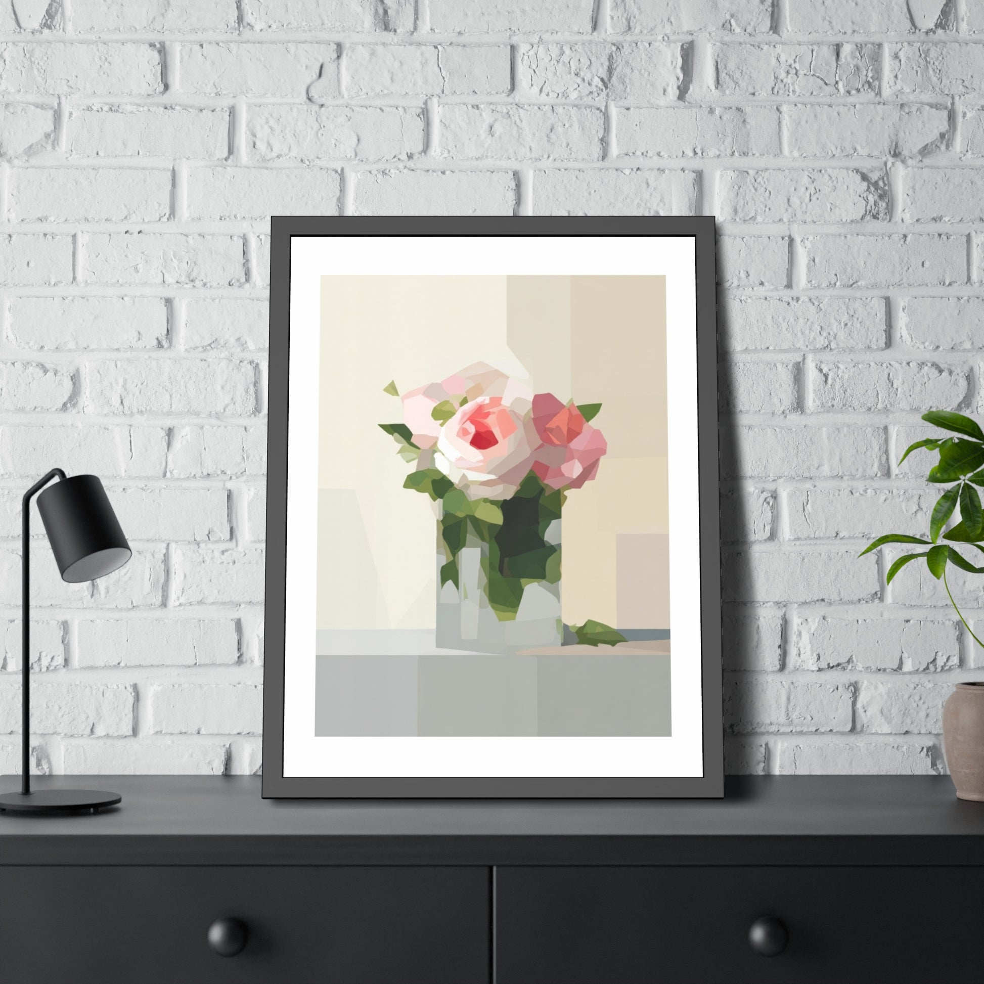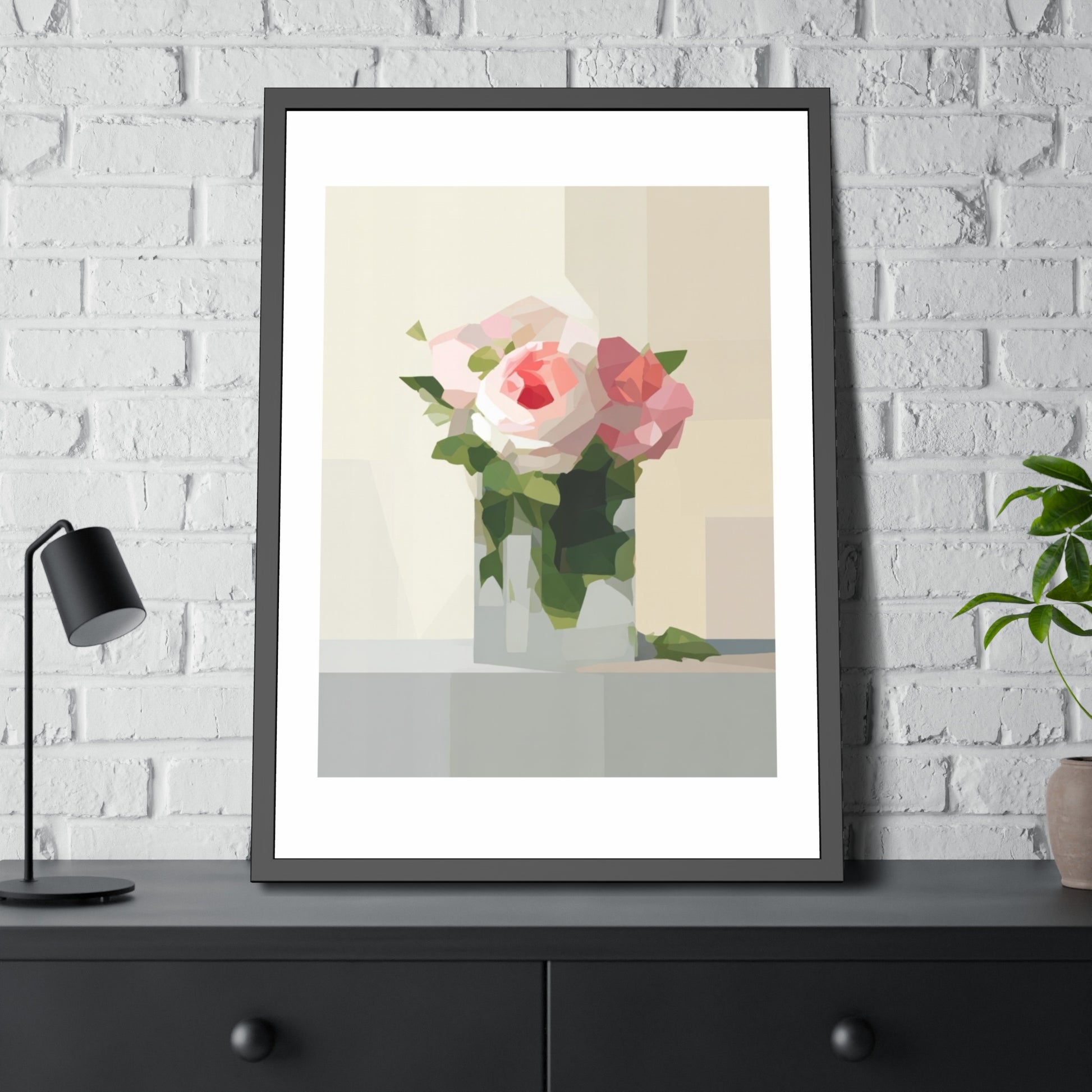 Framed Floral Poster — Geometric Pink Rose Wall Art