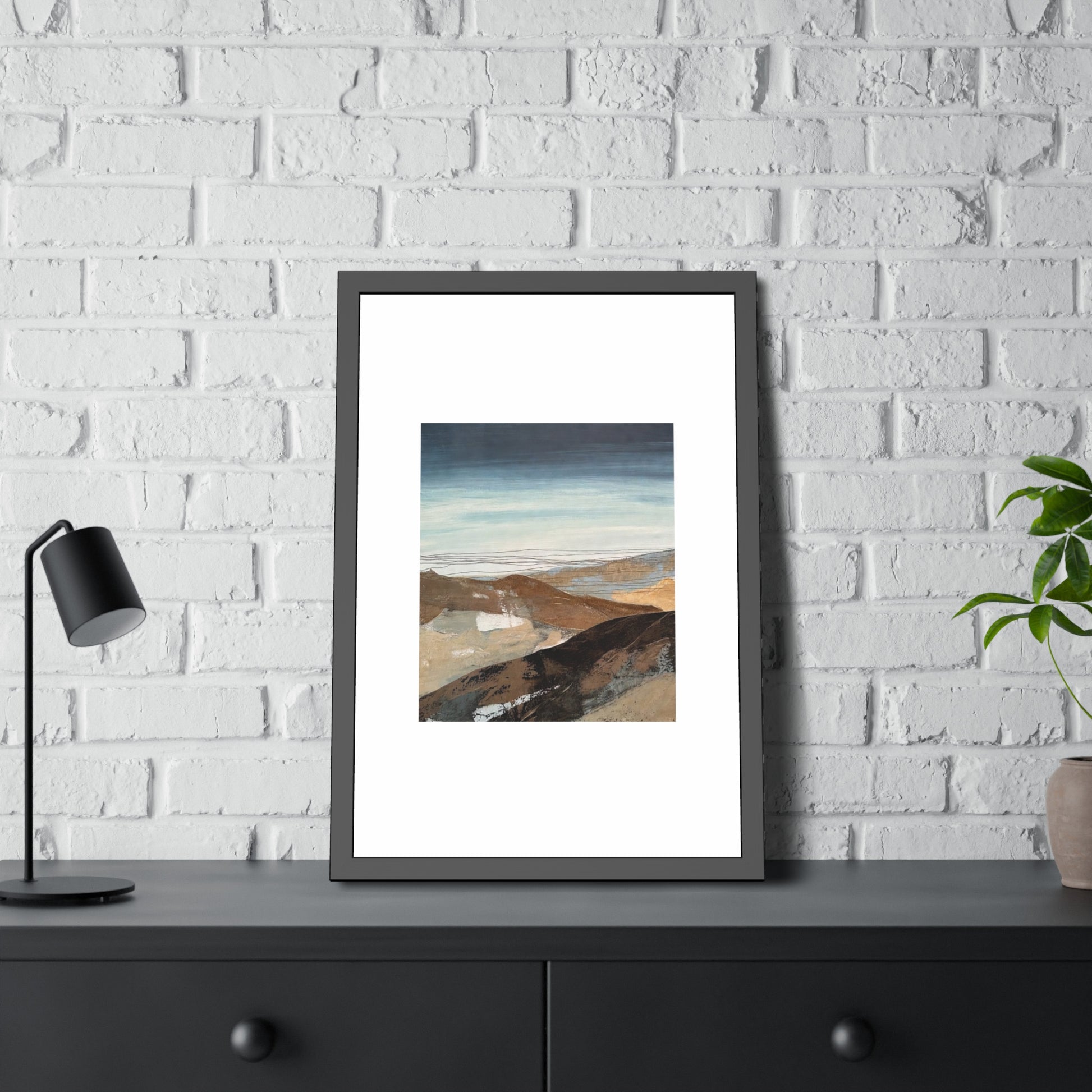 Framed Landscape Art Print — Minimal Coastal Mountain Poster