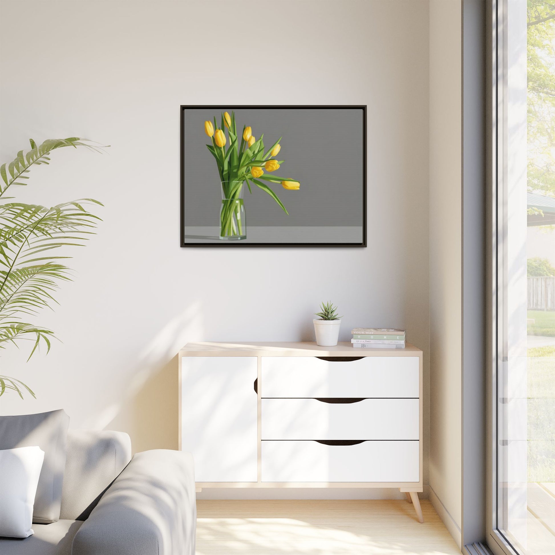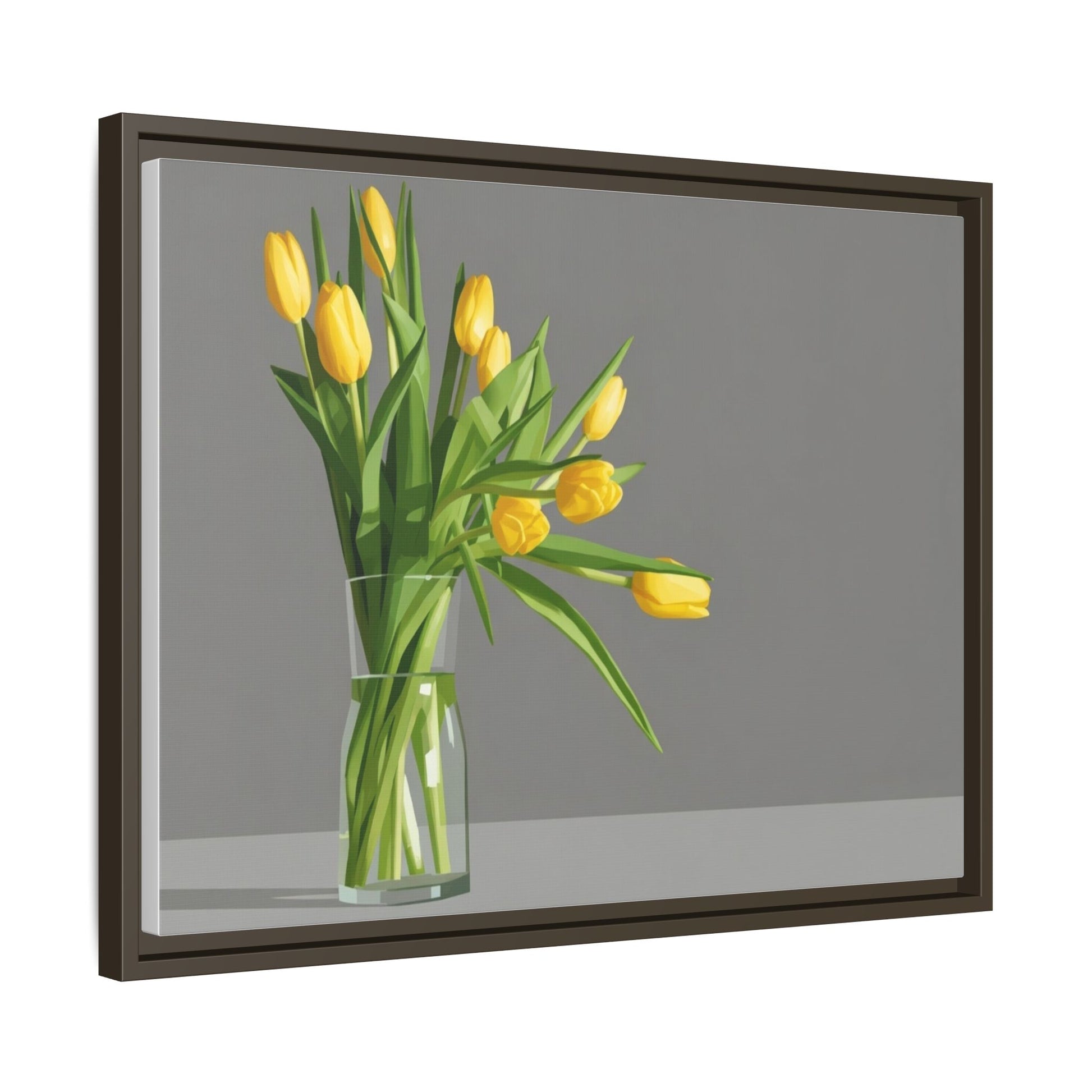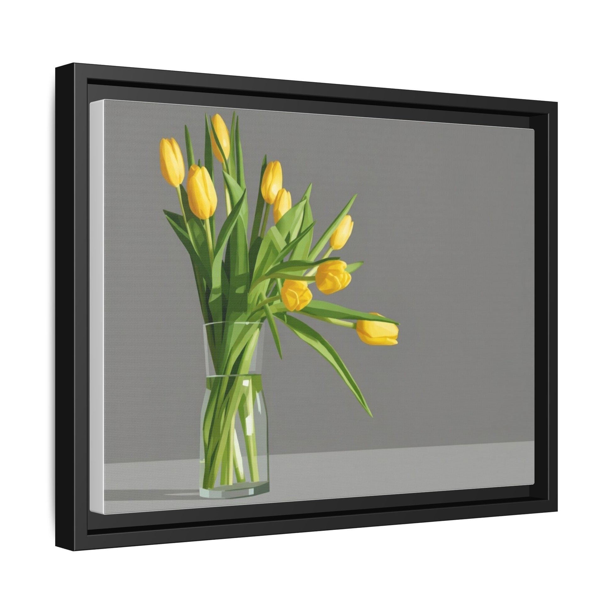 Framed Matte Canvas Art — Yellow Tulip Vase Wall Print