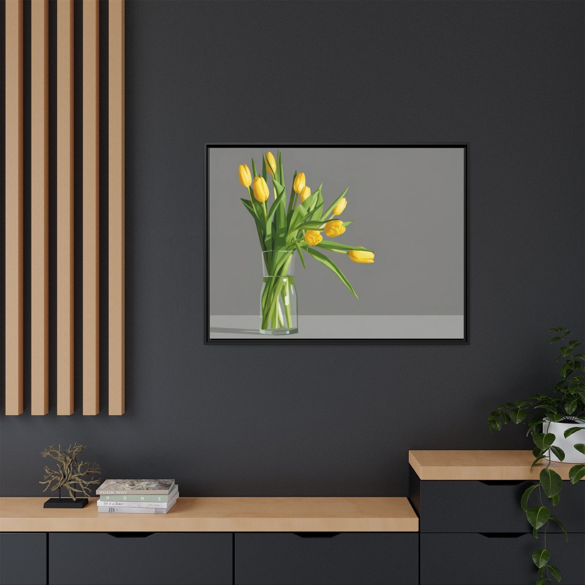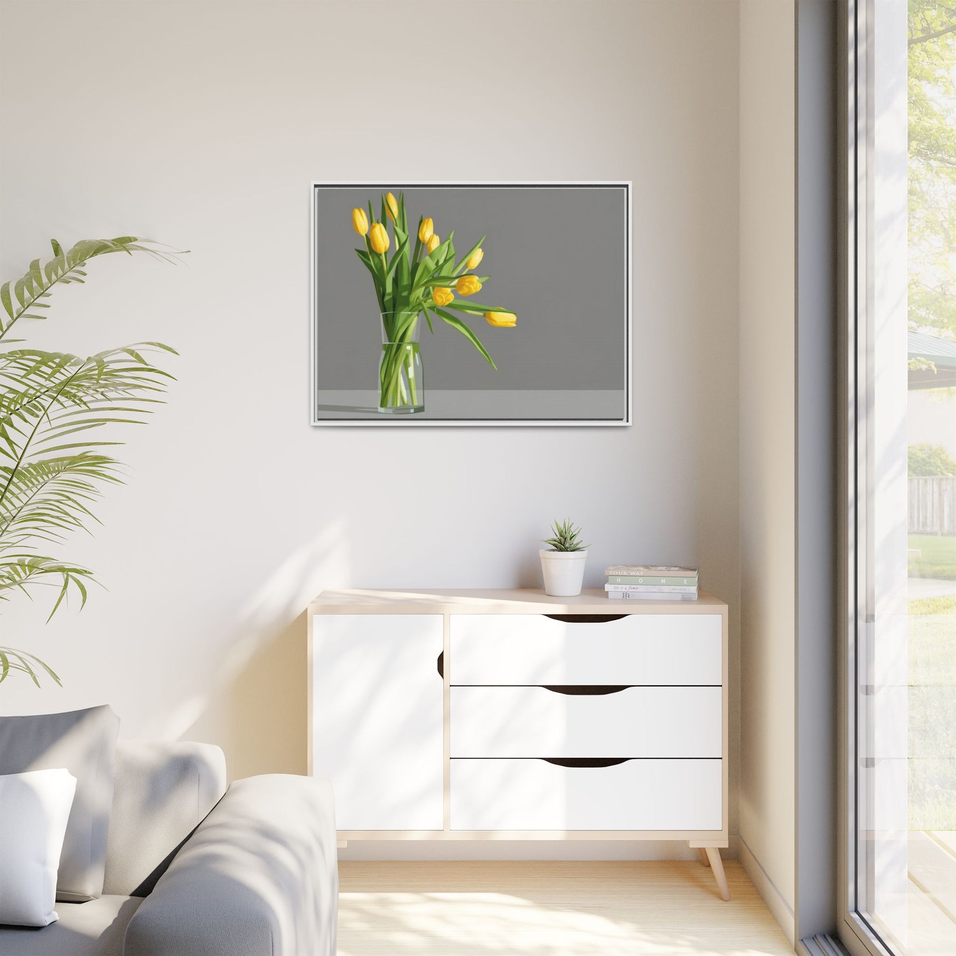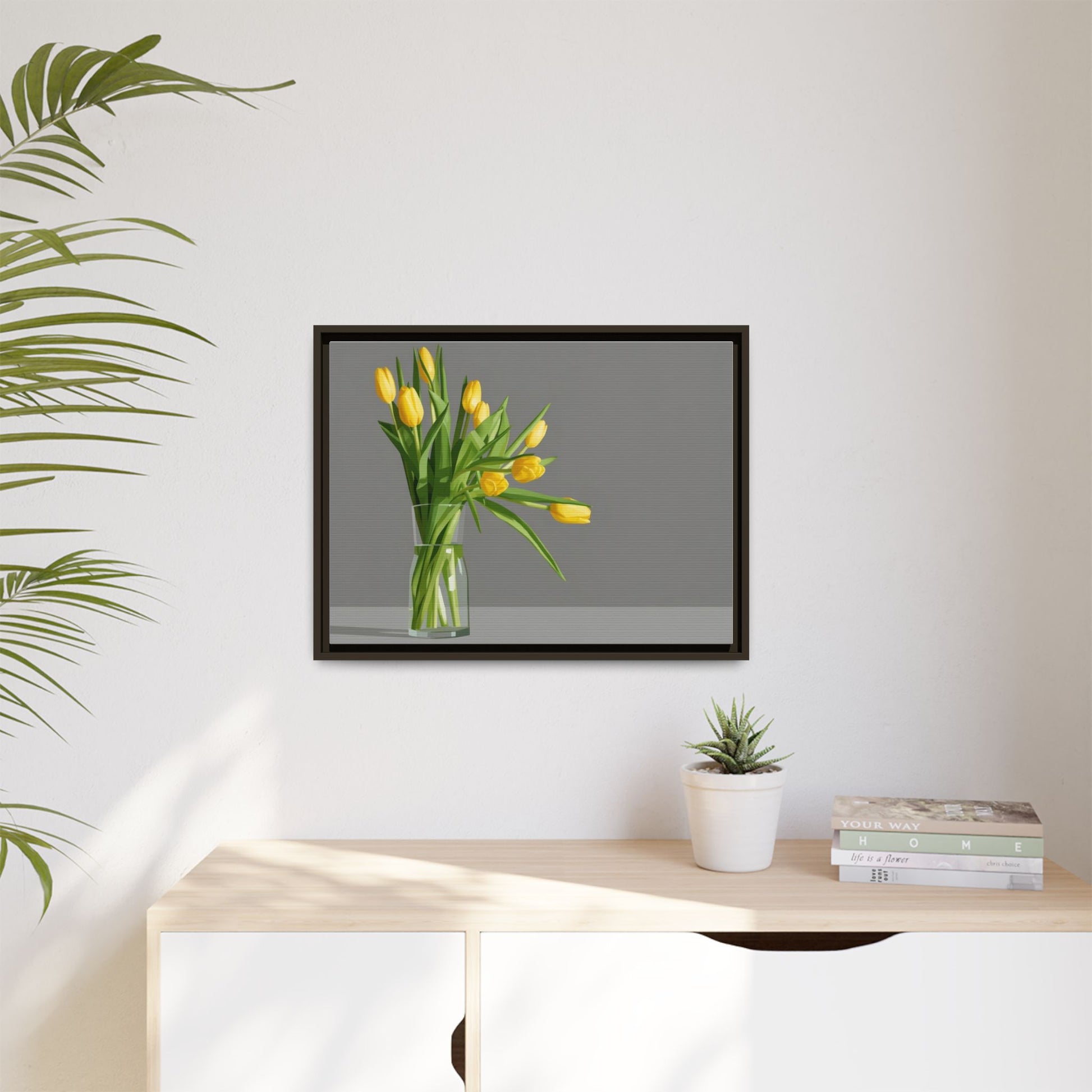 Framed Matte Canvas Art — Yellow Tulip Vase Wall Print