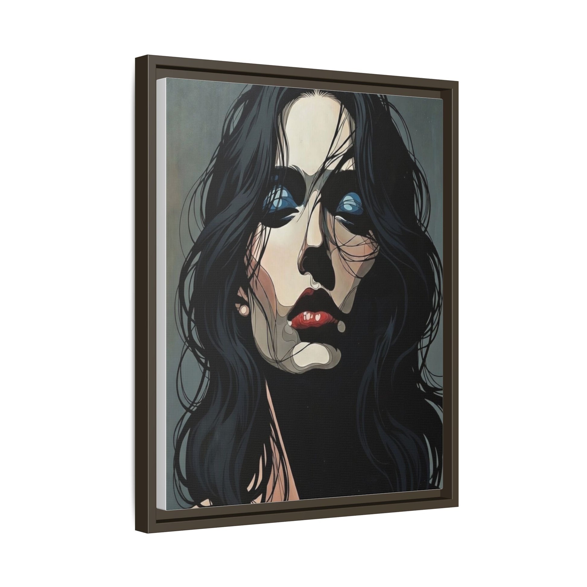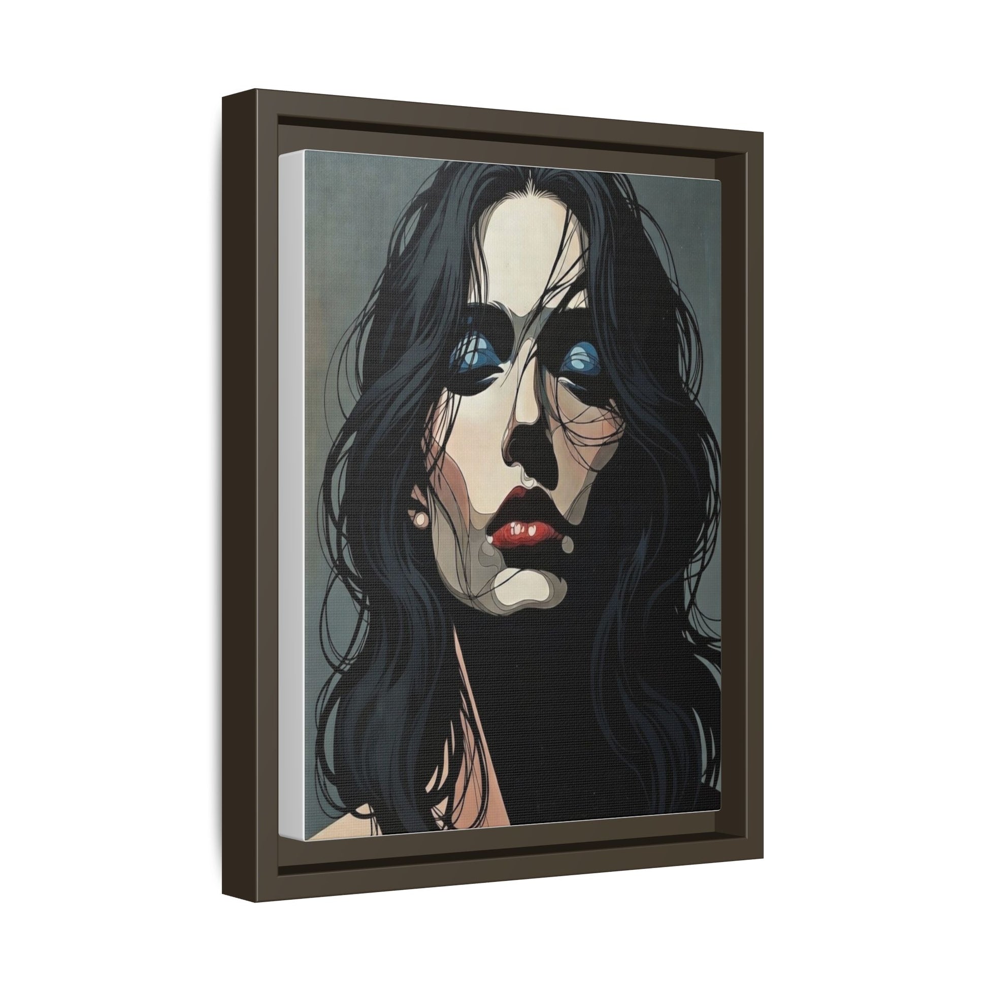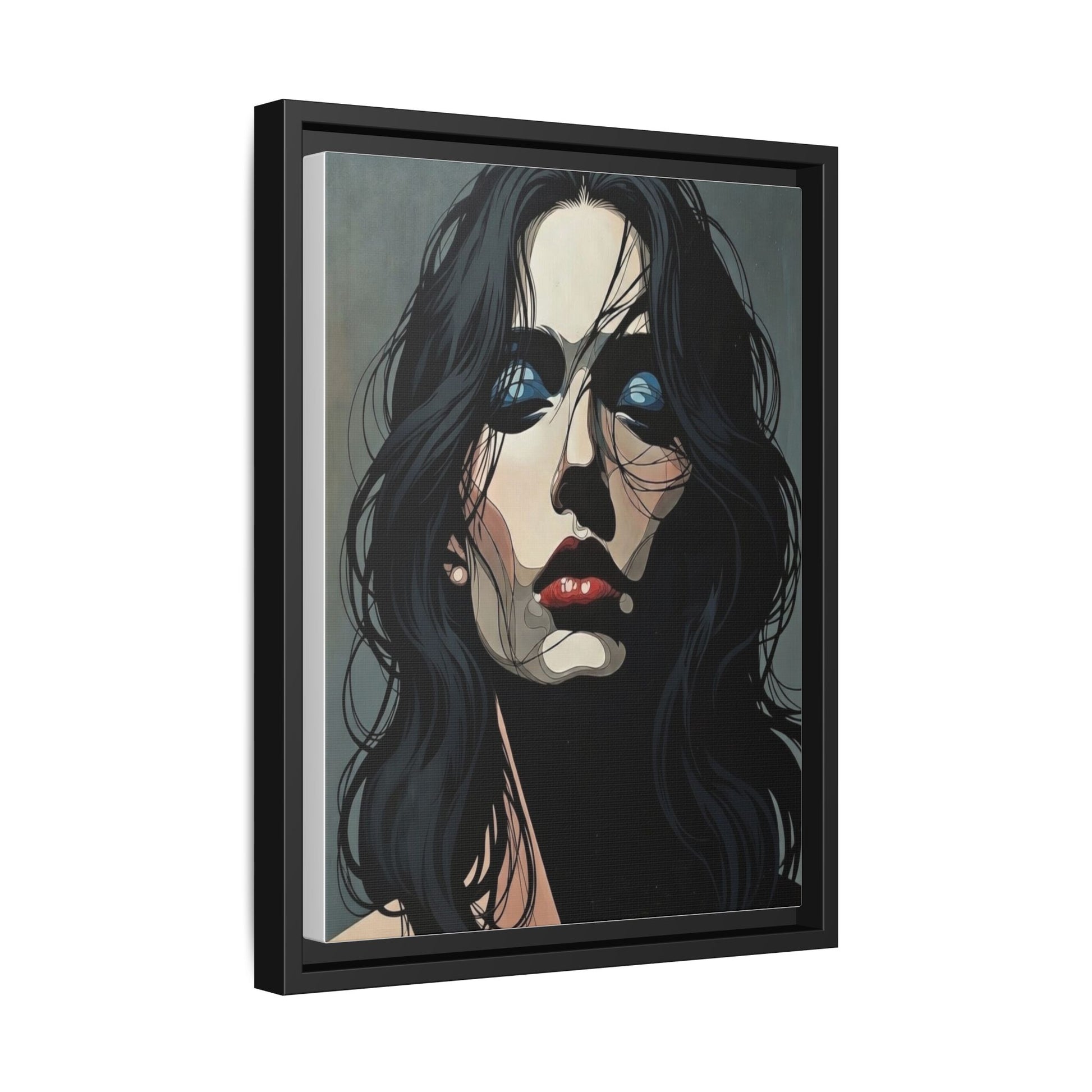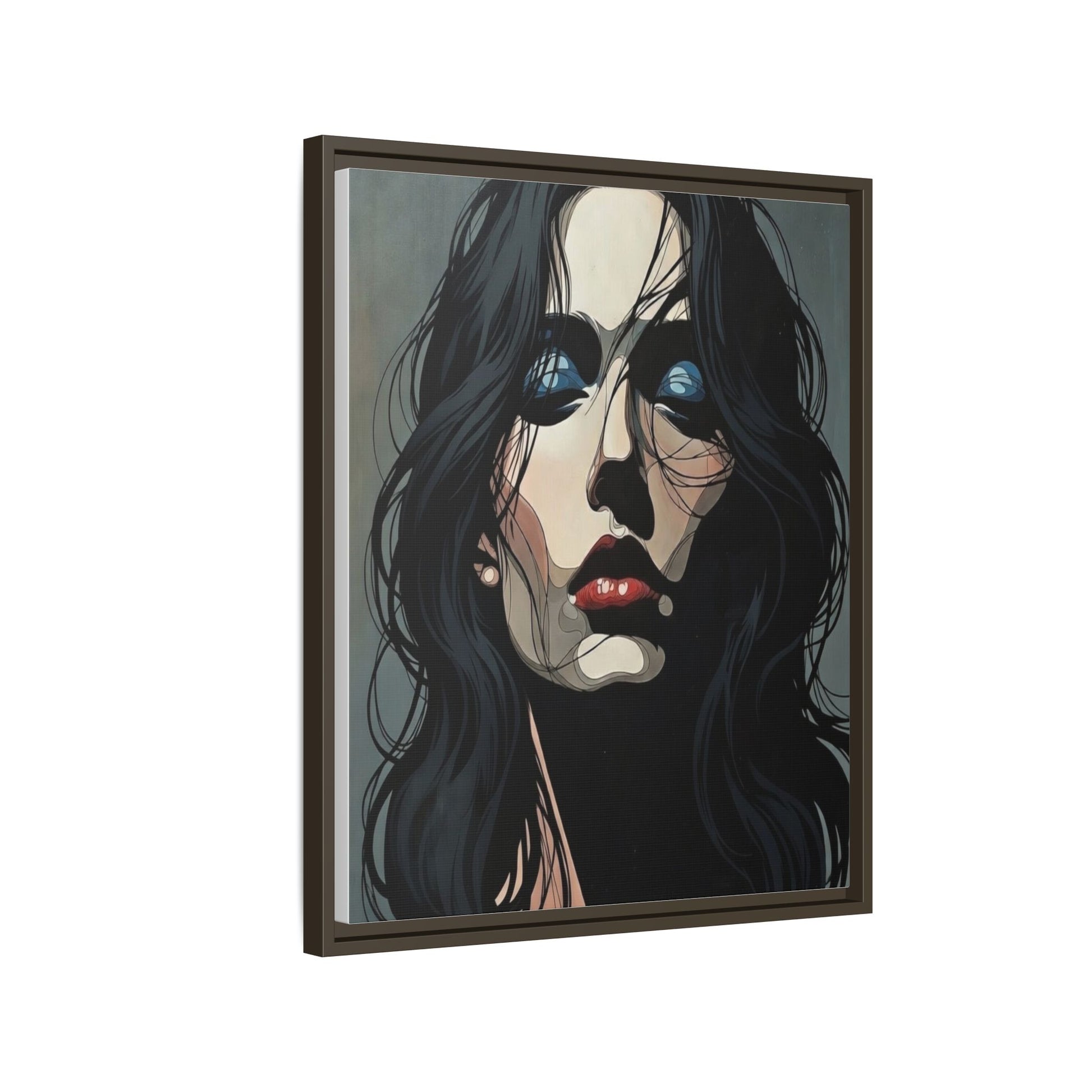 Framed Matte Canvas: Moody Portrait of Woman – Modern Gothic Wall Art