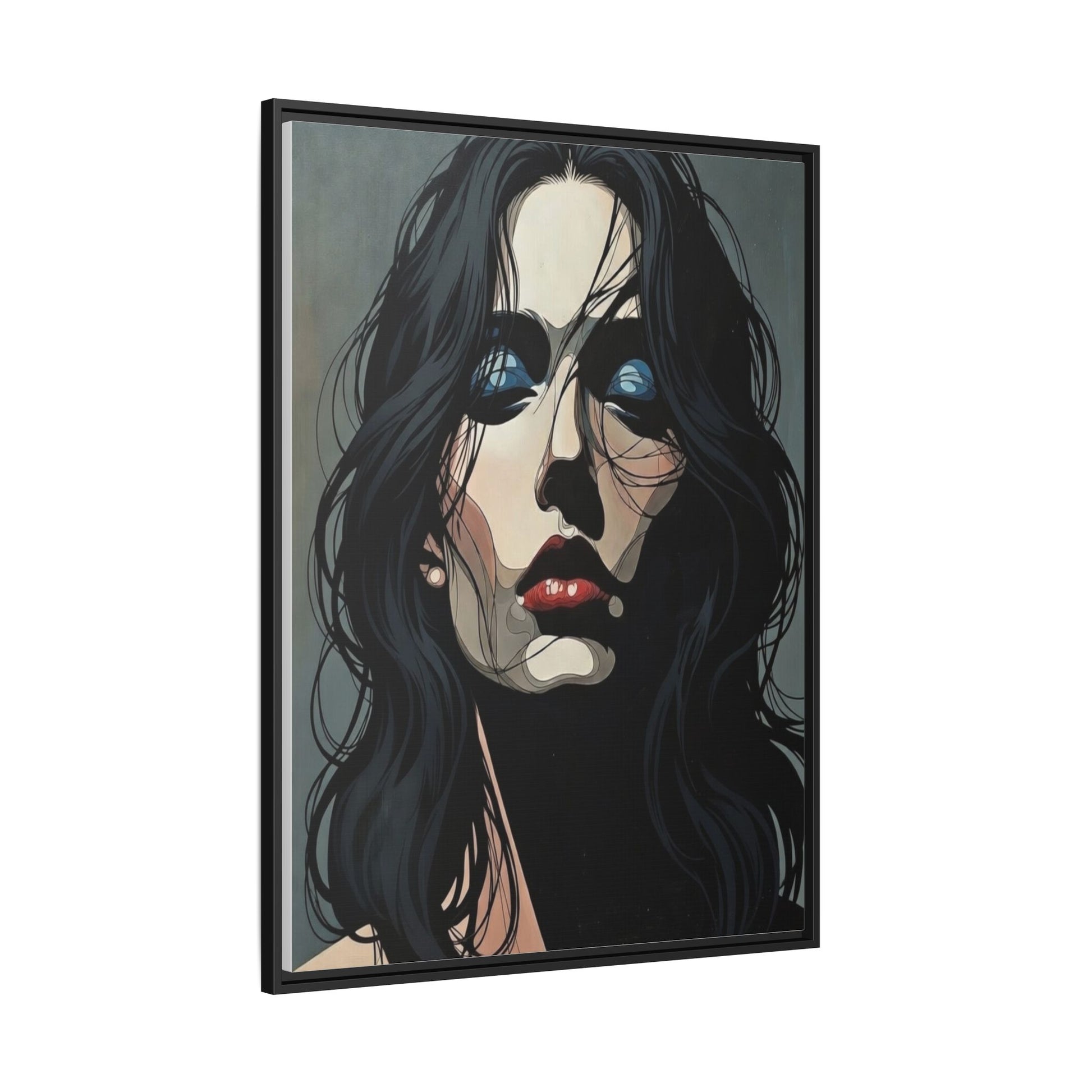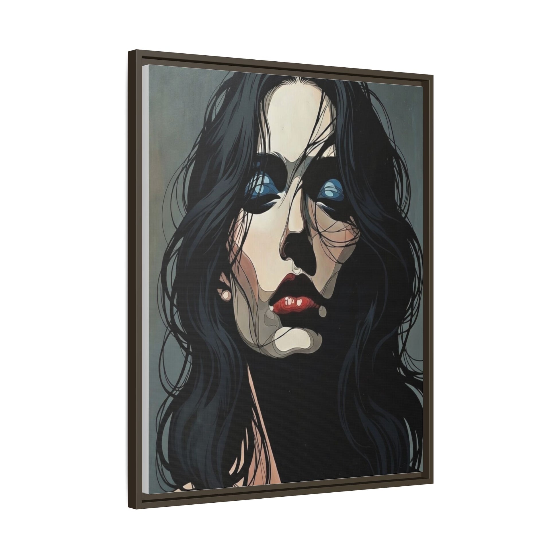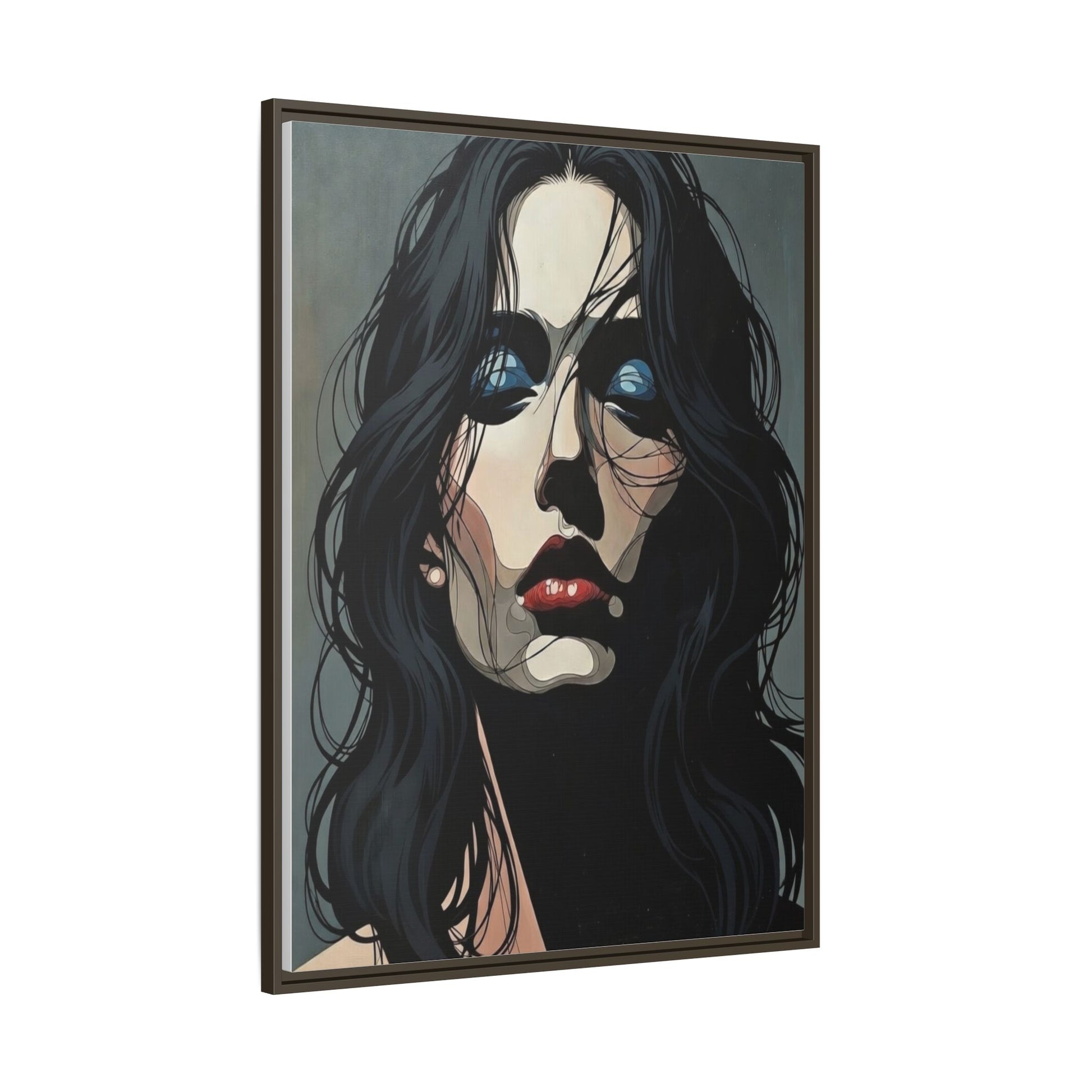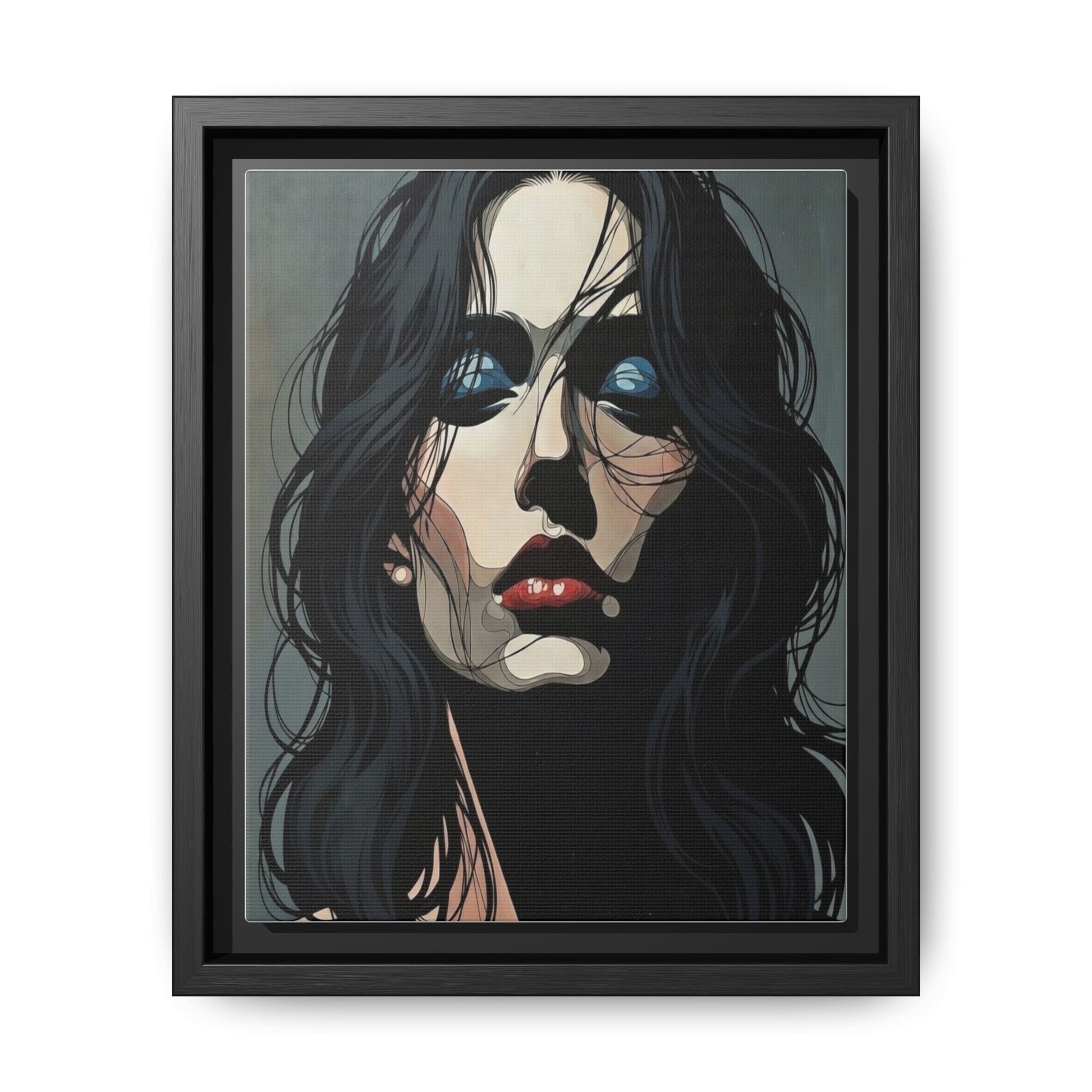 Framed Matte Canvas: Moody Portrait of Woman – Modern Gothic Wall Art
