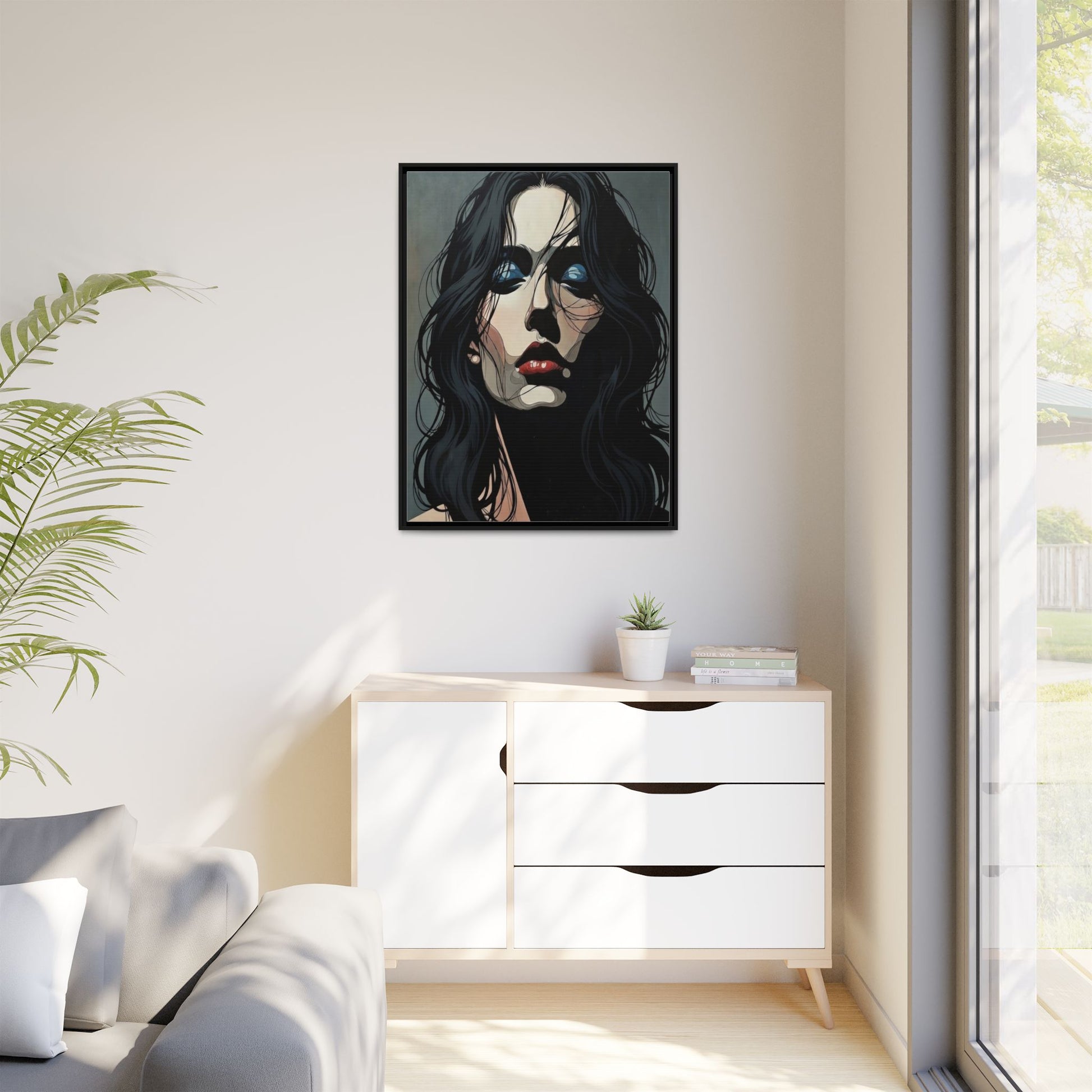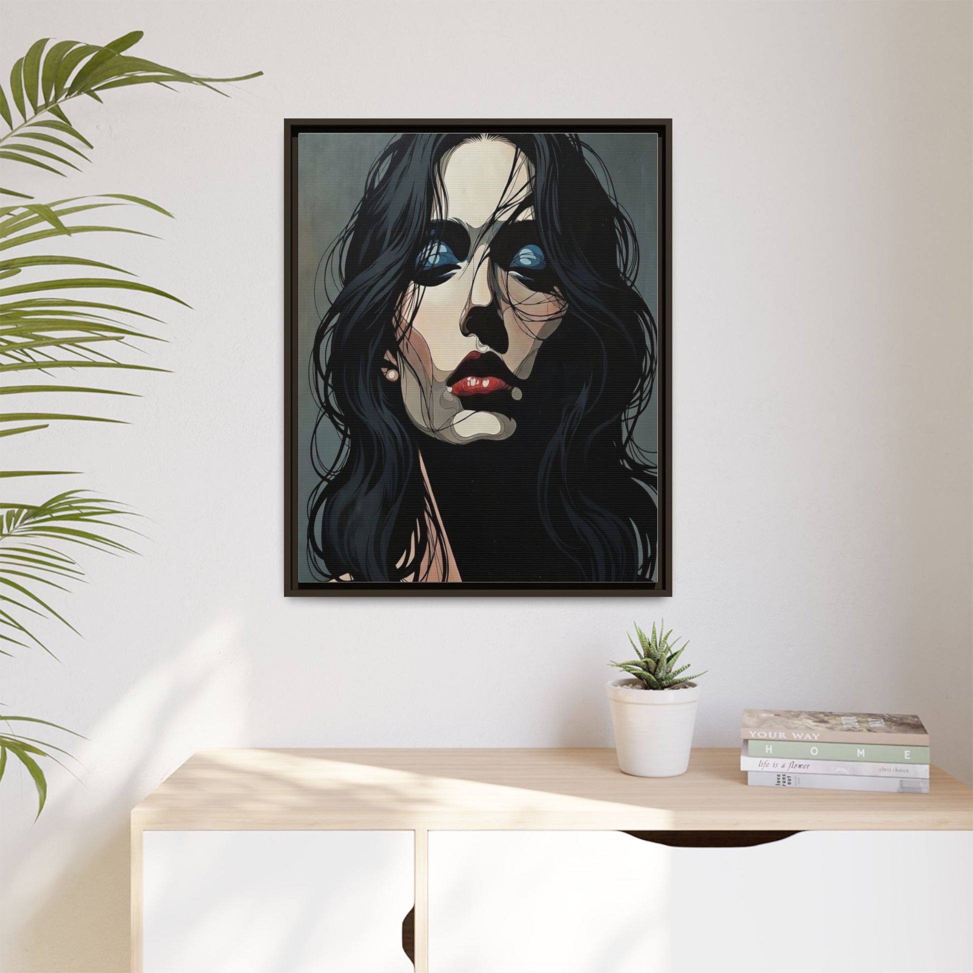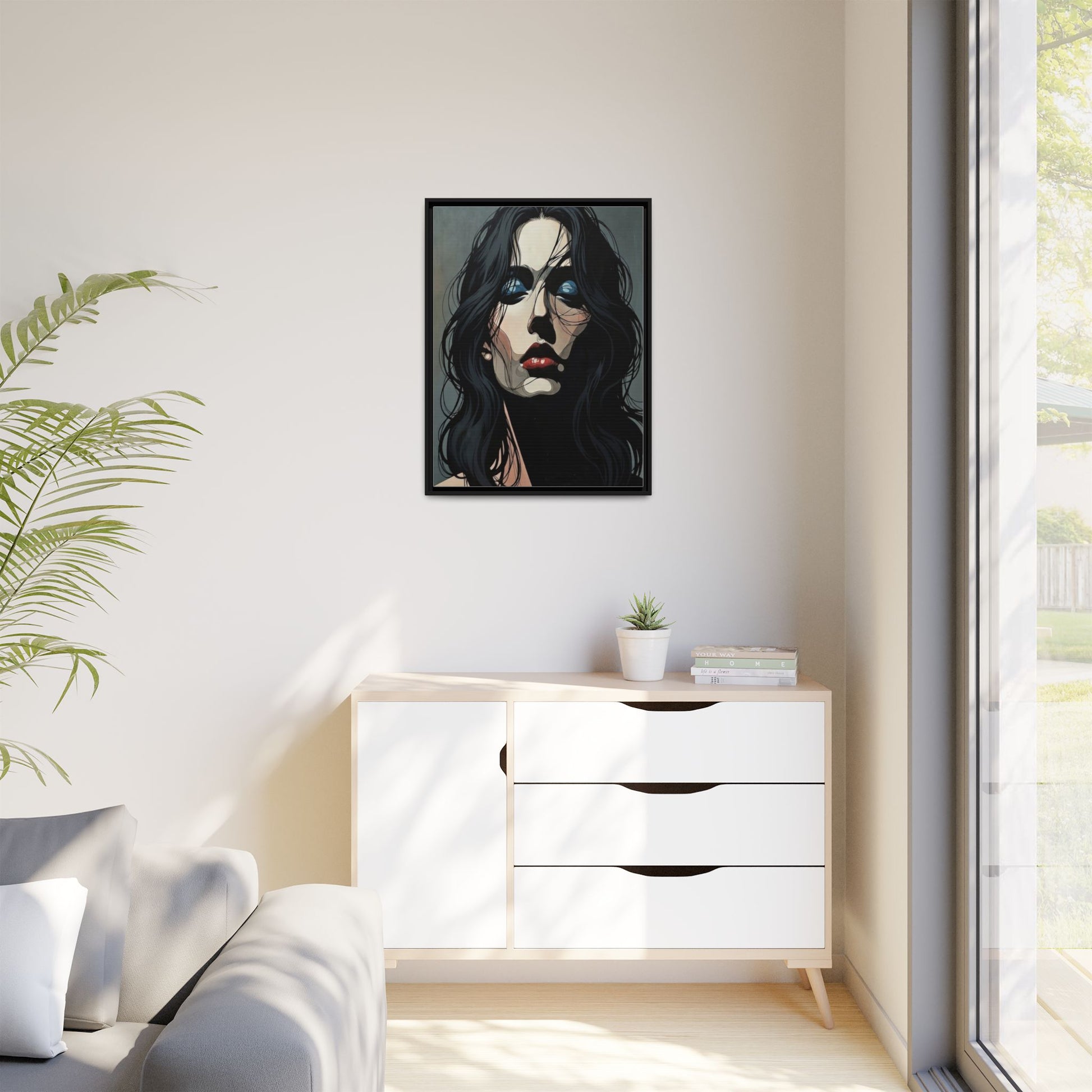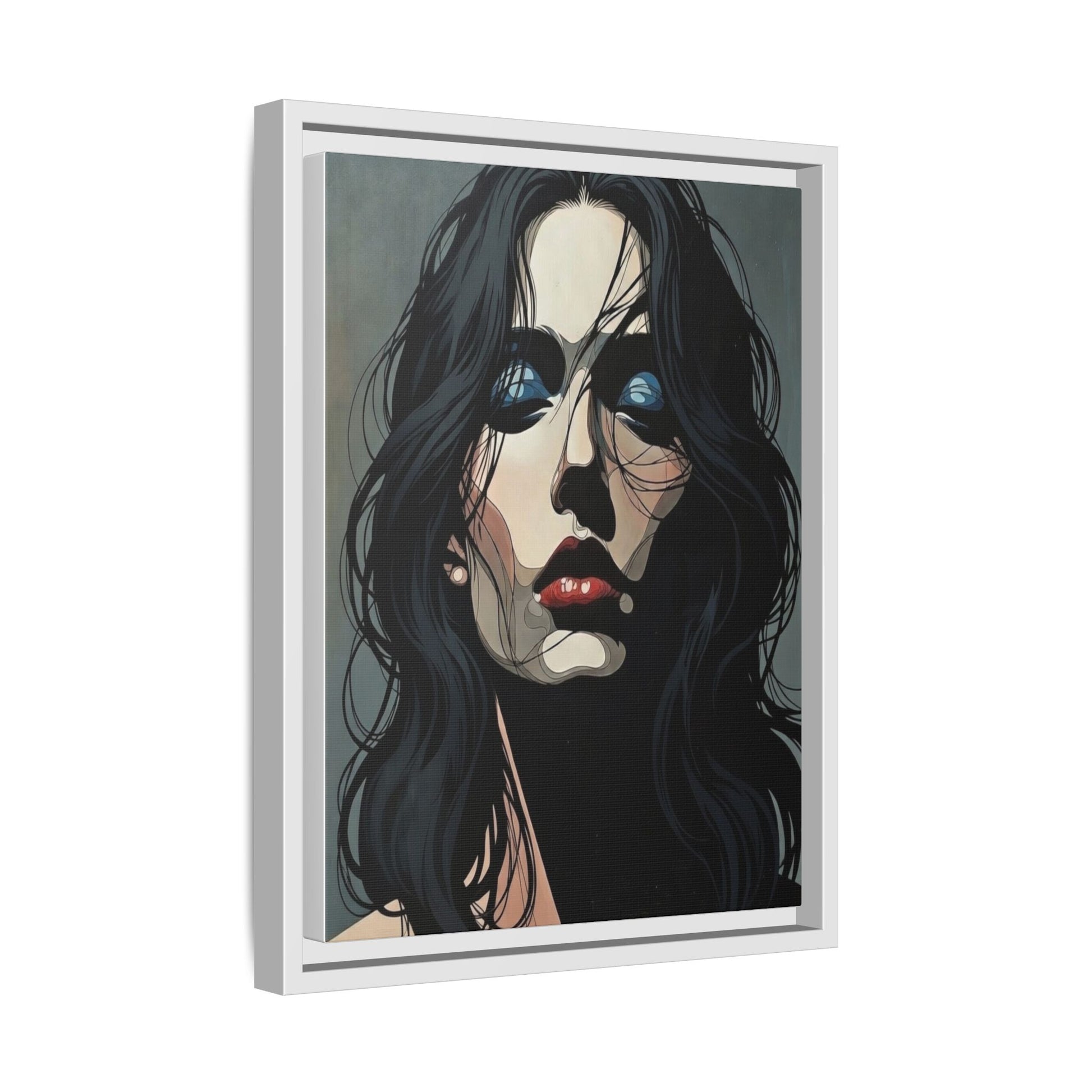 Framed Matte Canvas: Moody Portrait of Woman – Modern Gothic Wall Art