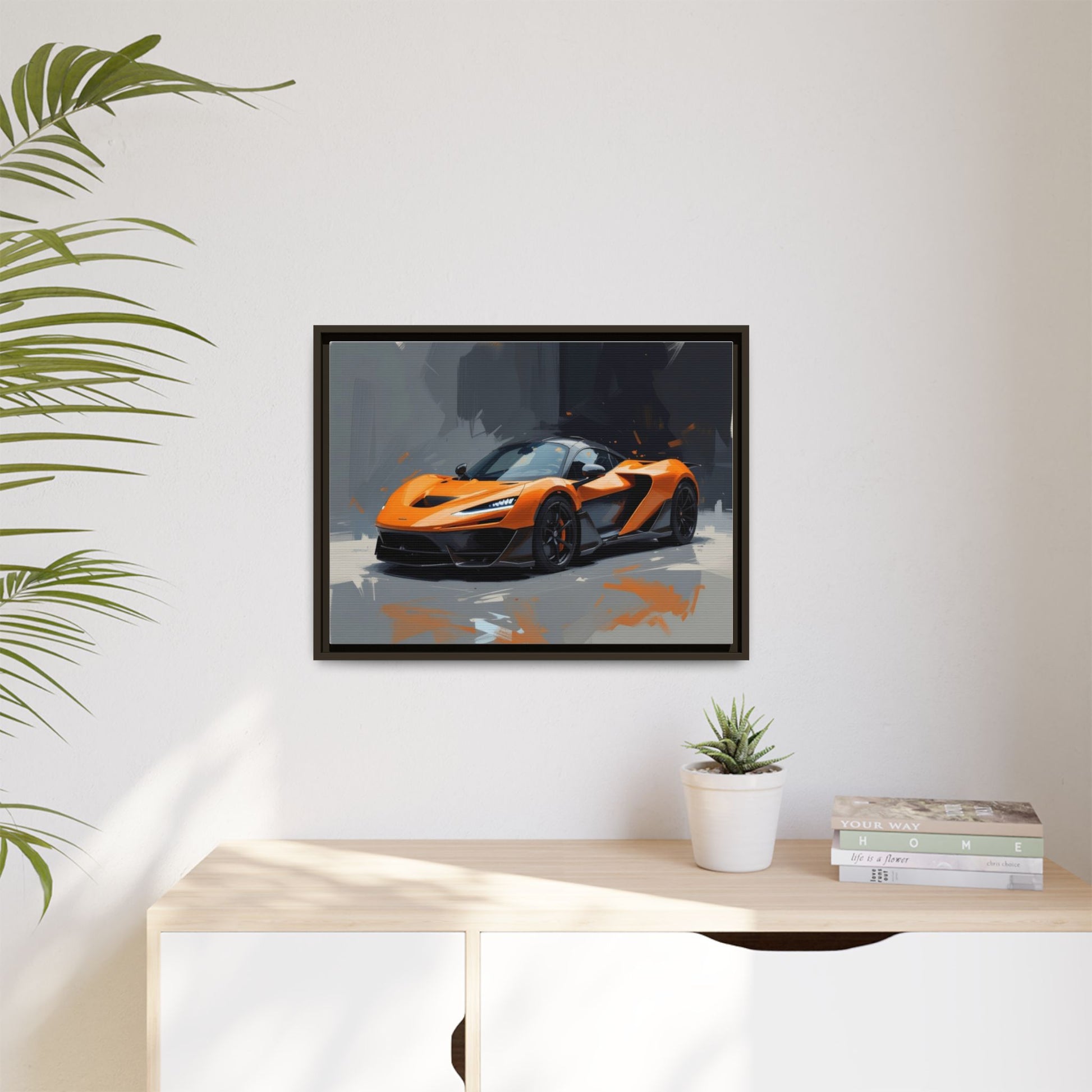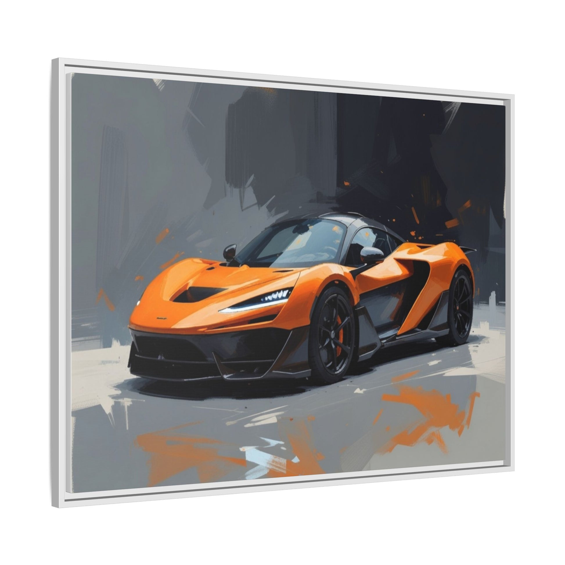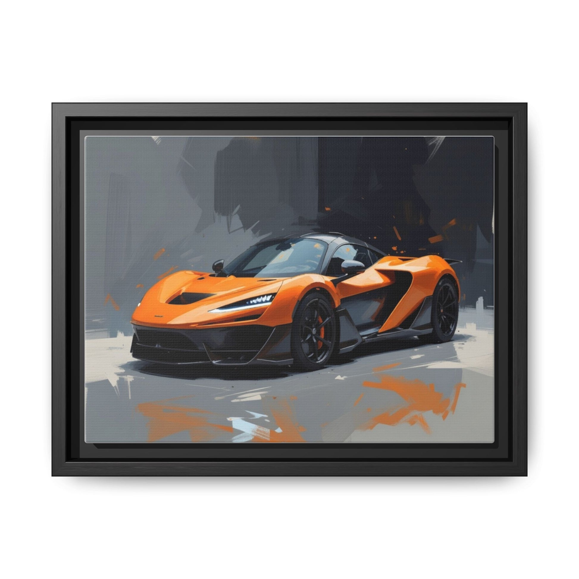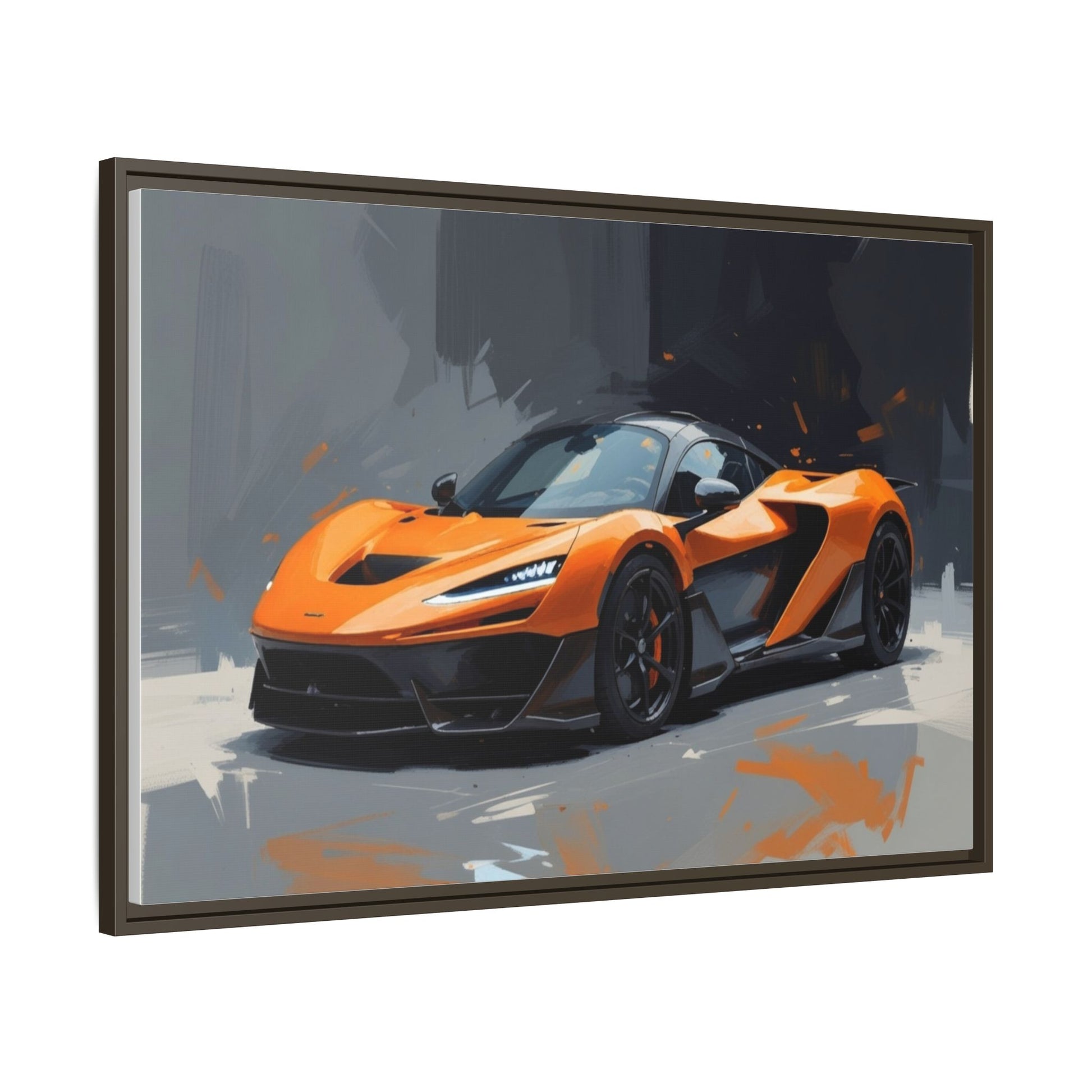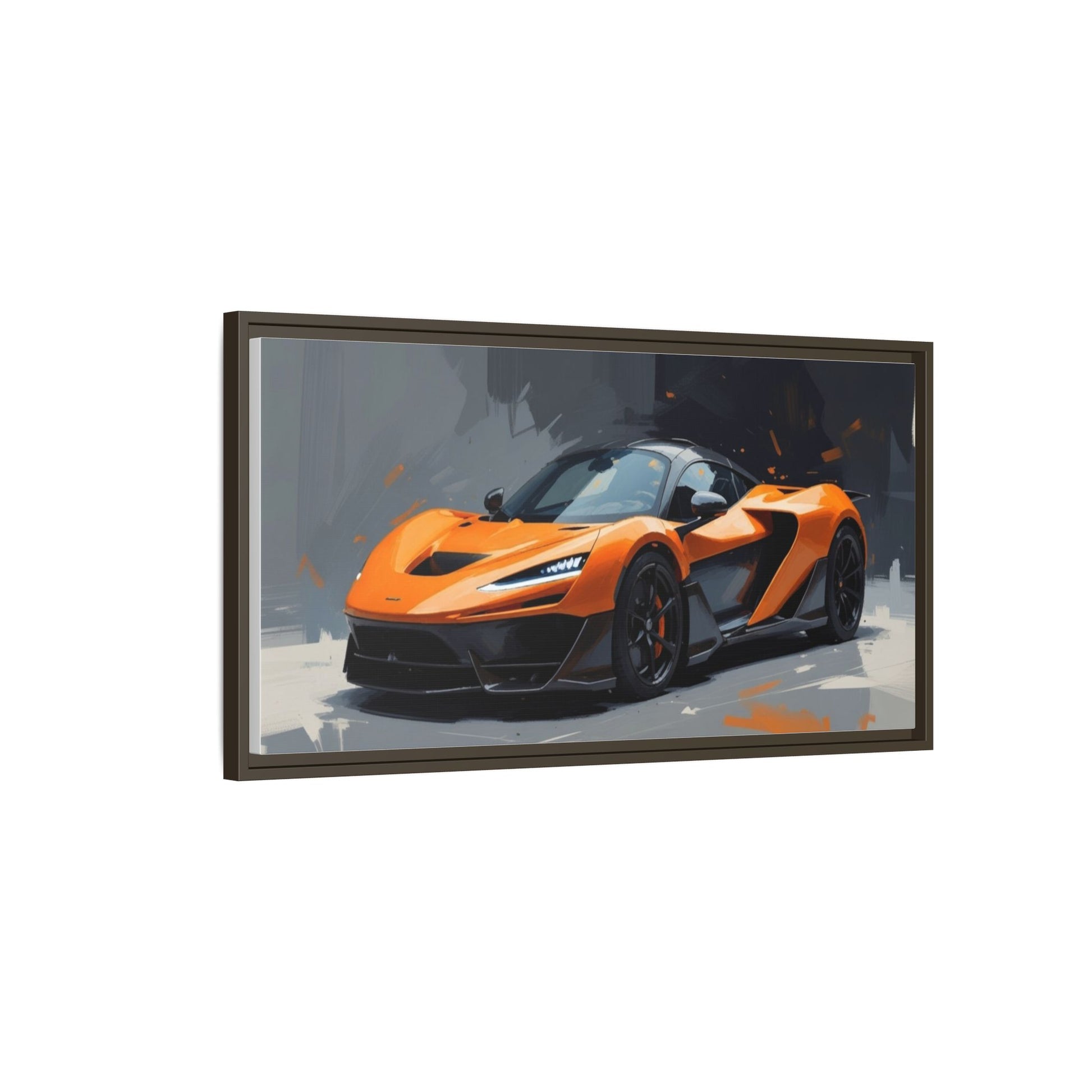 A matte canvas print with a slim black frame that captures the raw energy of a bright orange supercar. Brushstroke-style rendering and high-contrast highlights give the image motion and attitude, while the muted background keeps focus on the car’s sculpted lines. Hung in a studio, man-cave, or office, this framed canvas brings speed and modern design into a room without shouting—it’s a discreet statement piece that reads as both art and automotive obsession.