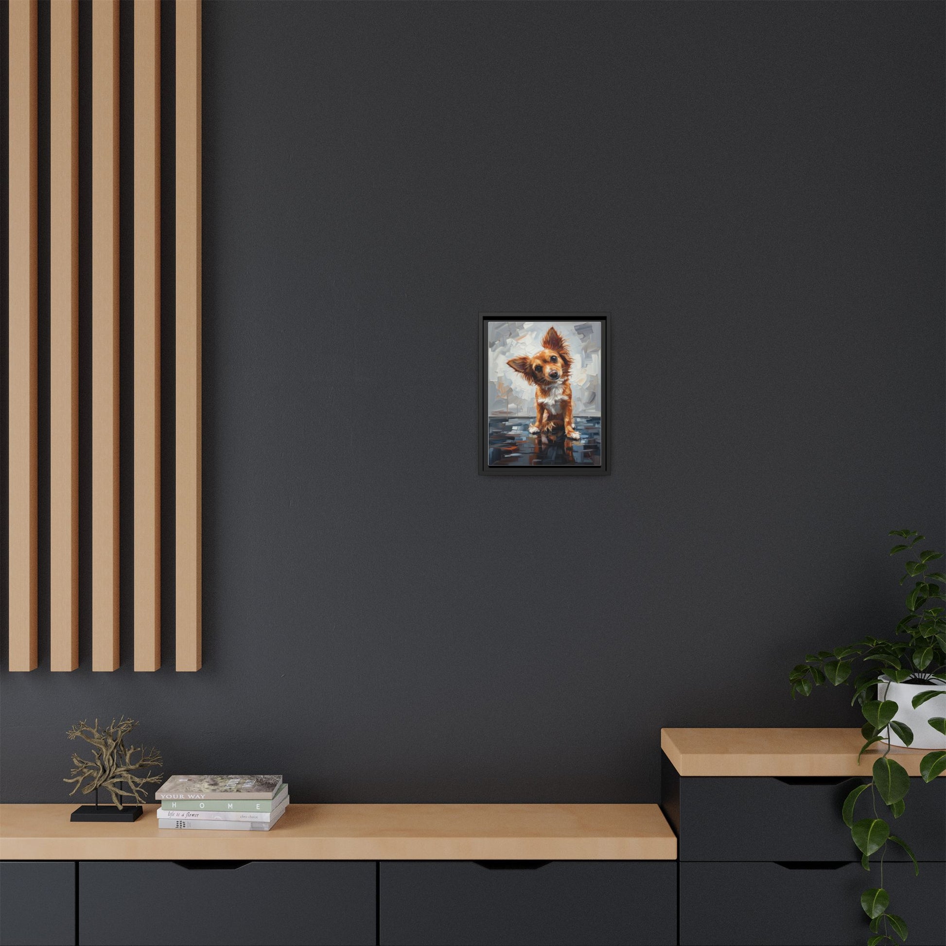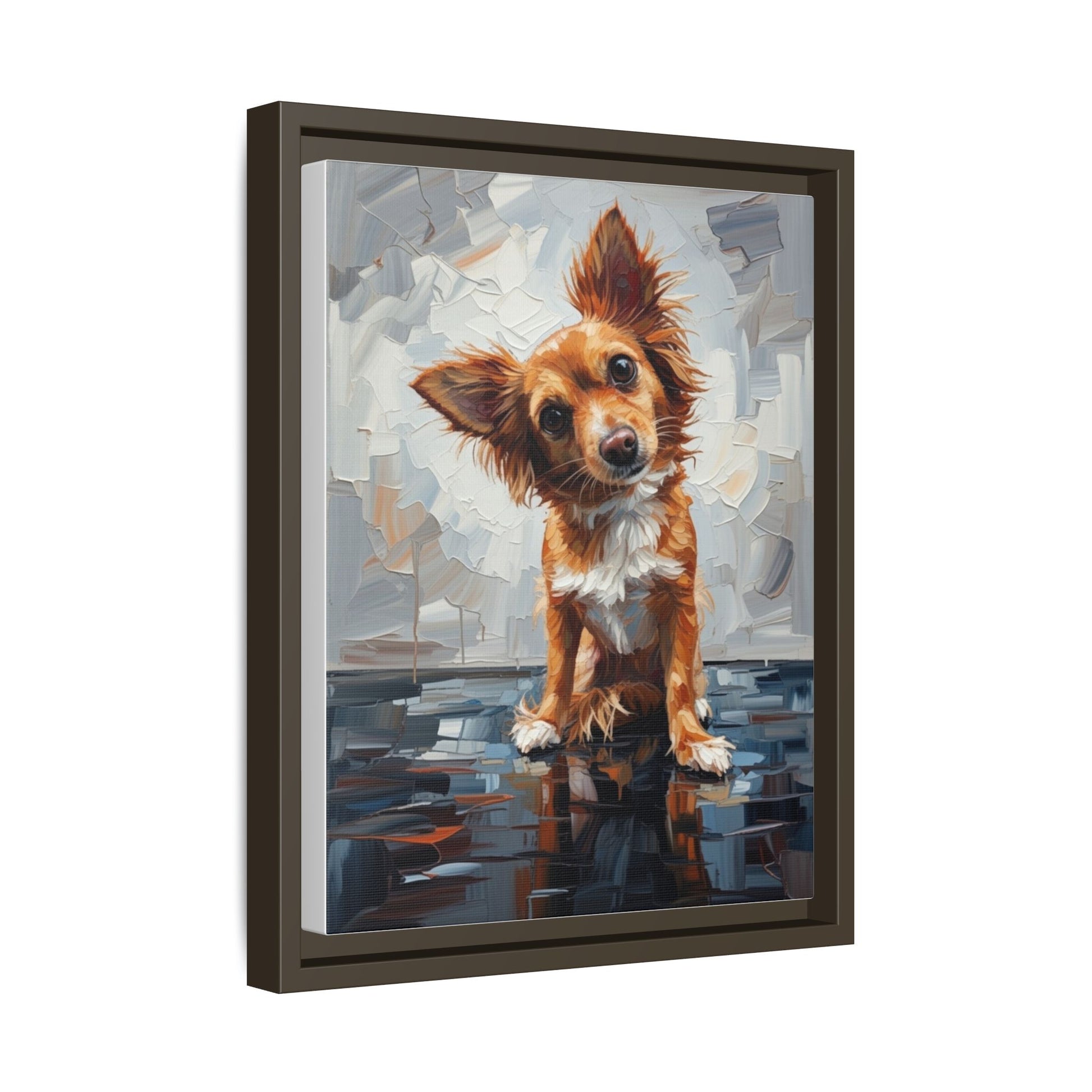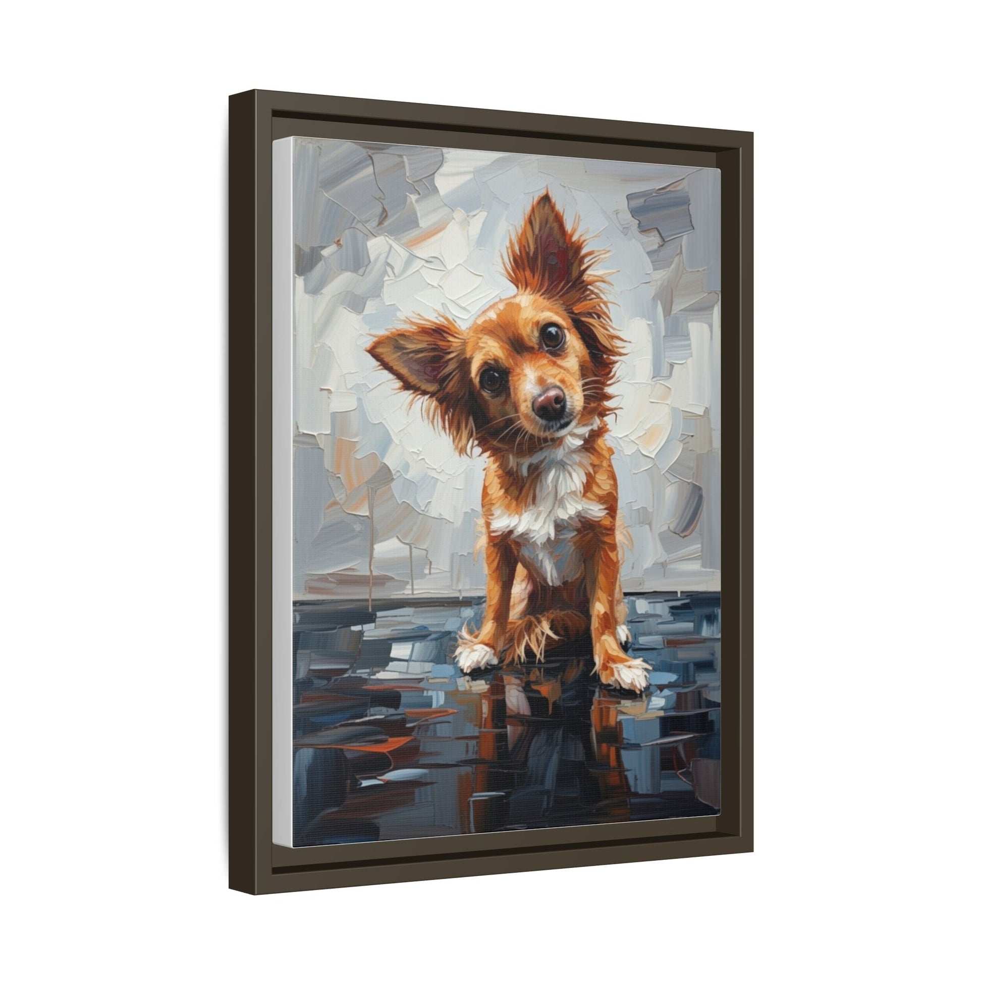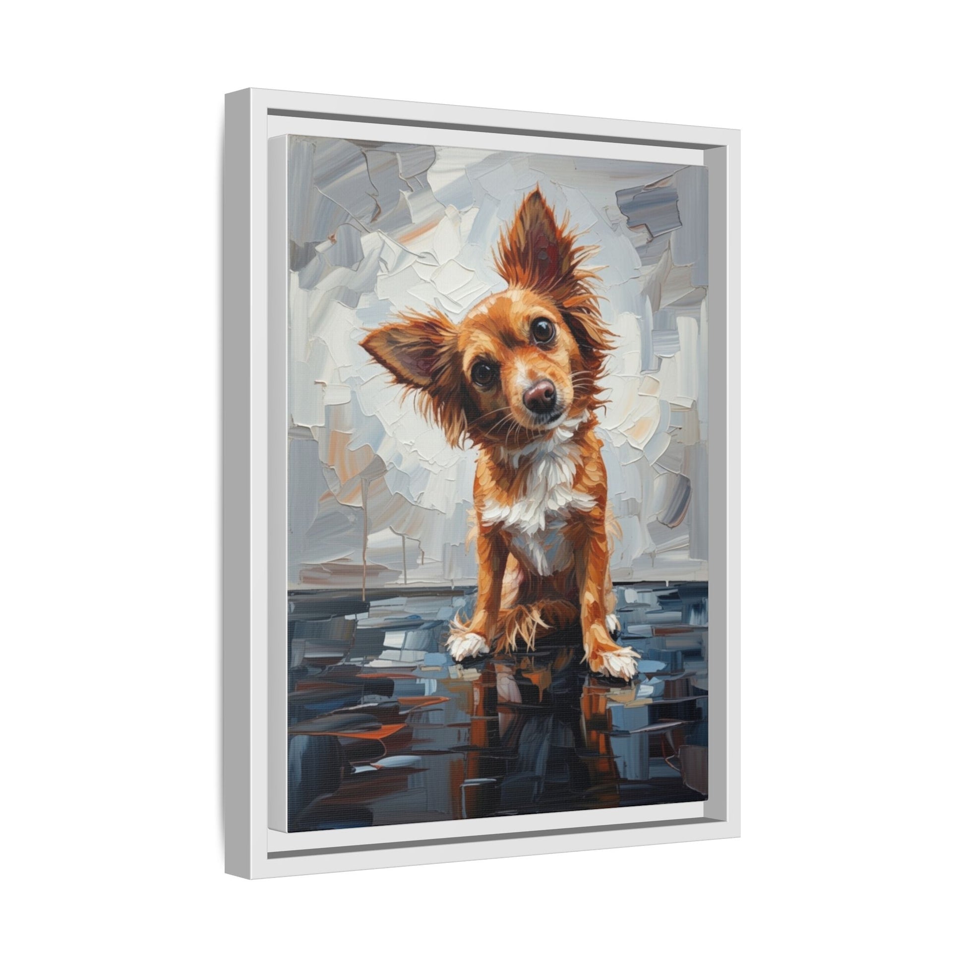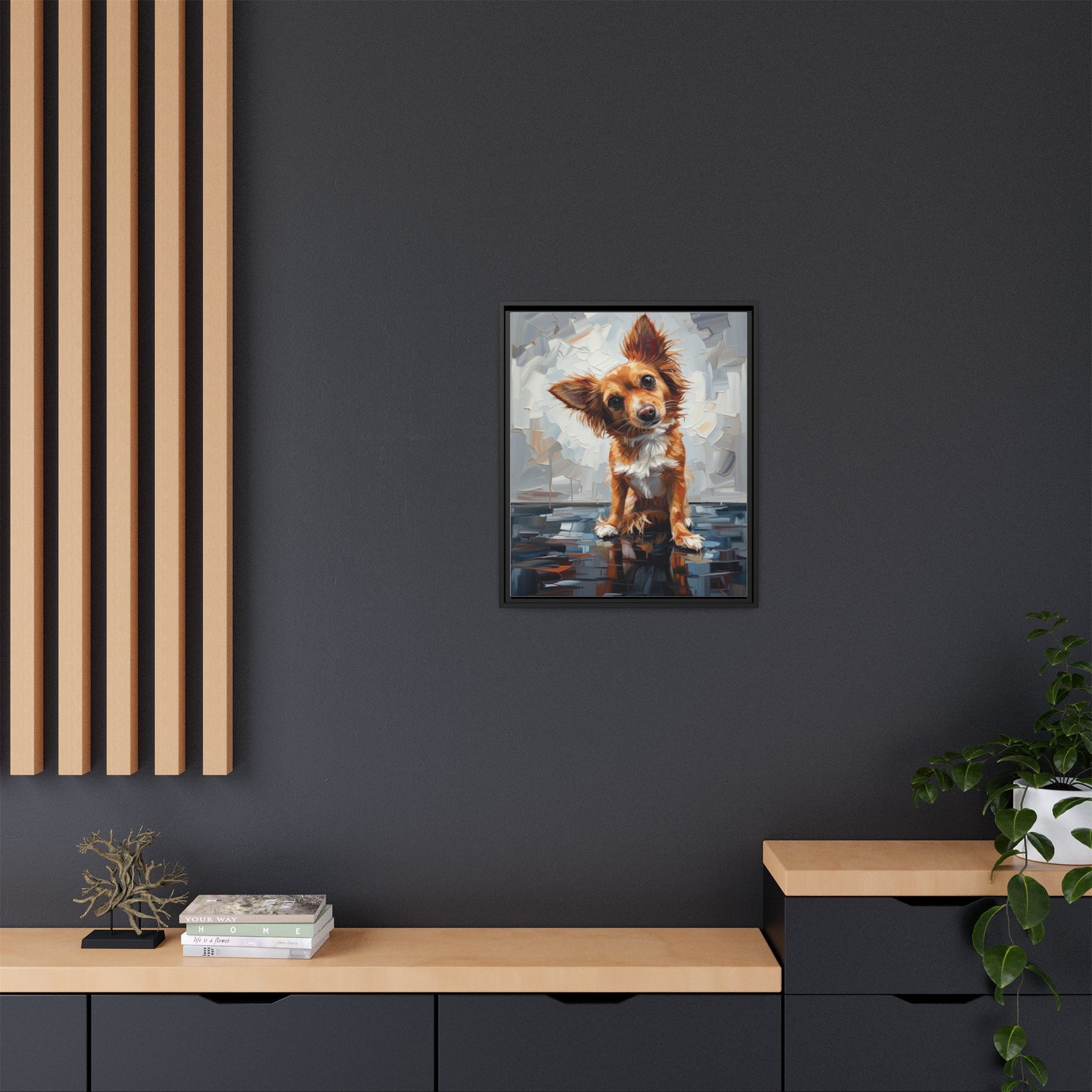 Bring home a warm, lively moment with this framed matte canvas print. The artwork captures a curious little dog with a head-tilt that feels like a private joke—painted with lively brushstrokes and rich, layered color that pop against a soft, abstract background. Hung in a hallway, beside a reading nook, or over a mantel, the portrait adds a touch of playful charm and handcrafted character to everyday life. The subtle matte finish keeps reflections low and the textured surface gives depth to each brushstroke, so the image reads like an original painting from across the room.