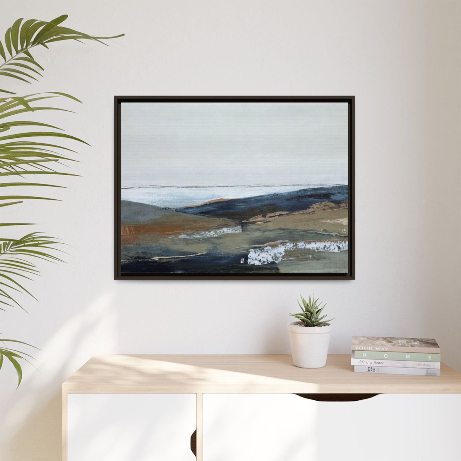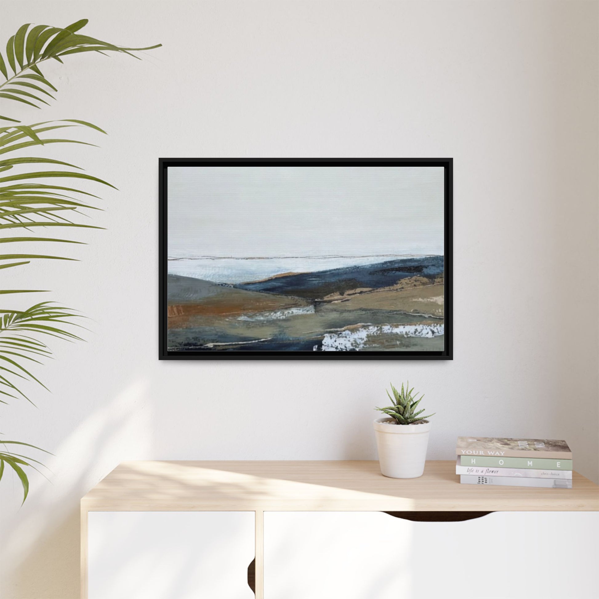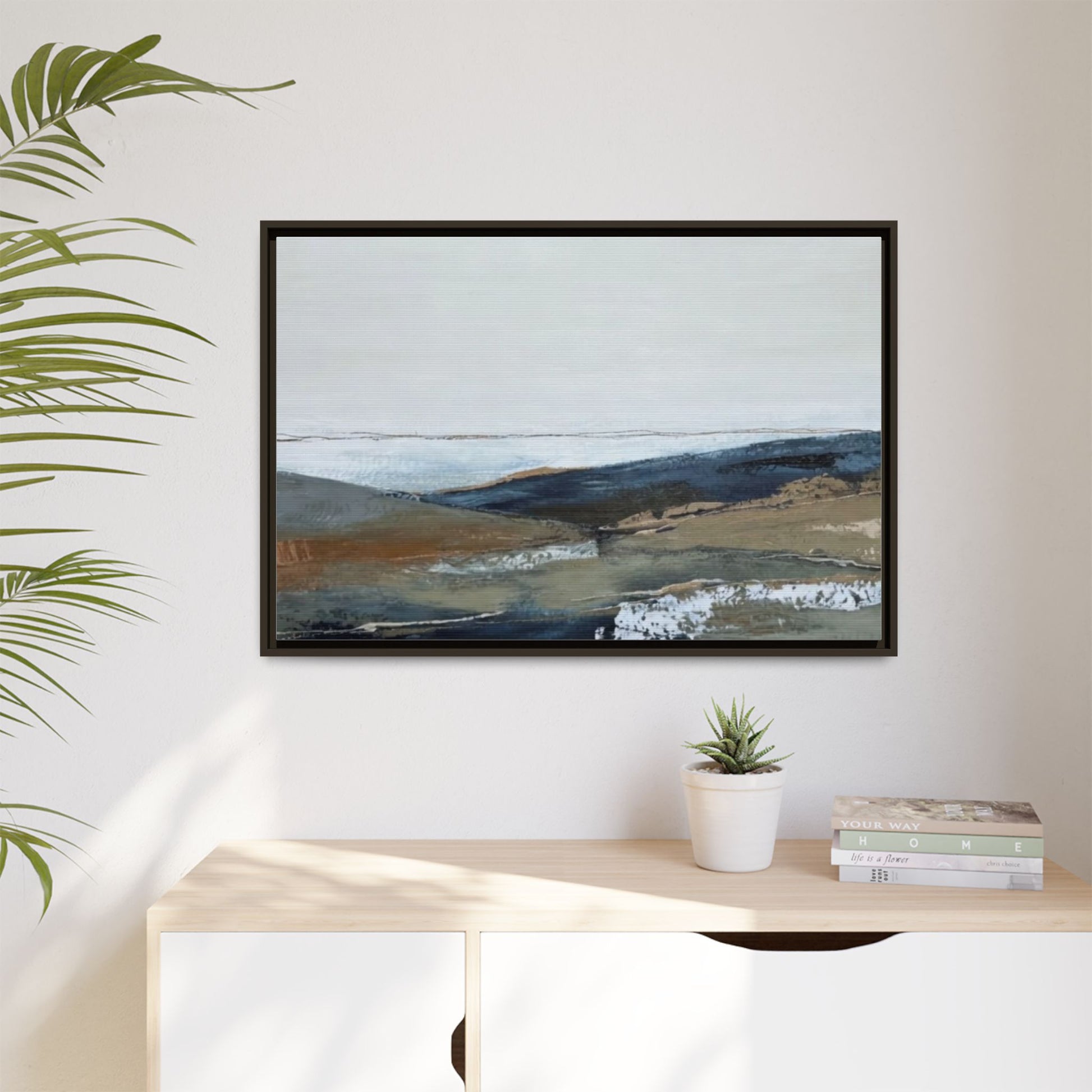 Framed Matte Canvas Wall Art — Serene Coastal Abstract Landscape