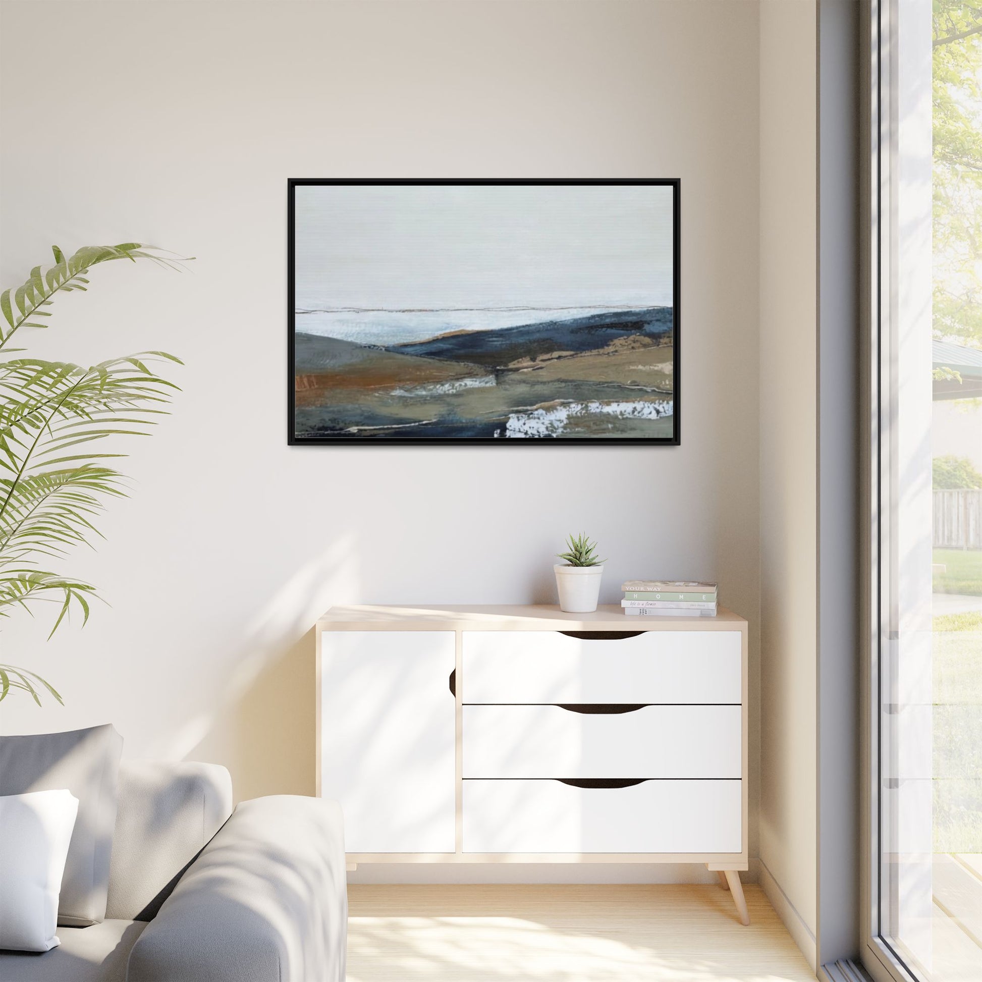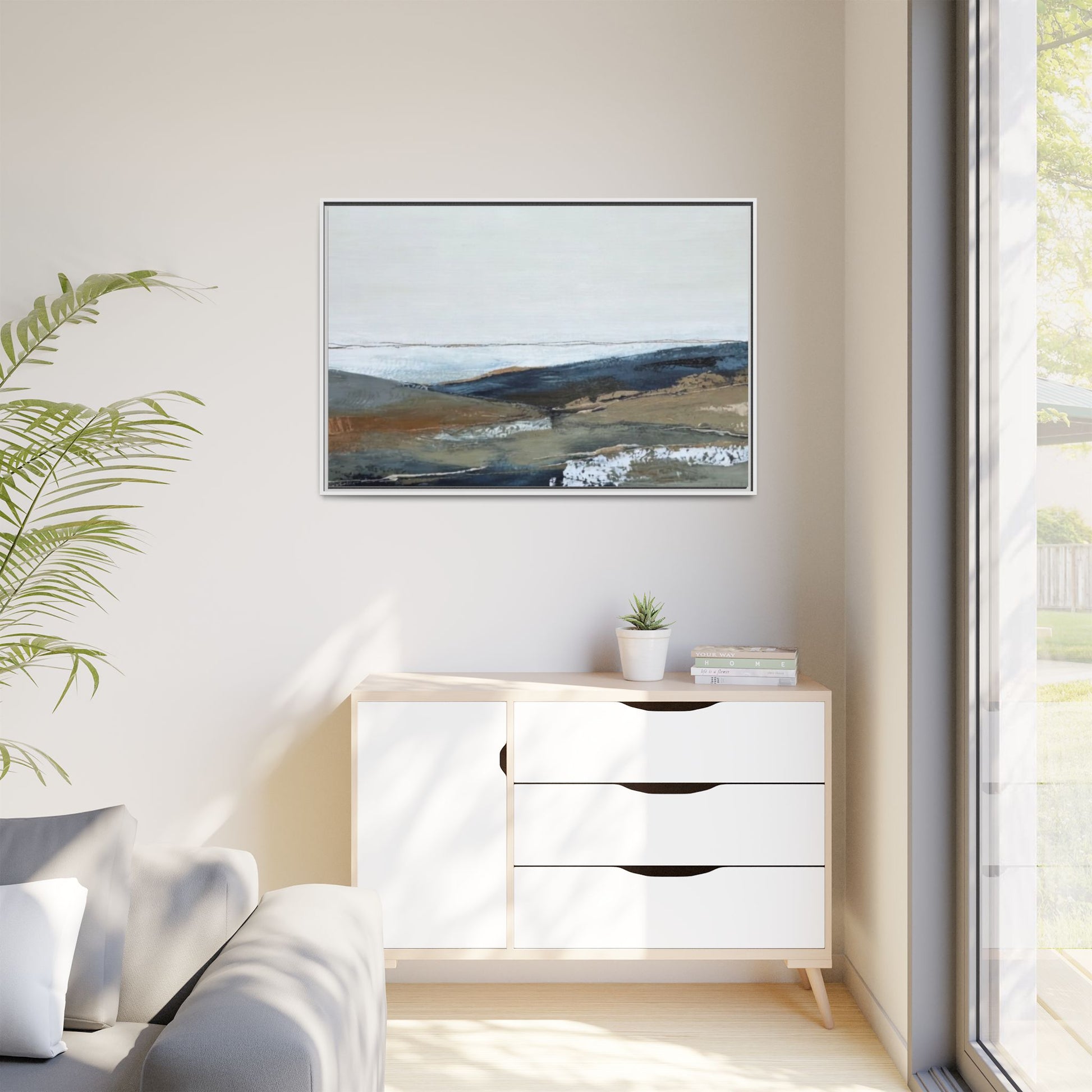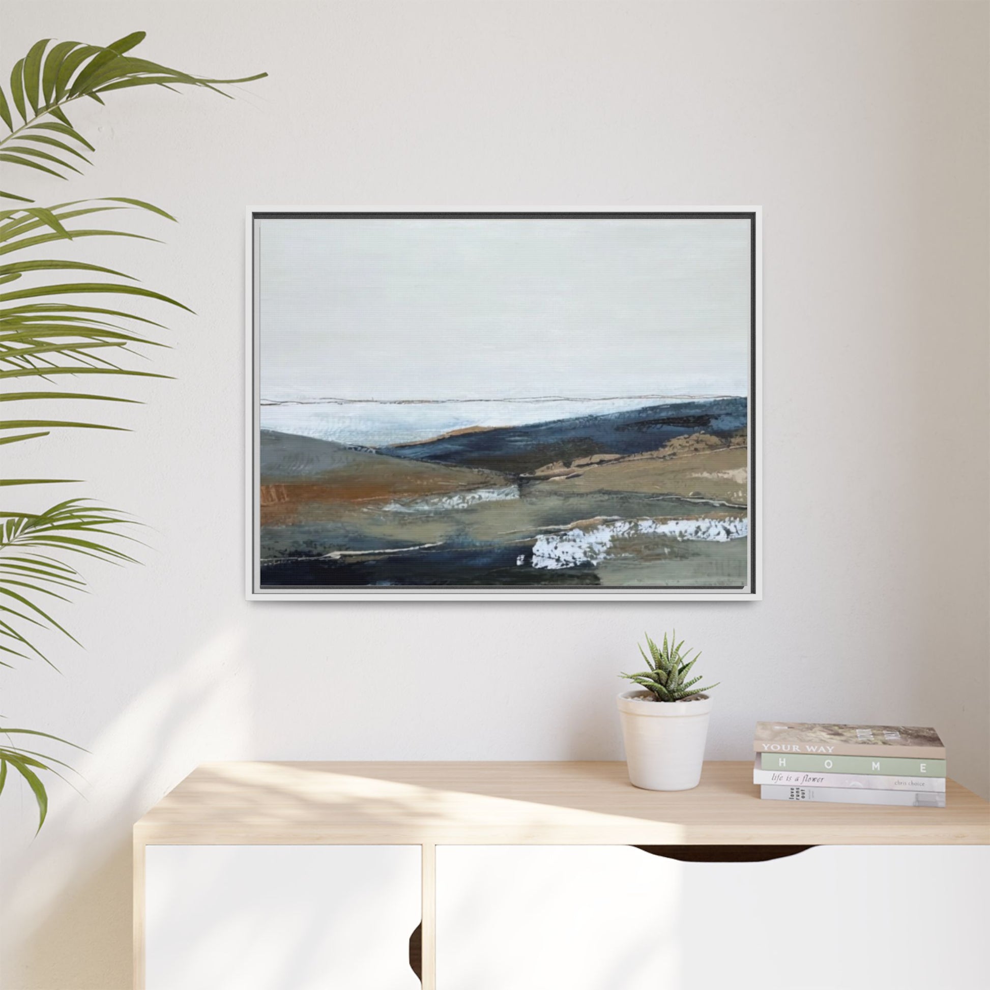 Framed Matte Canvas Wall Art — Serene Coastal Abstract Landscape