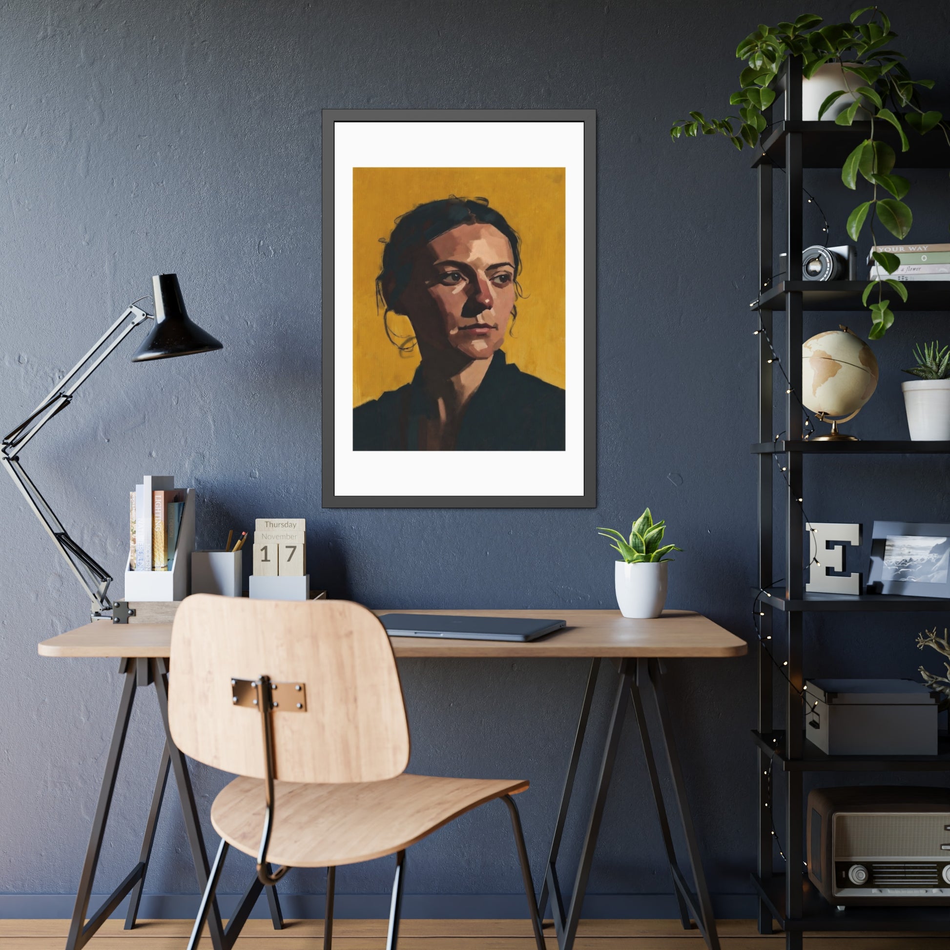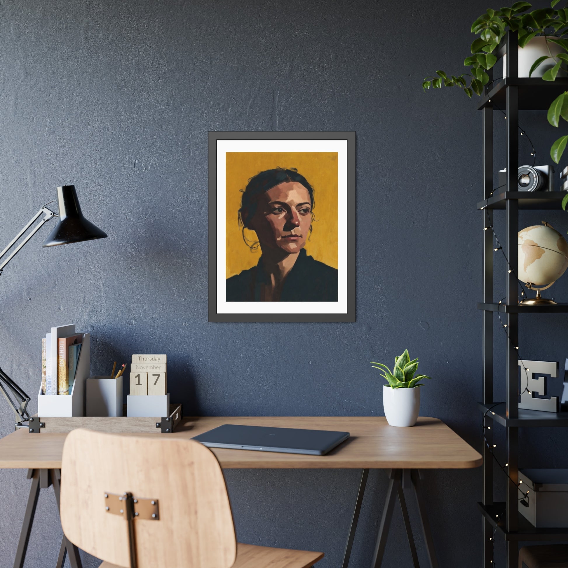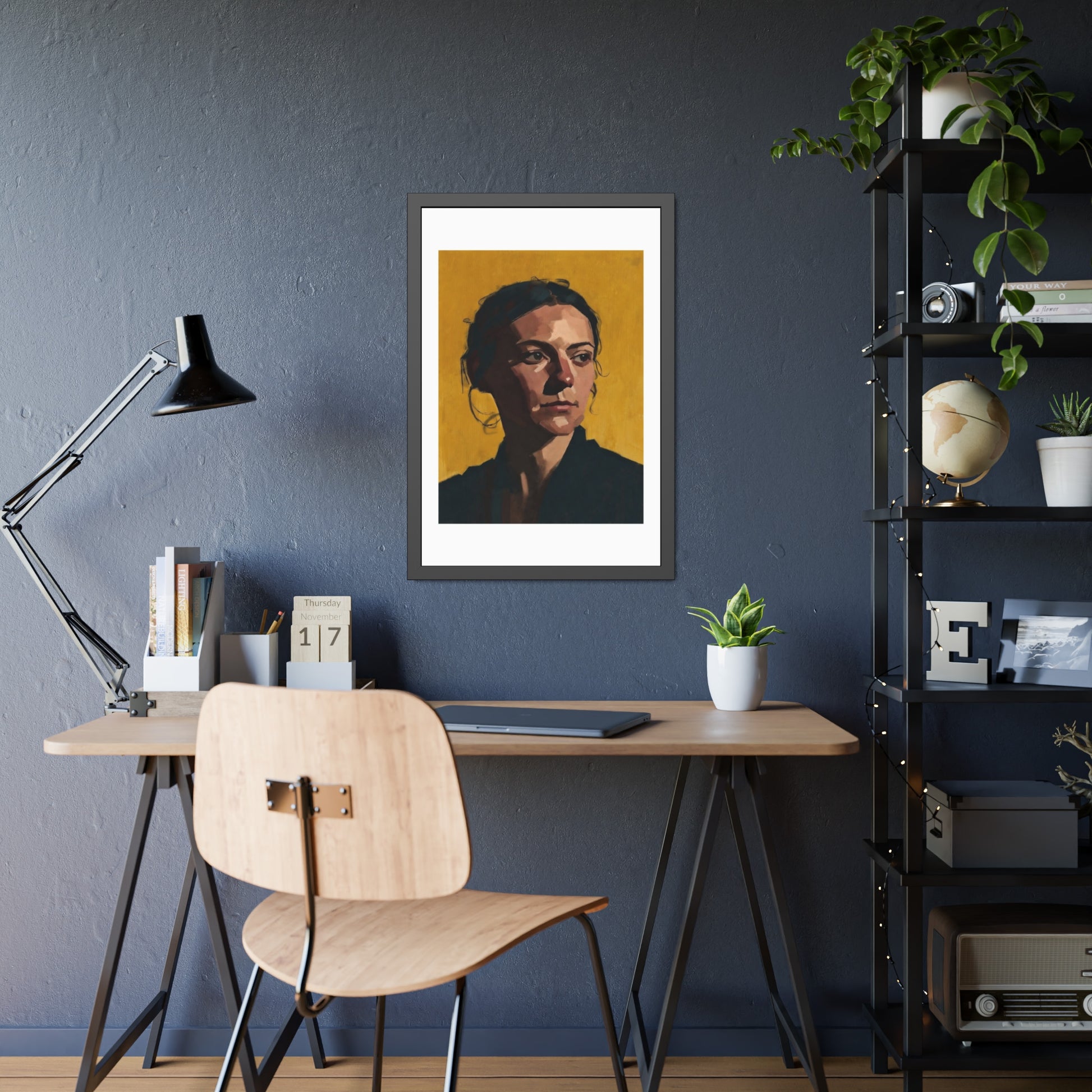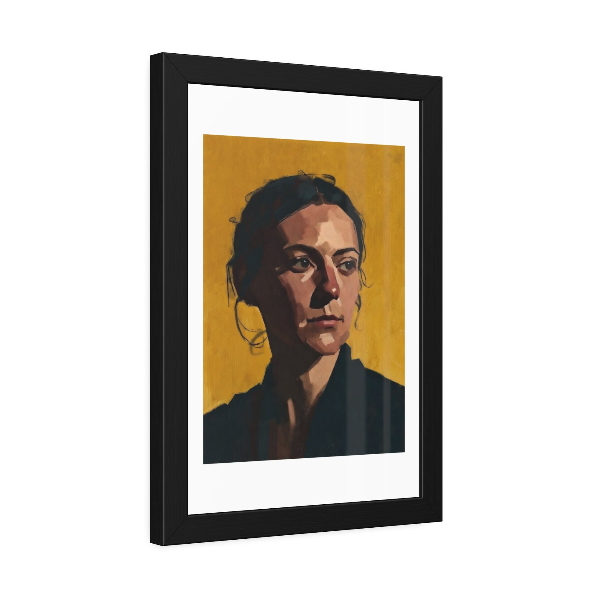 Framed Portrait Poster — Modern Painted Portrait on Mustard Background