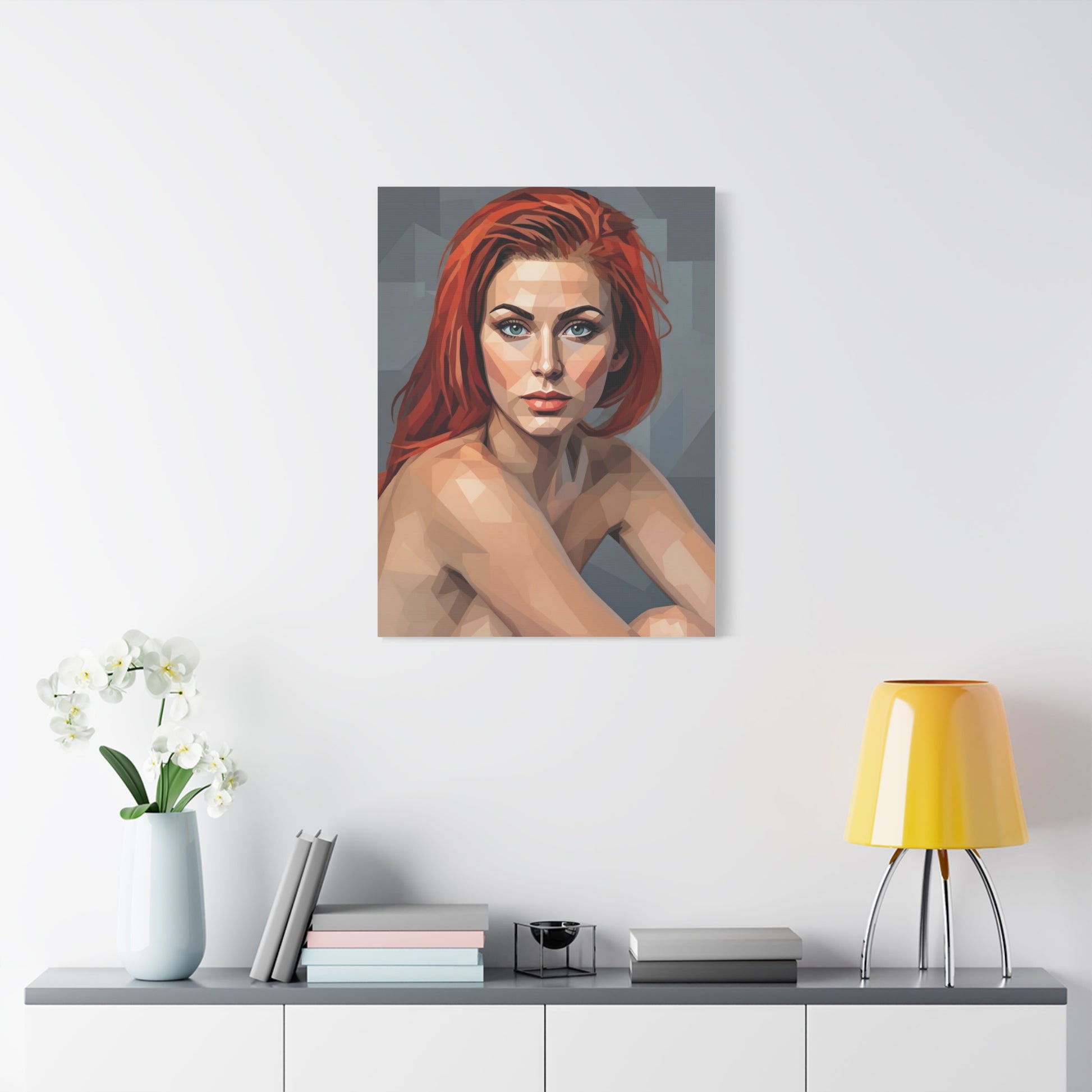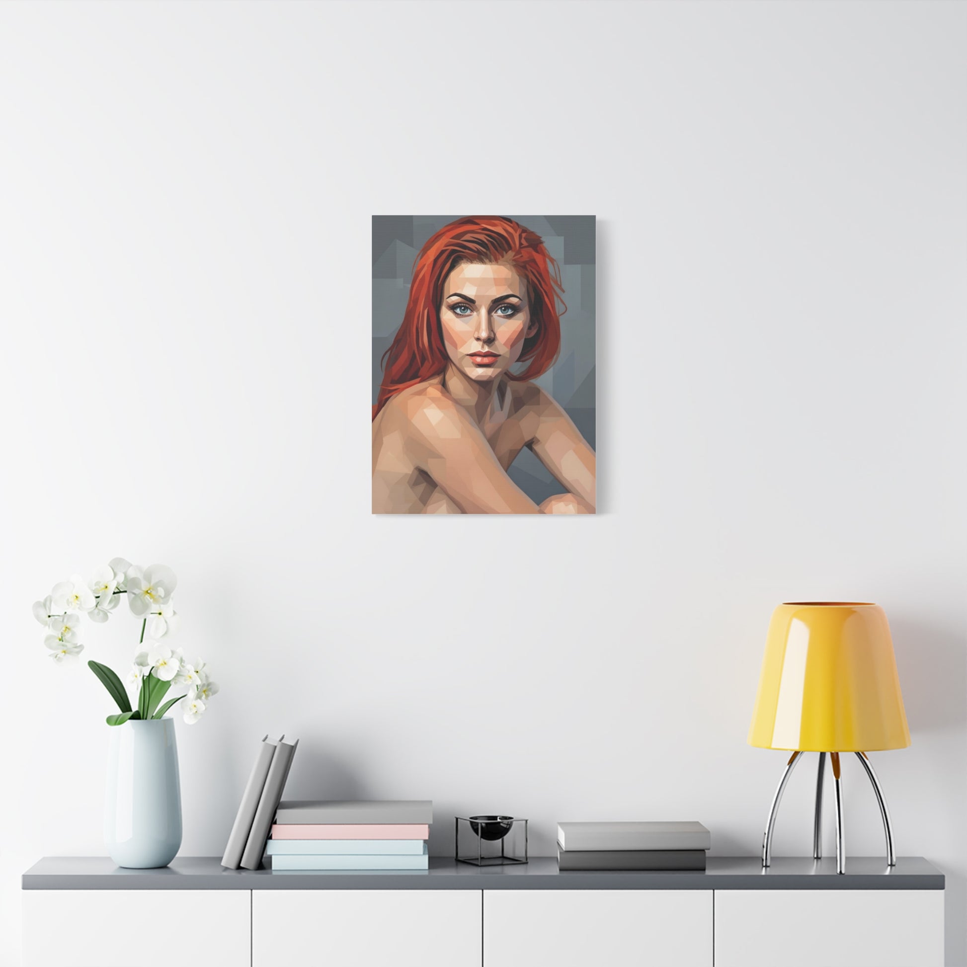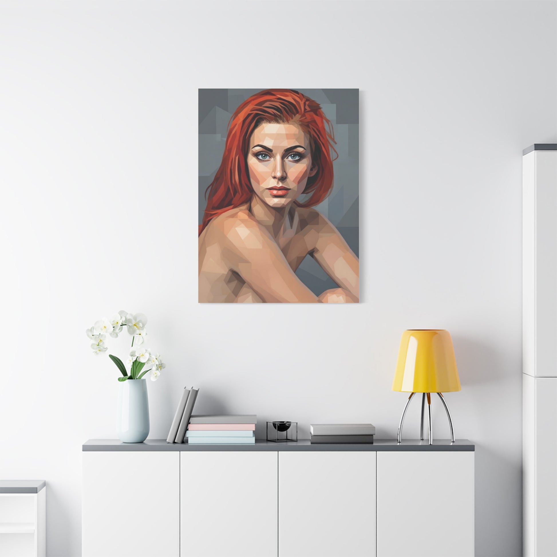 Geometric Redhead Portrait Matte Canvas Print — Modern Pop Art Wall Decor