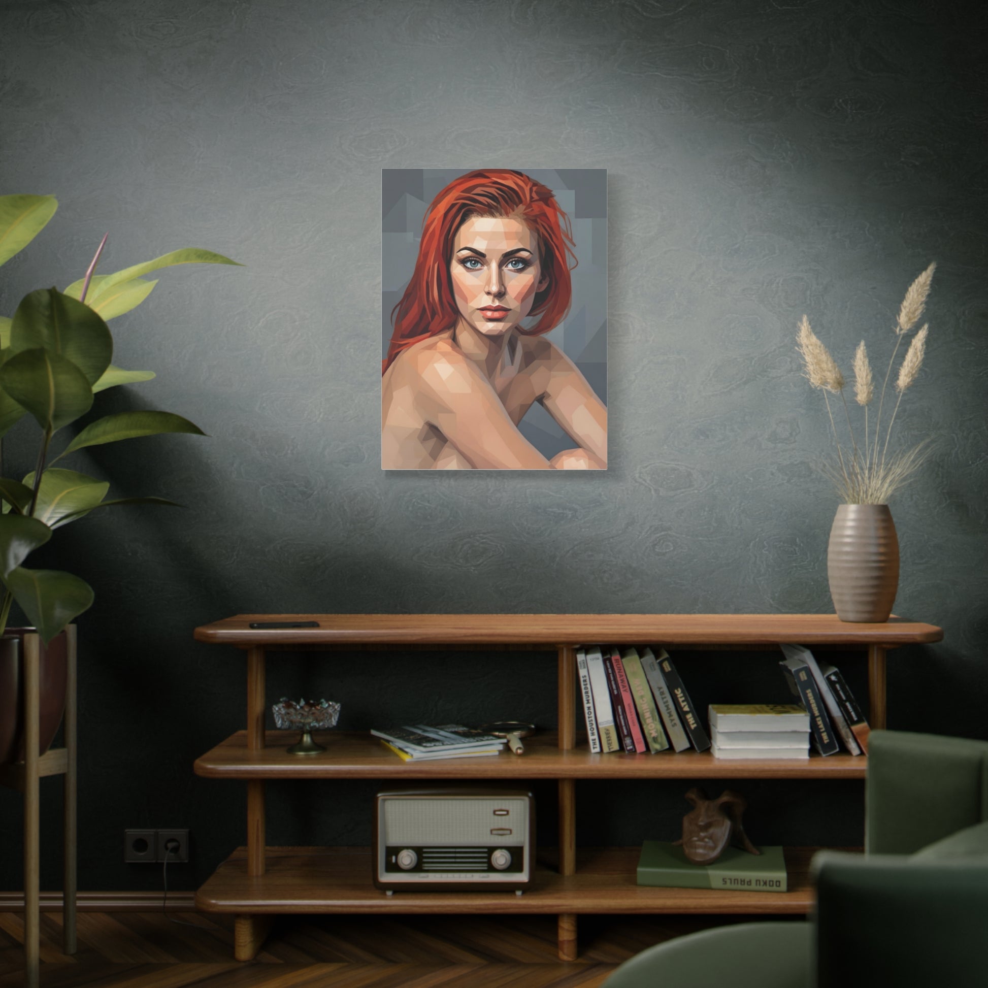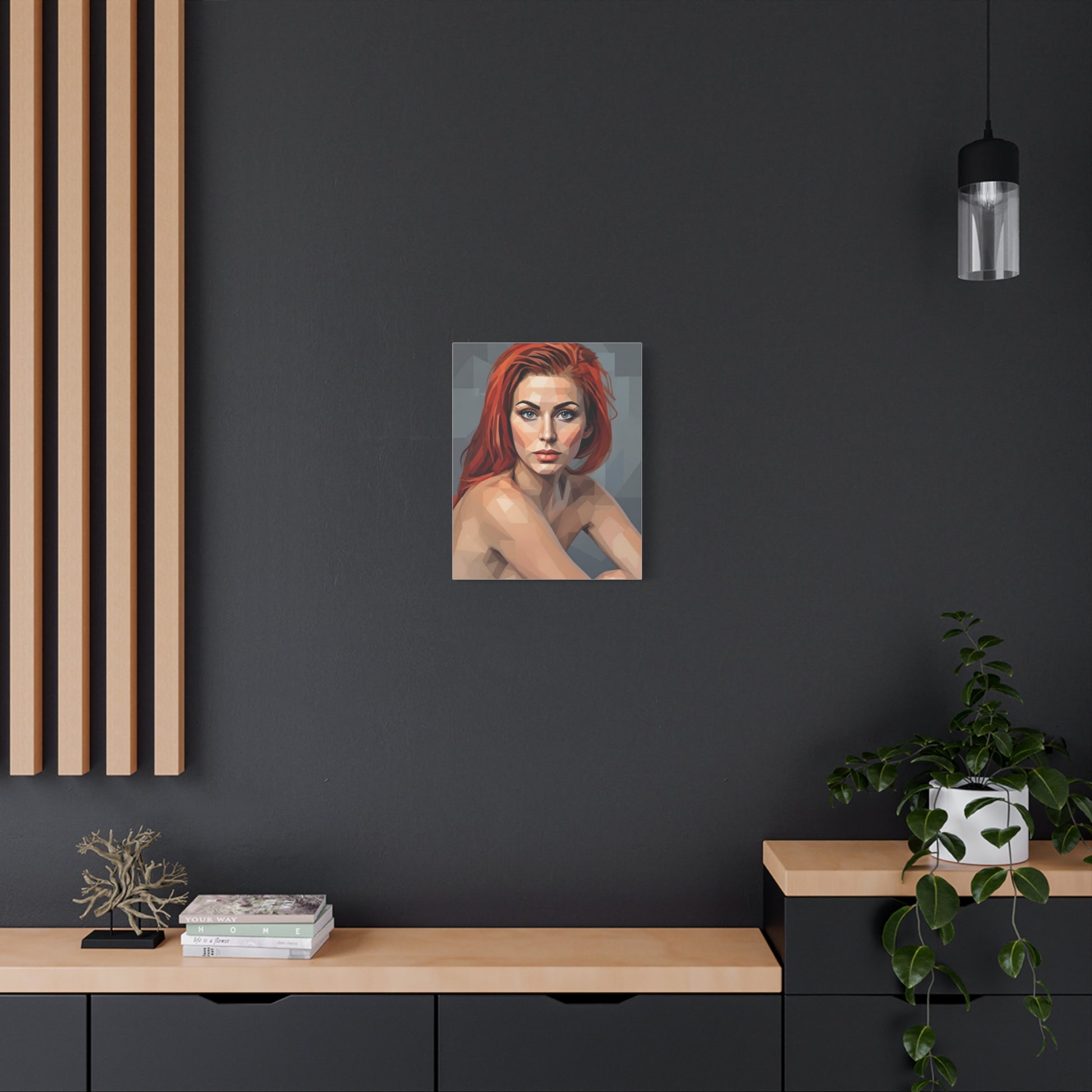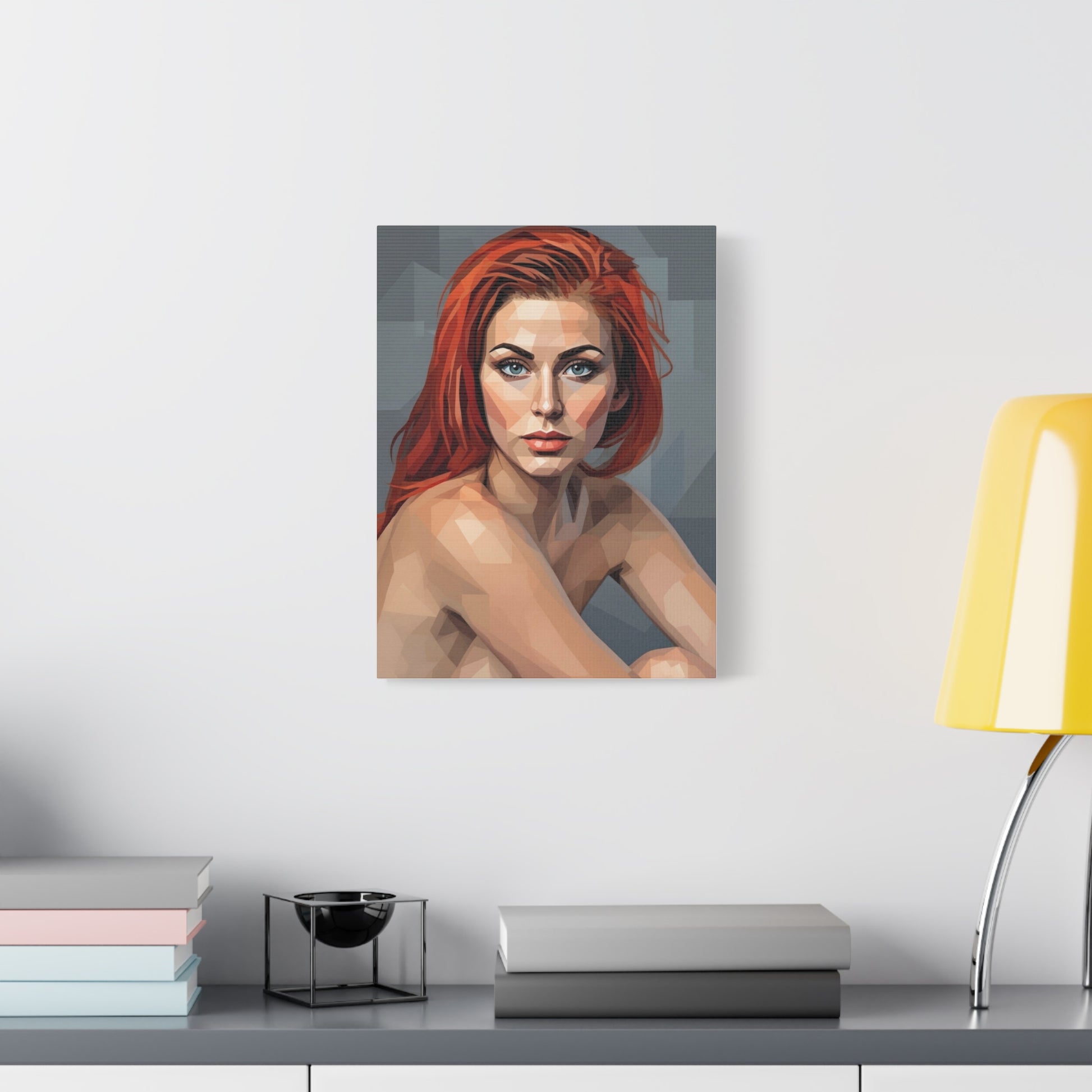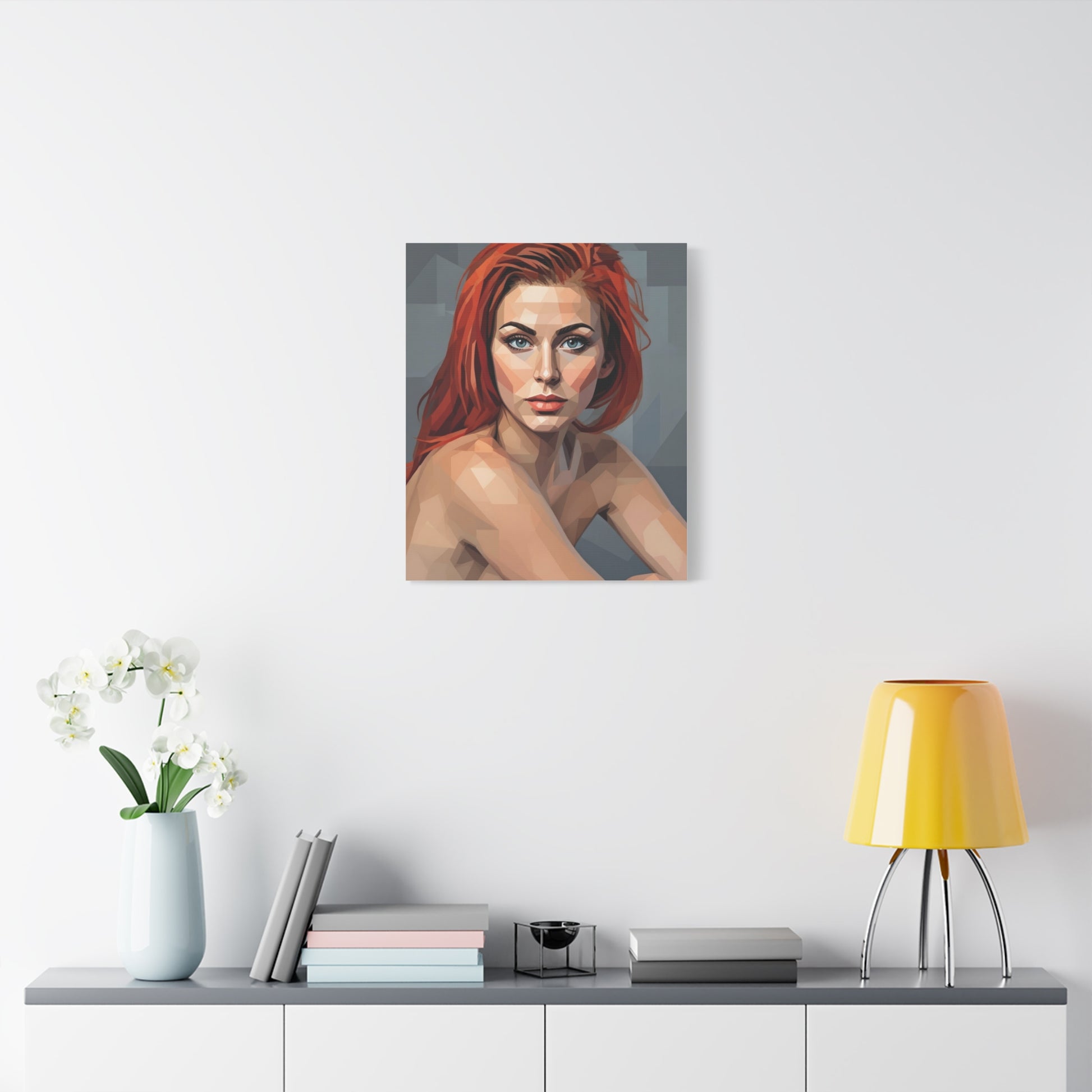 Geometric Redhead Portrait Matte Canvas Print — Modern Pop Art Wall Decor