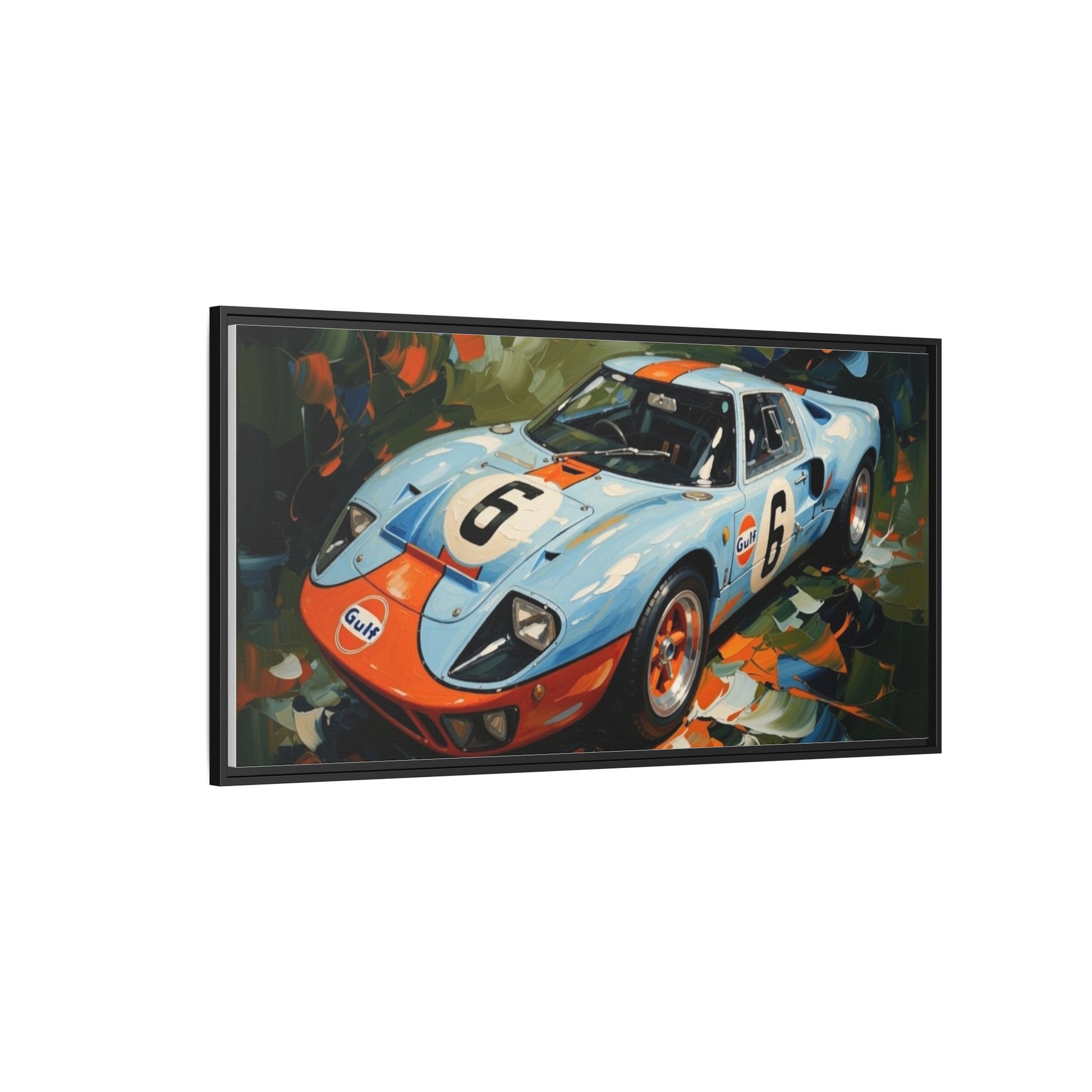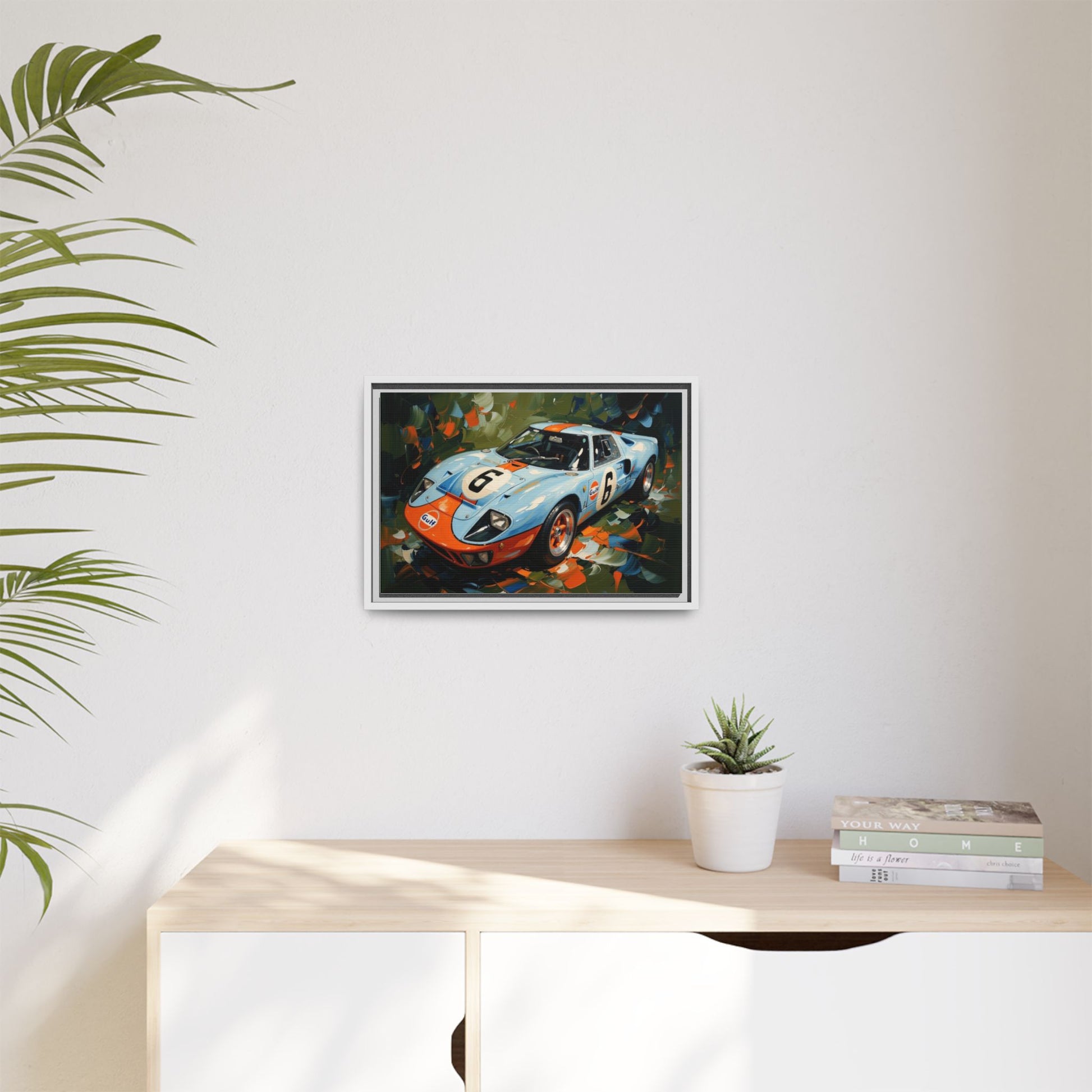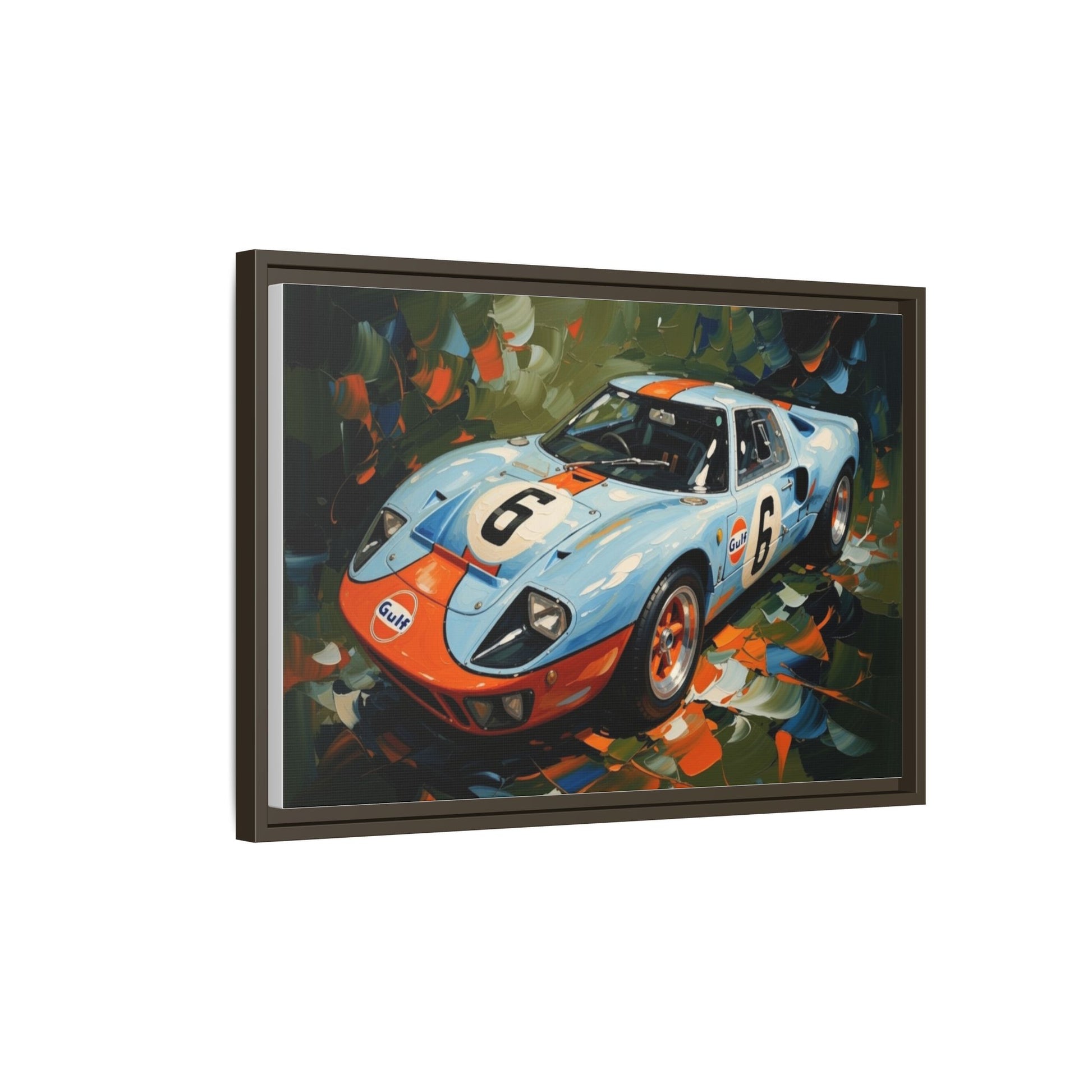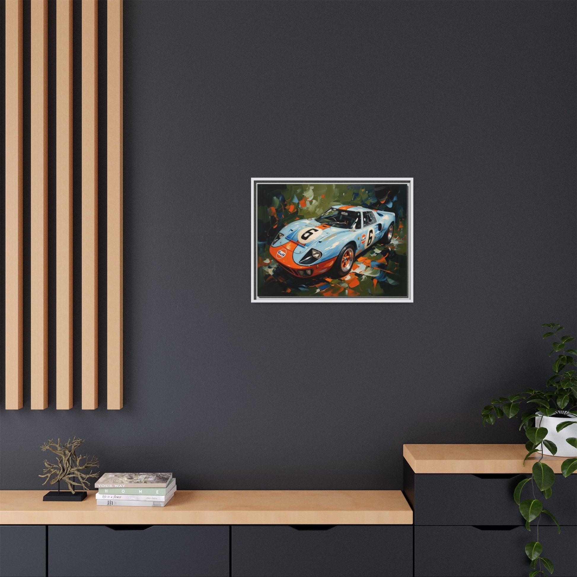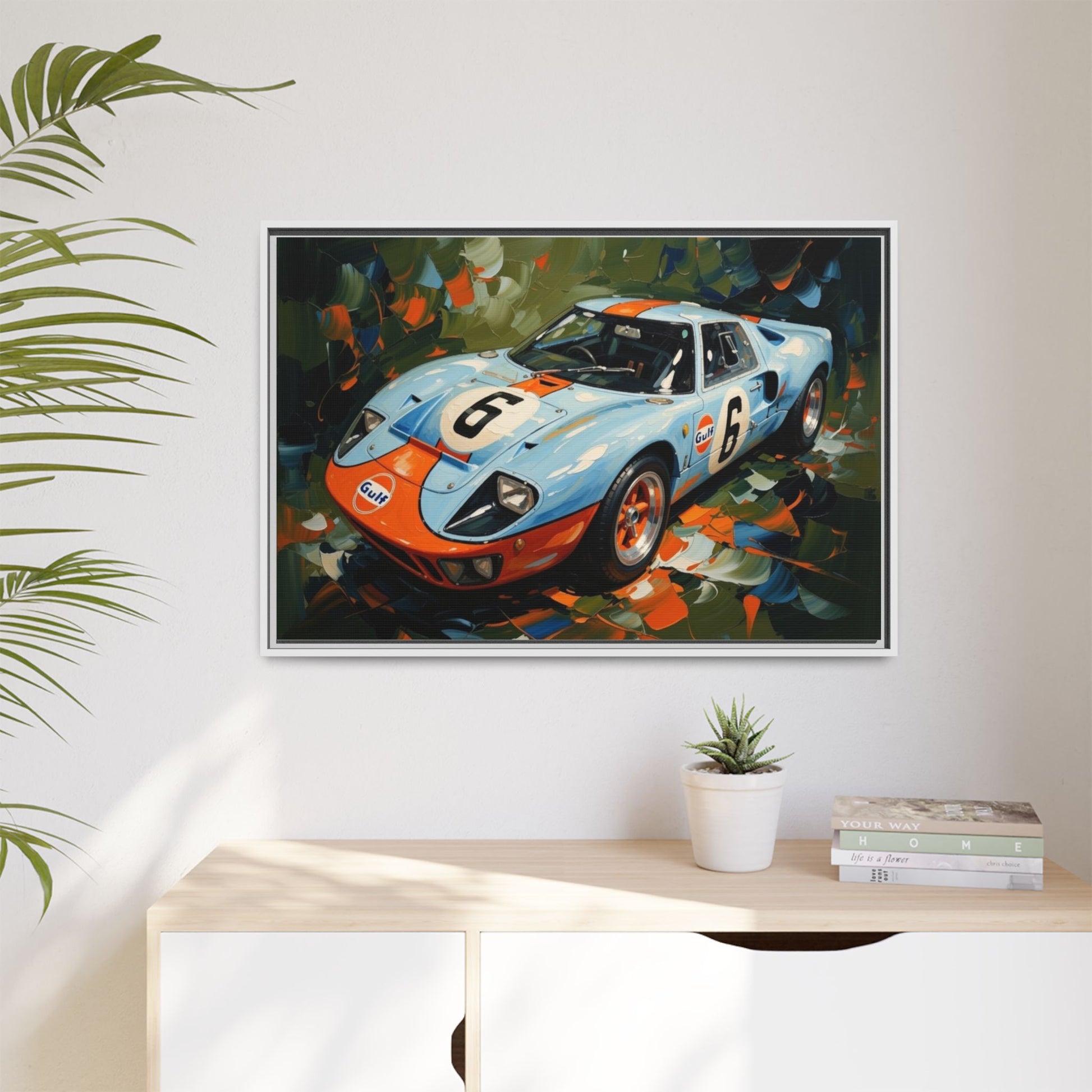 Gulf Racing GT40 Matte Framed Canvas — Vintage Sports Car Wall Art