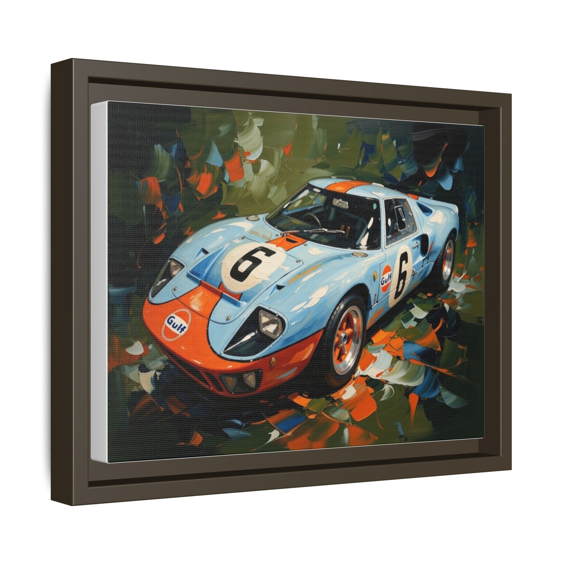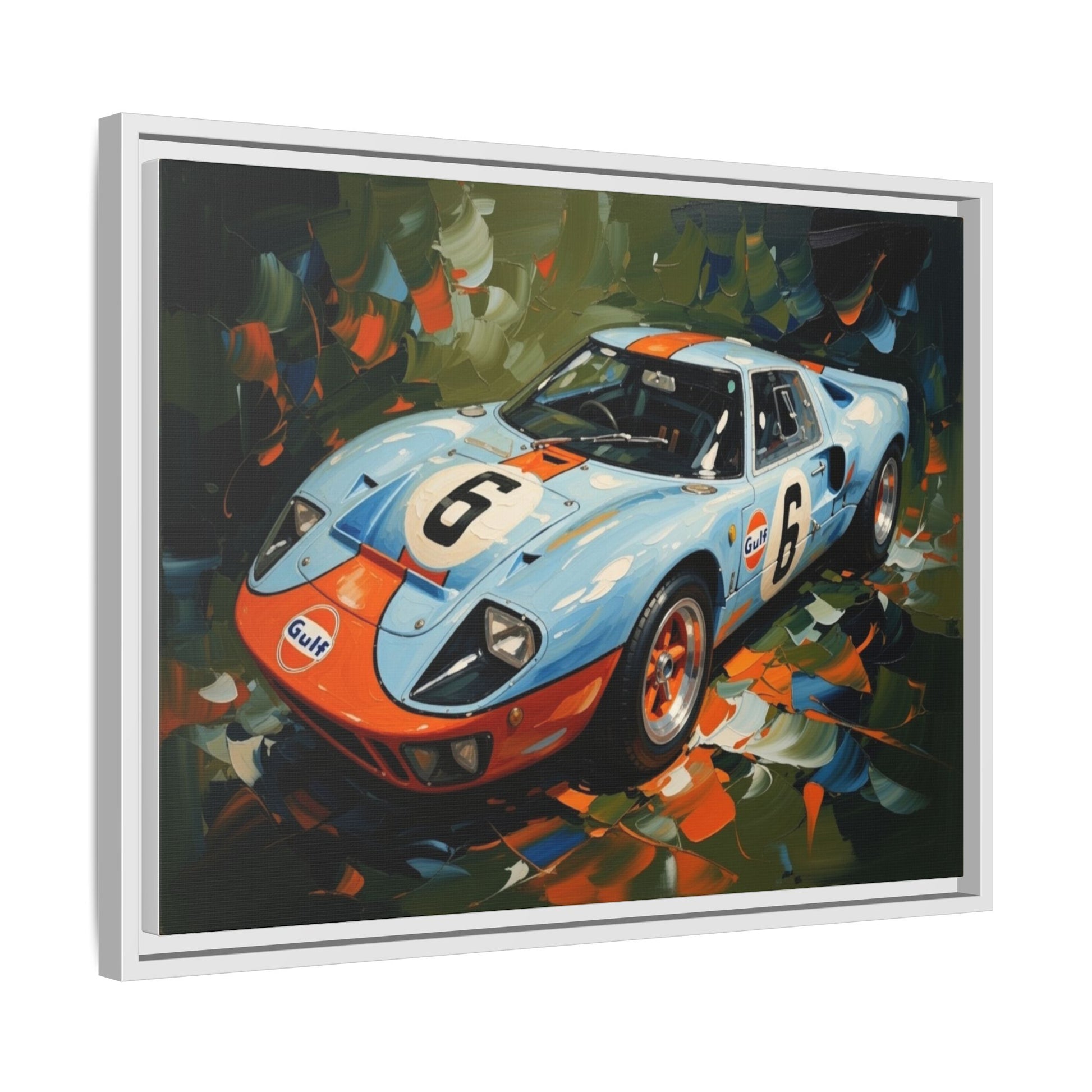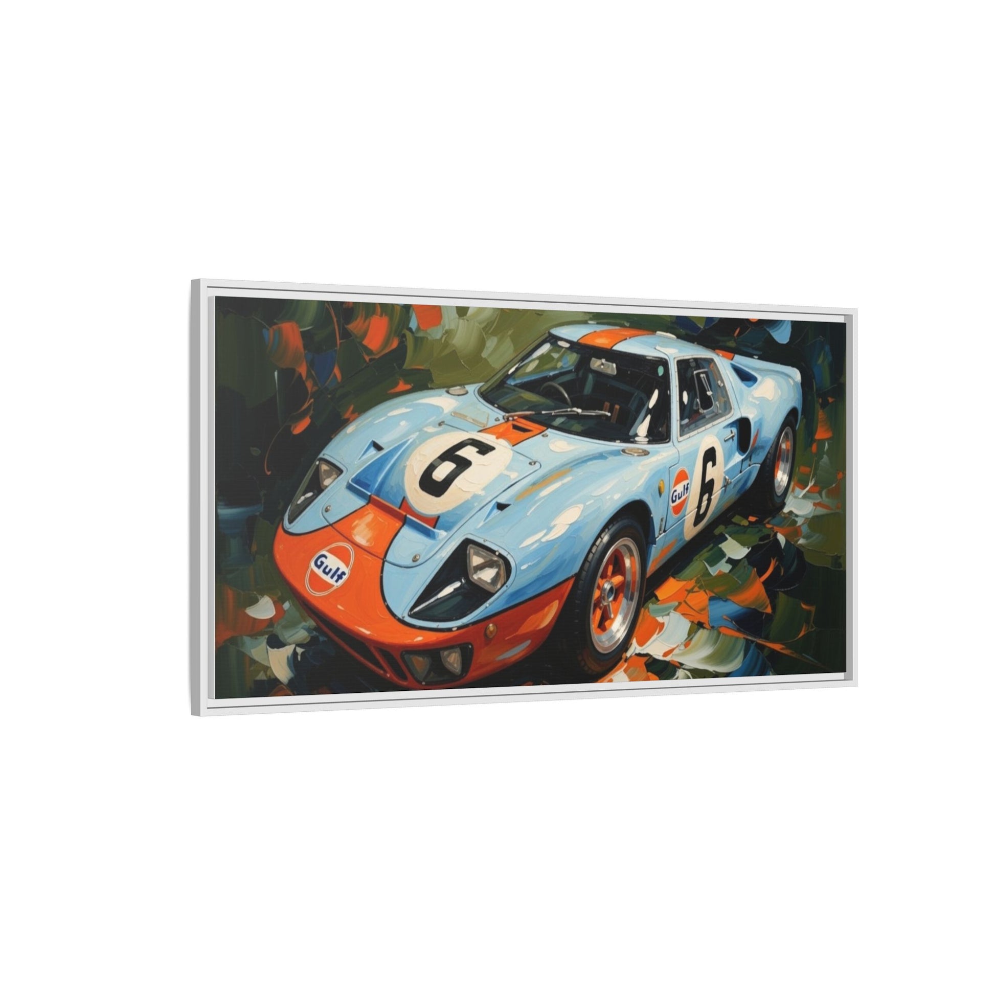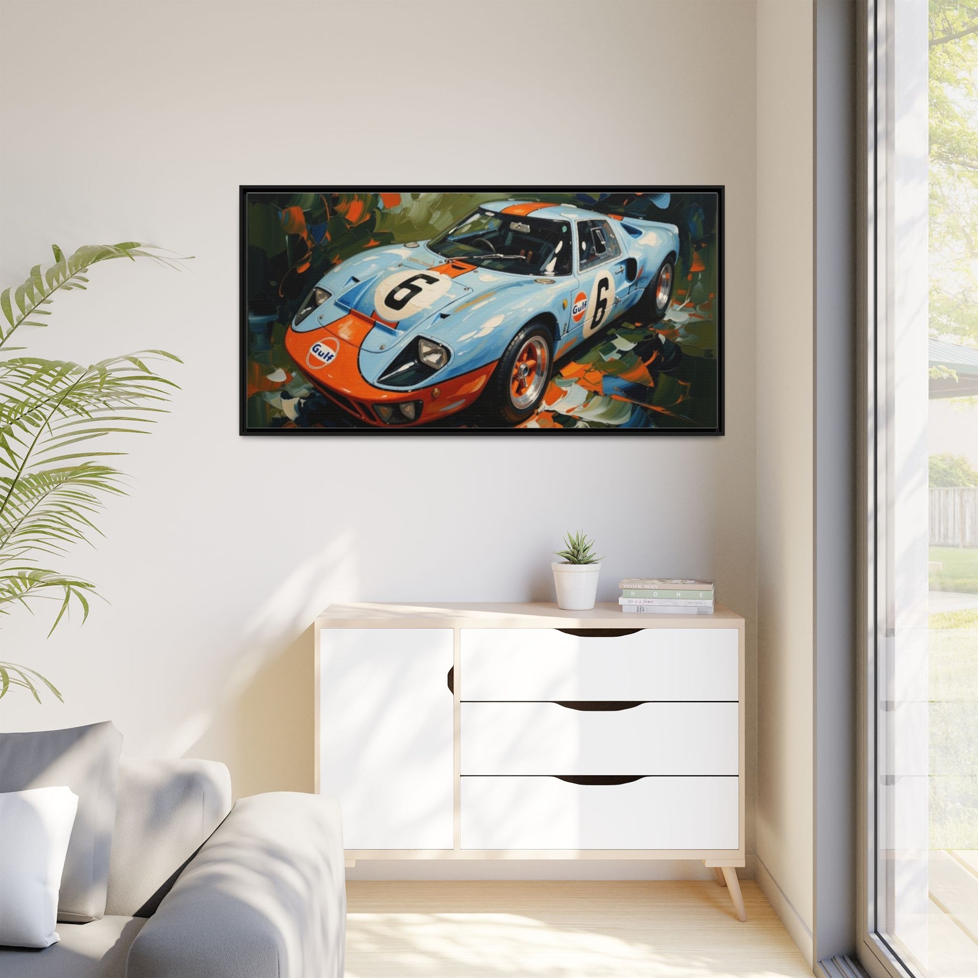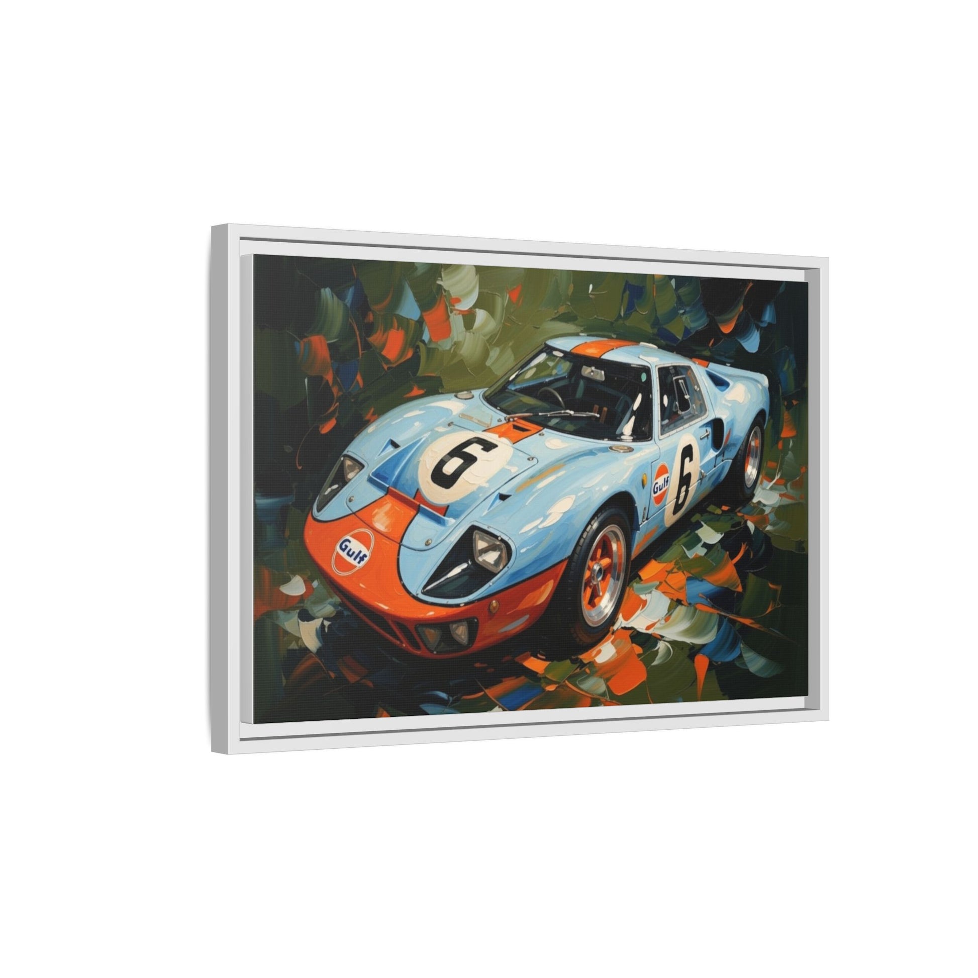 Gulf Racing GT40 Matte Framed Canvas — Vintage Sports Car Wall Art