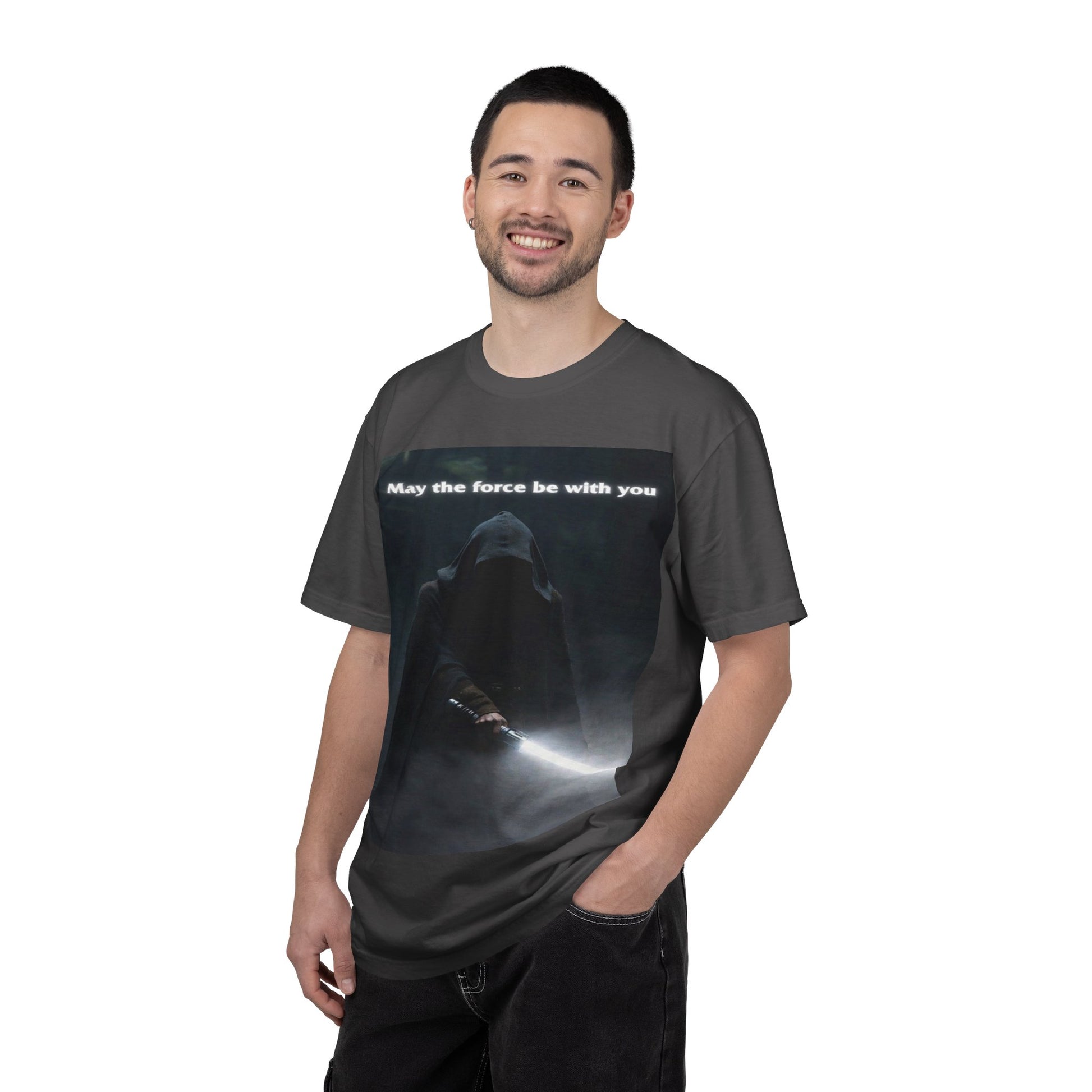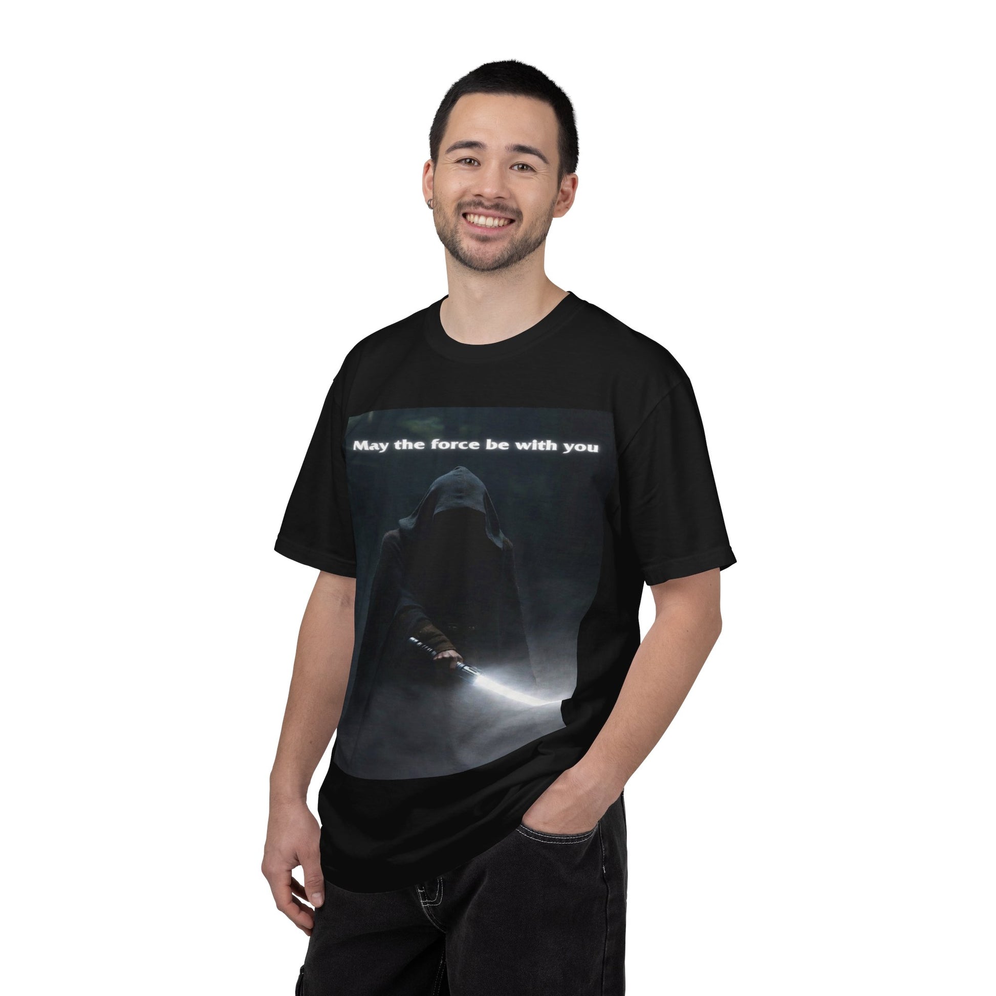 May the Force Be With You T-Shirt — Dark Hooded Lightsaber Graphic Tee