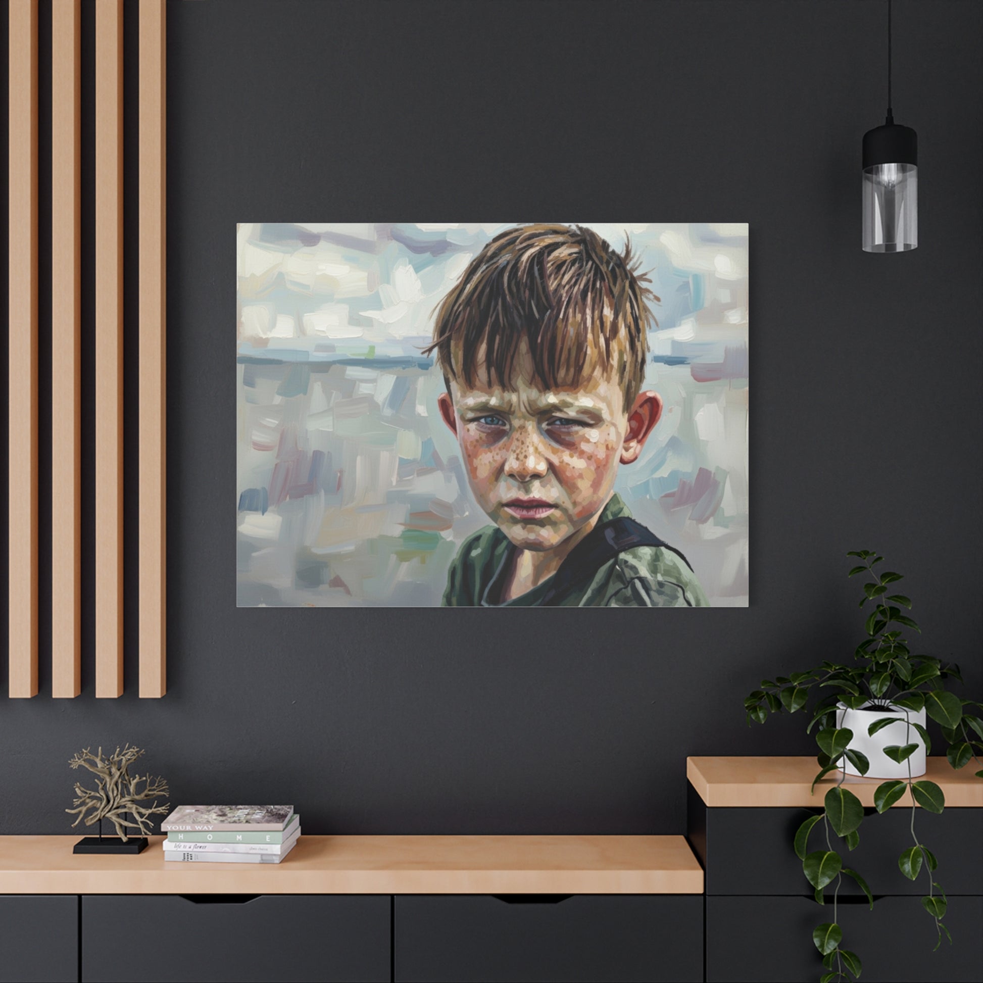 Melancholic Boy Portrait Canvas Print — Matte Stretched Wall Art