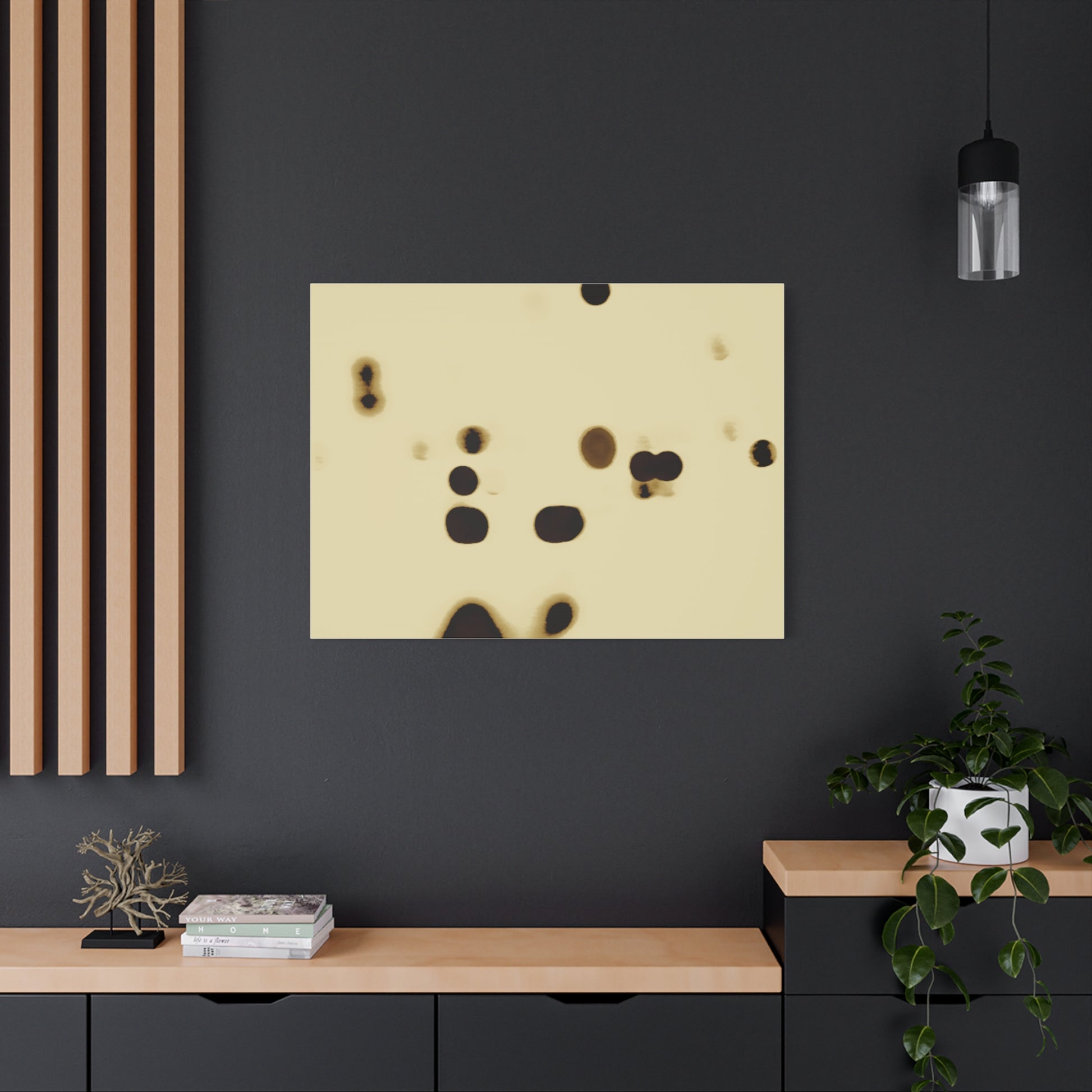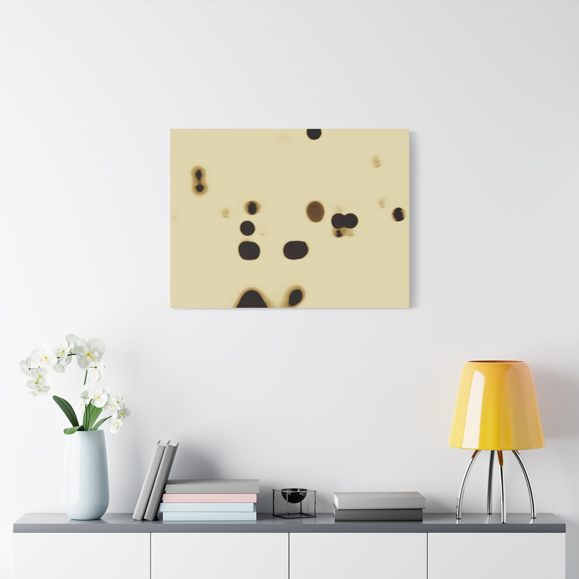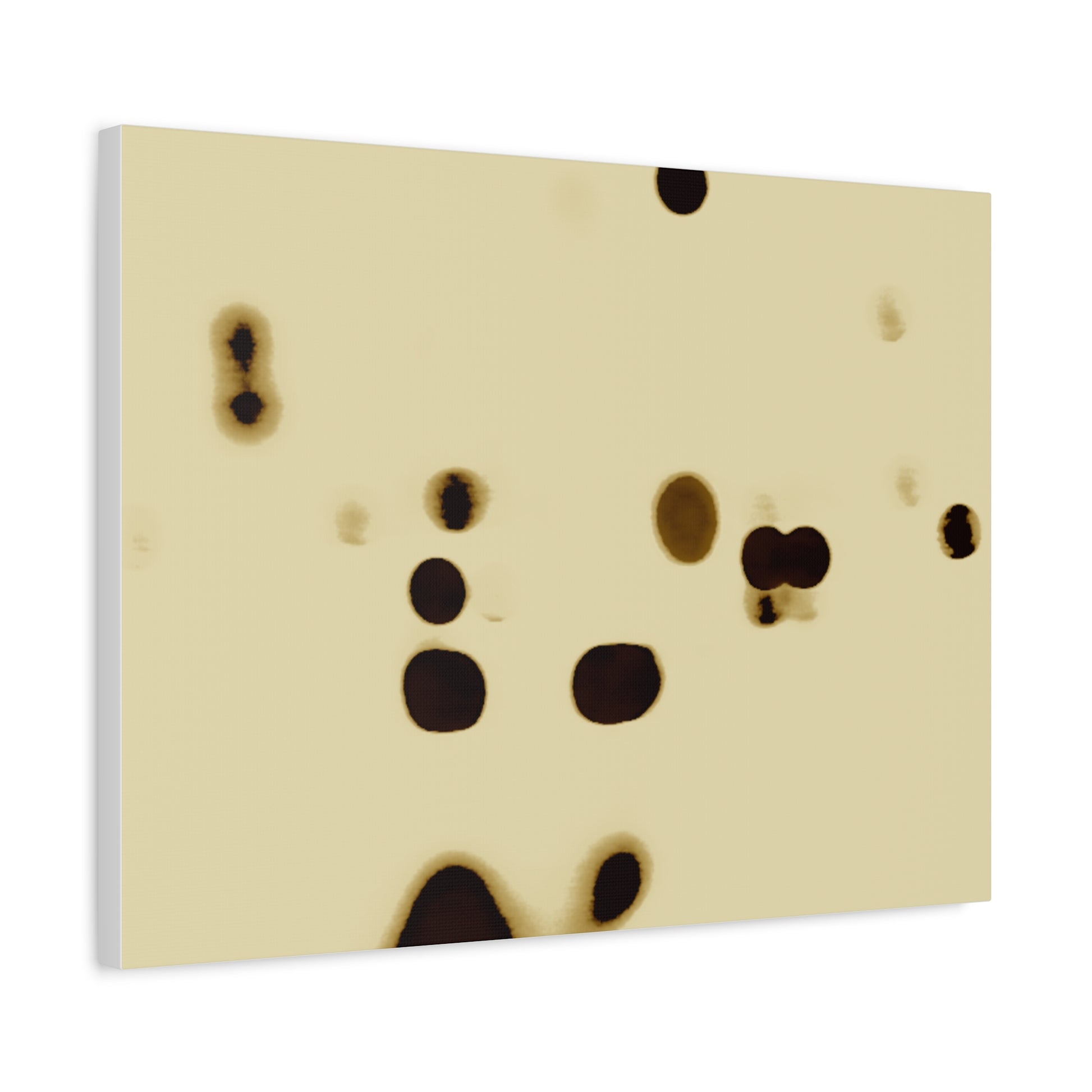 A minimalist stretched matte canvas that brings quiet, contemplative energy to a room. Soft cream tones are interrupted by organic, ink-like dots and blots that feel both accidental and deliberate — like fragments of a memory or the residue of a slow, meditative process. The lightly textured cotton-poly canvas sits on a slim 1.25" pine stretcher and is printed with low-VOC, UL-certified Greenguard Gold latex inks for vivid, long-lasting color. Rubber corner dots and included back-hanging hardware keep the piece steady and easy to hang. Works well as a subtle focal point above a sofa, in a calm reading nook, or grouped with other abstract pieces to build a curated wall composition.