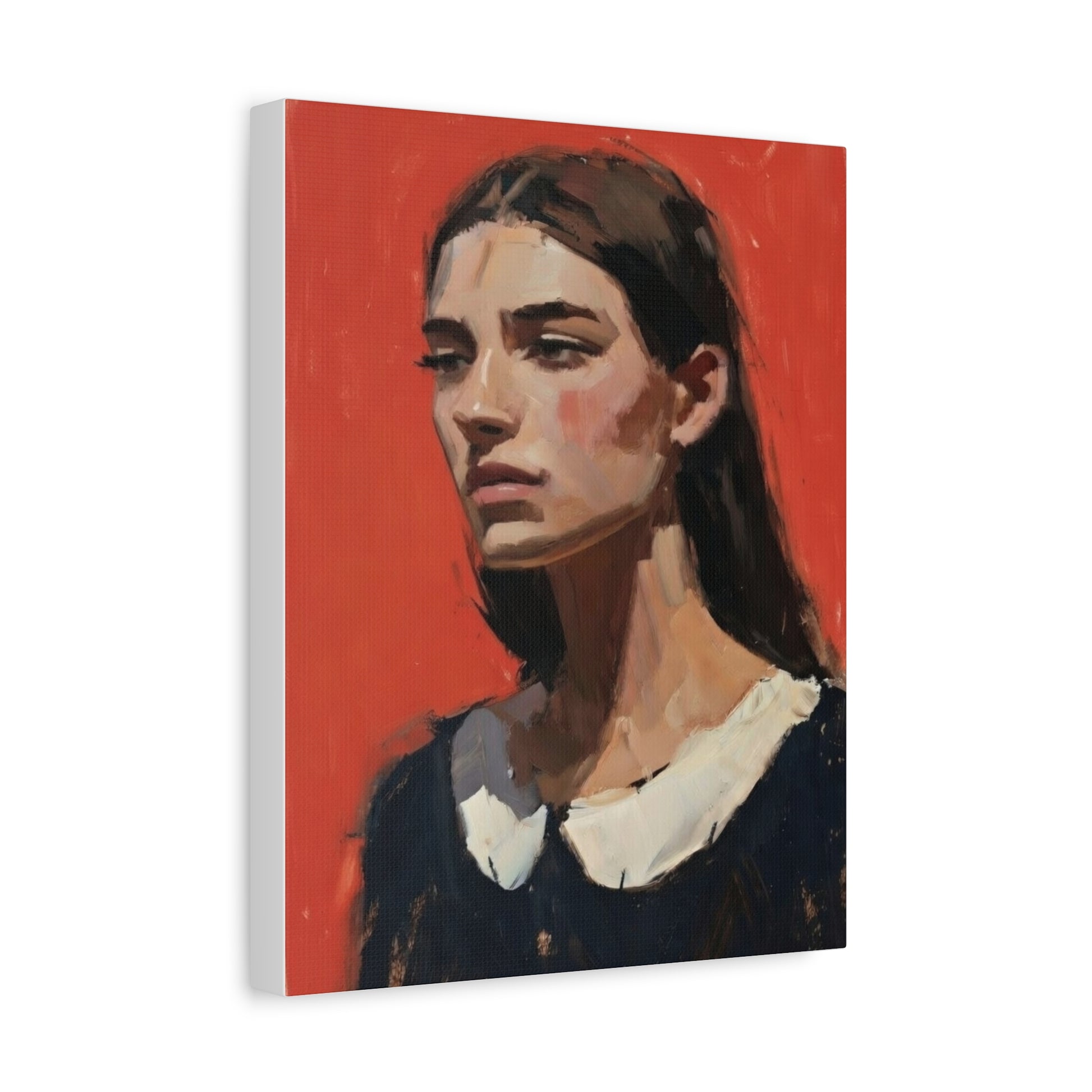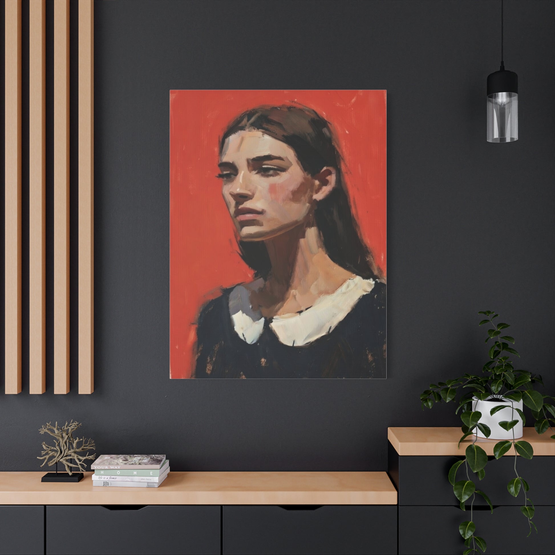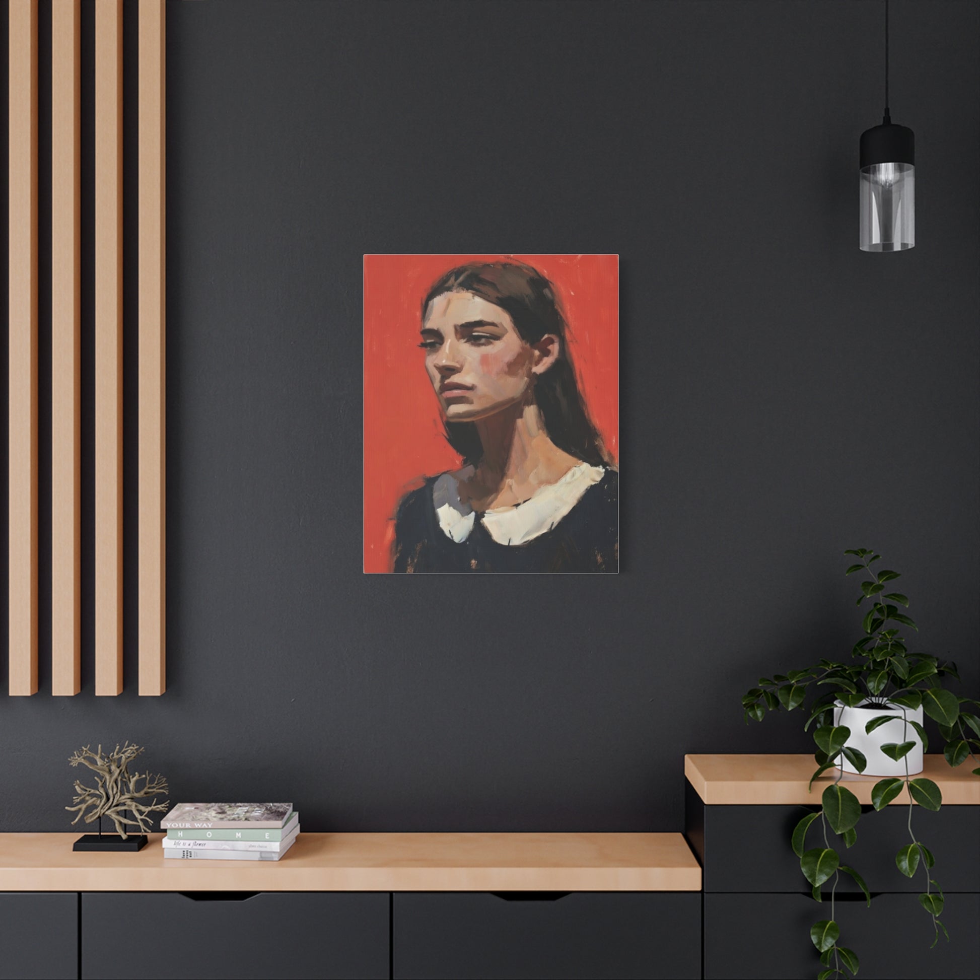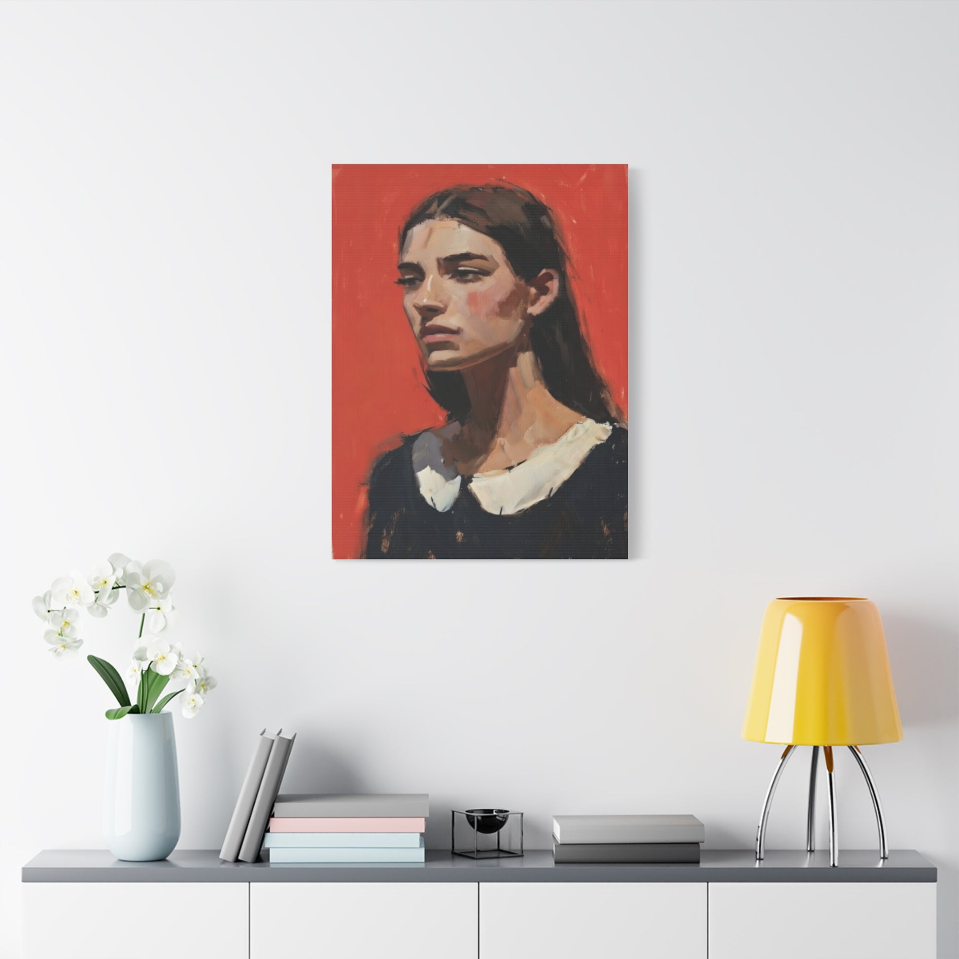 Portrait Canvas Print — Moody Red Figurative Art on Matte Stretched Canvas