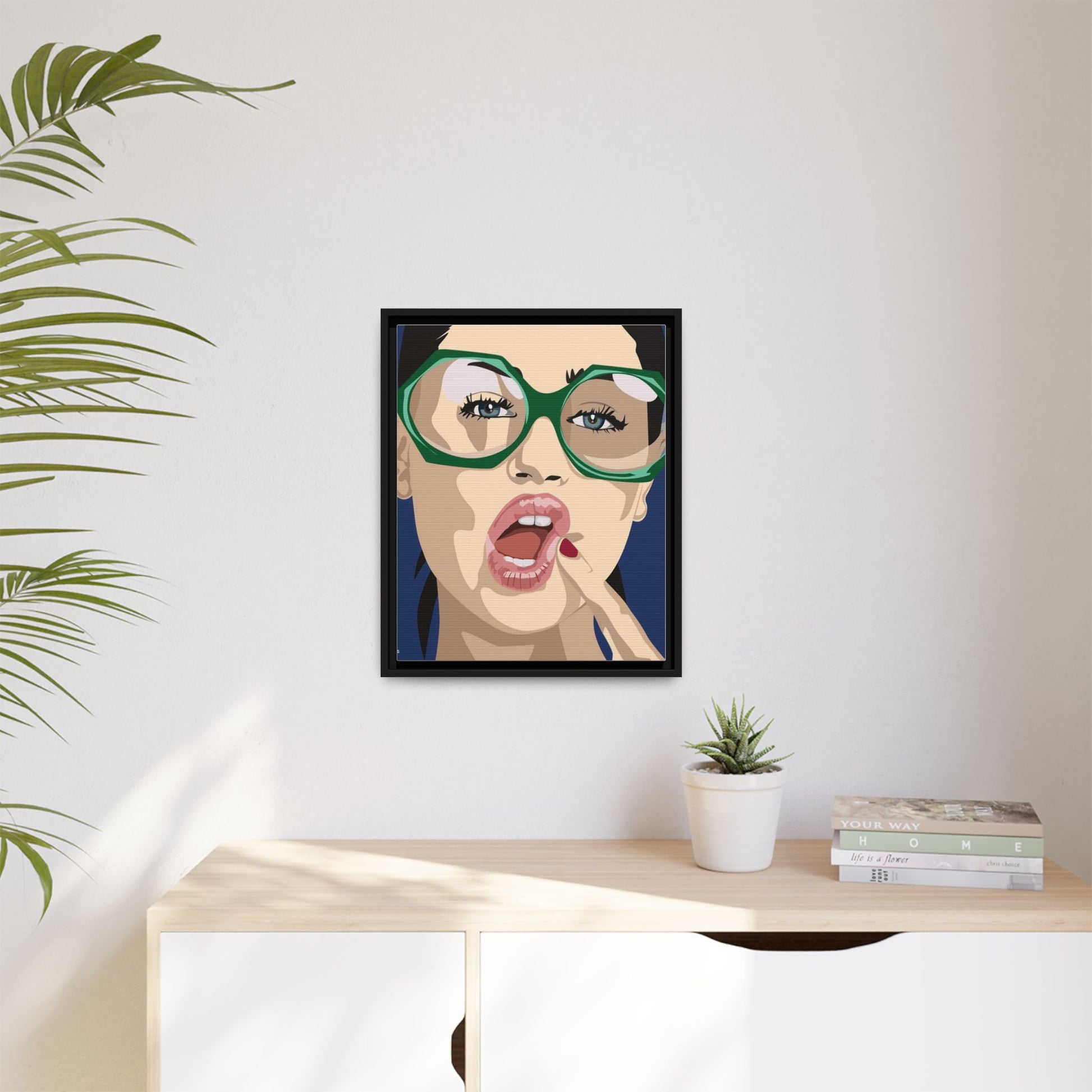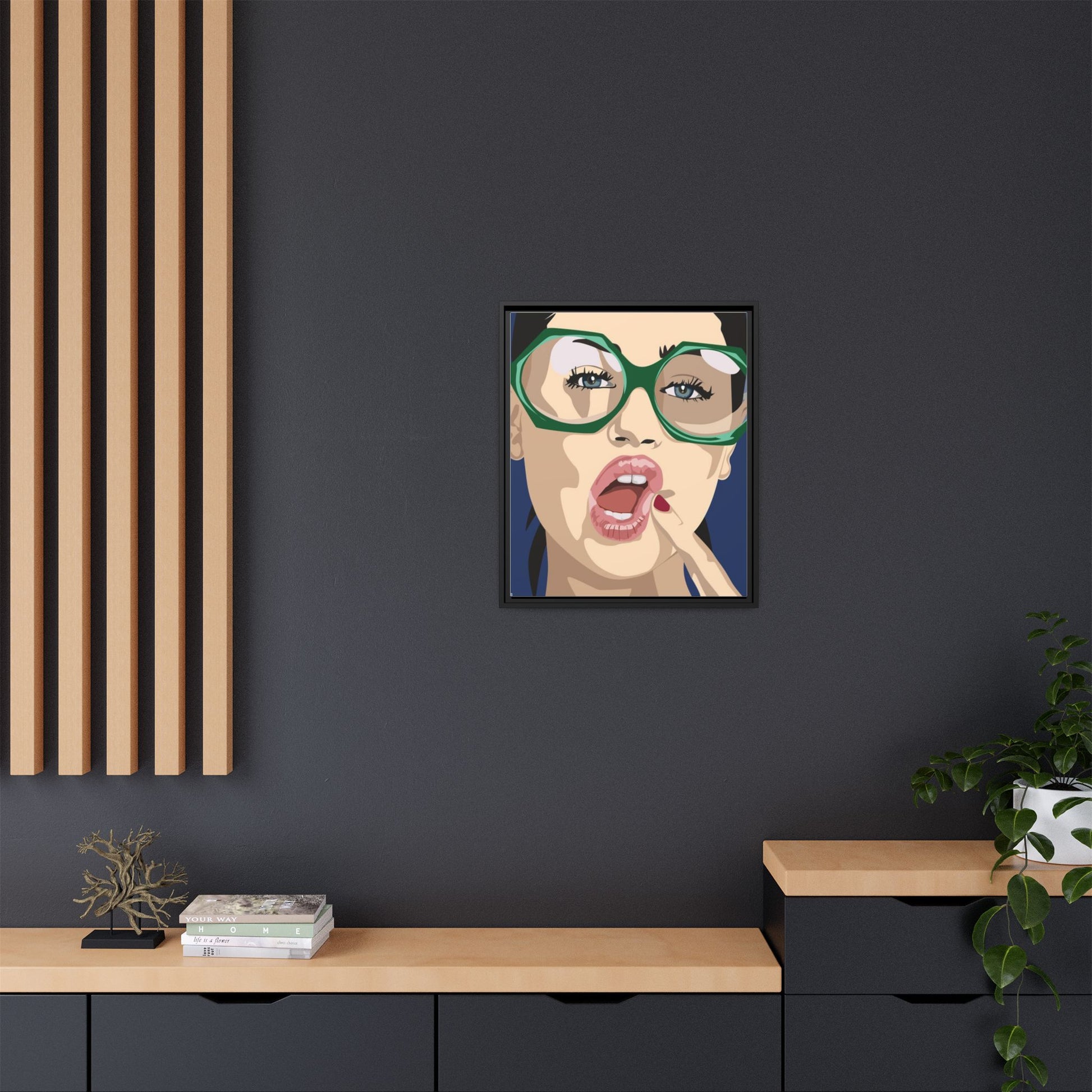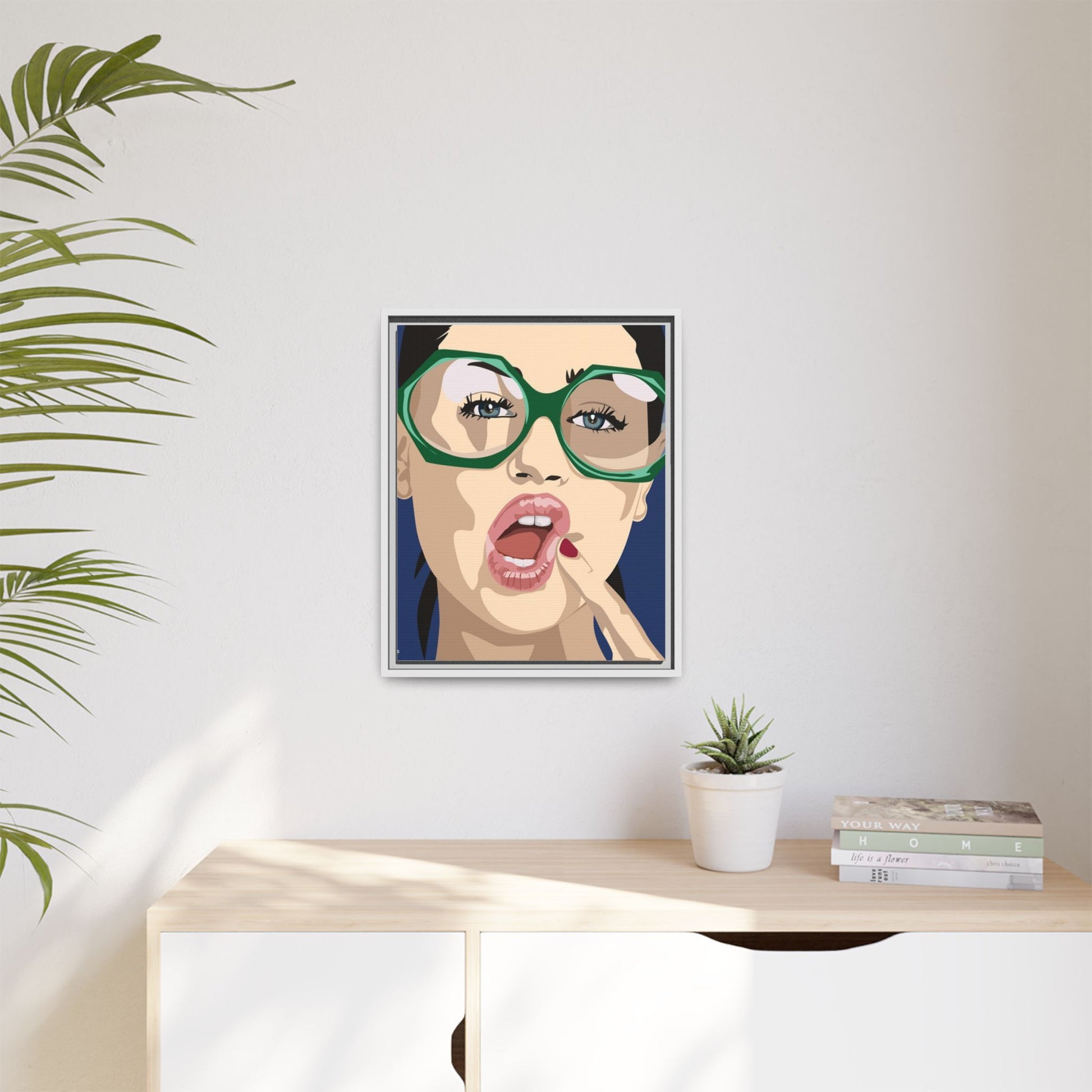 A bold, framed matte canvas that brings pop-art edge to any wall. This multi-color piece features high-contrast, graphic illustration with sharp lines and vivid hues printed using UL-certified Greenguard Gold and non-toxic latex inks. The cotton-poly canvas composite has a proprietary coating for crisp detail, stretched over a sustainably sourced pine frame and finished with sawtooth hardware for easy hanging. It sits confidently in living rooms, studios, or office nooks — a conversation-starting accent that reads modern, playful, and artful.