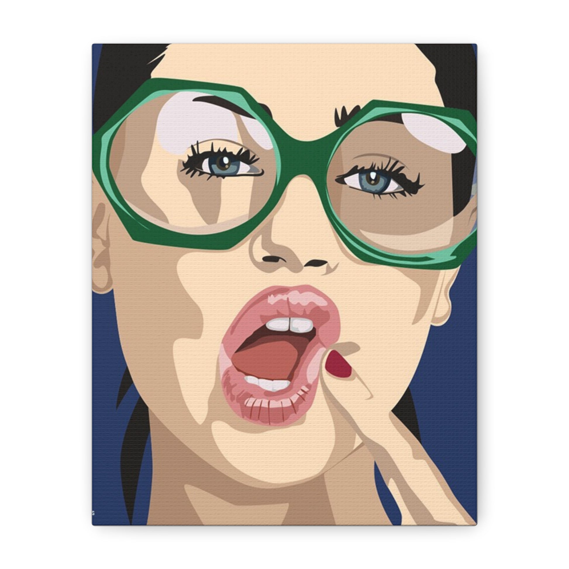 A vibrant stretched canvas print that brings pop-art attitude to any wall. Printed with UL-certified Greenguard Gold latex inks on a cotton-poly canvas, the artwork’s bold lines and glossy tones remain true and fade-resistant. The image is hand-stretched over a 1.25" pine frame sourced from FSC-certified renewable forests, with soft rubber dots on the back for secure, scratch-free display and included hanging hardware for easy installation. Lightweight yet sturdy, this canvas adds a playful, modern focal point to living rooms, studios, or boutique spaces — it’s designed to sit confidently above a shelf or anchor a gallery wall with instant personality.
