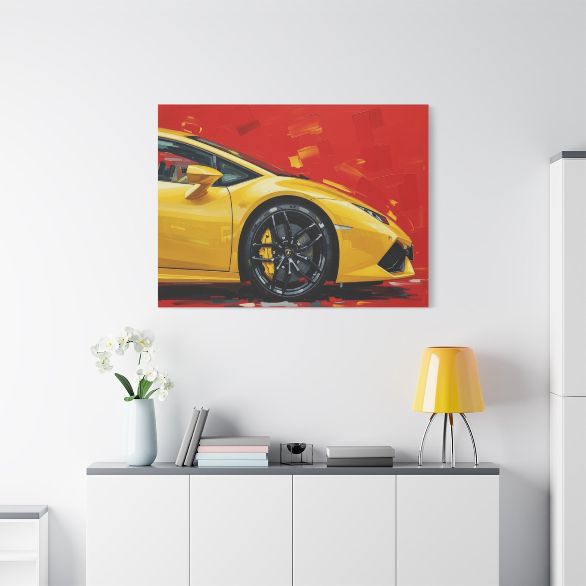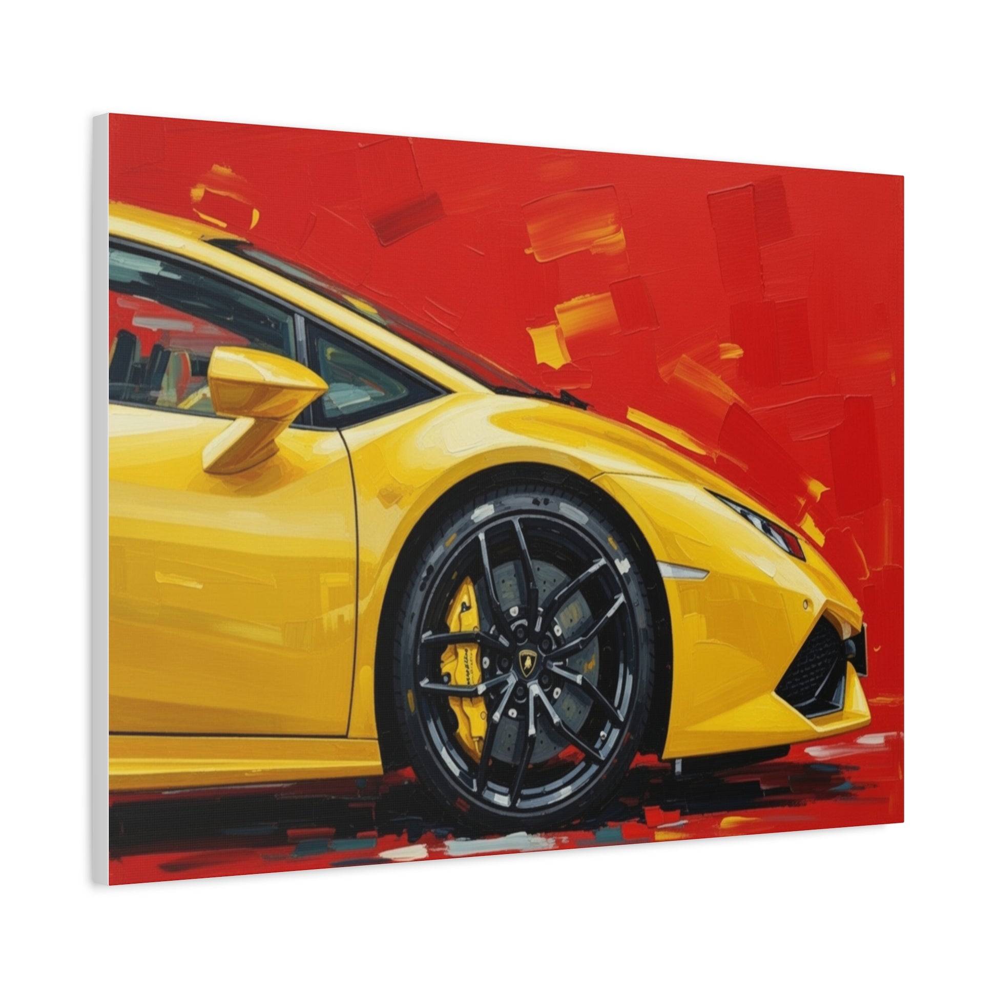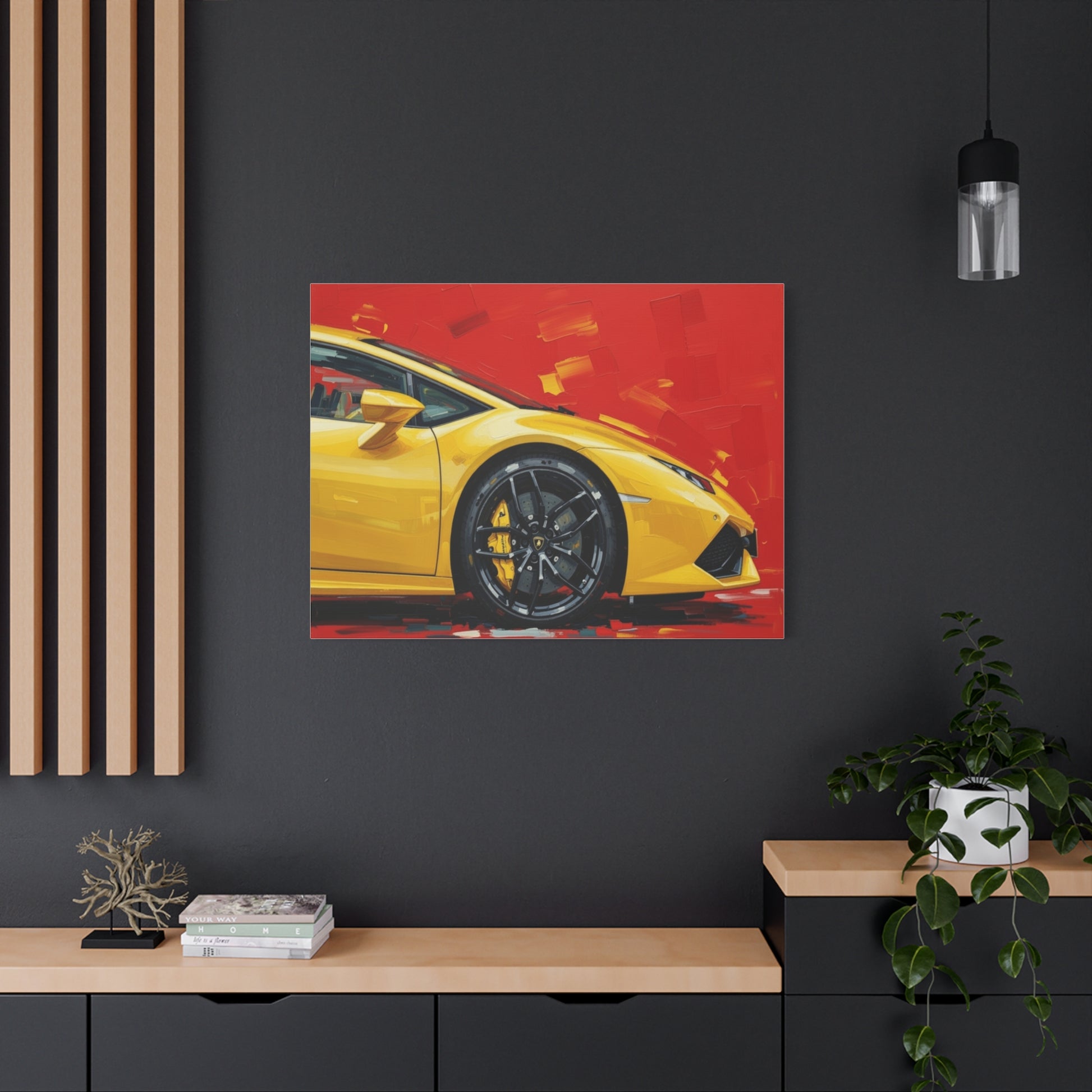 Yellow Sports Car Canvas Print - Modern Automotive Wall Art (Matte Stretched)