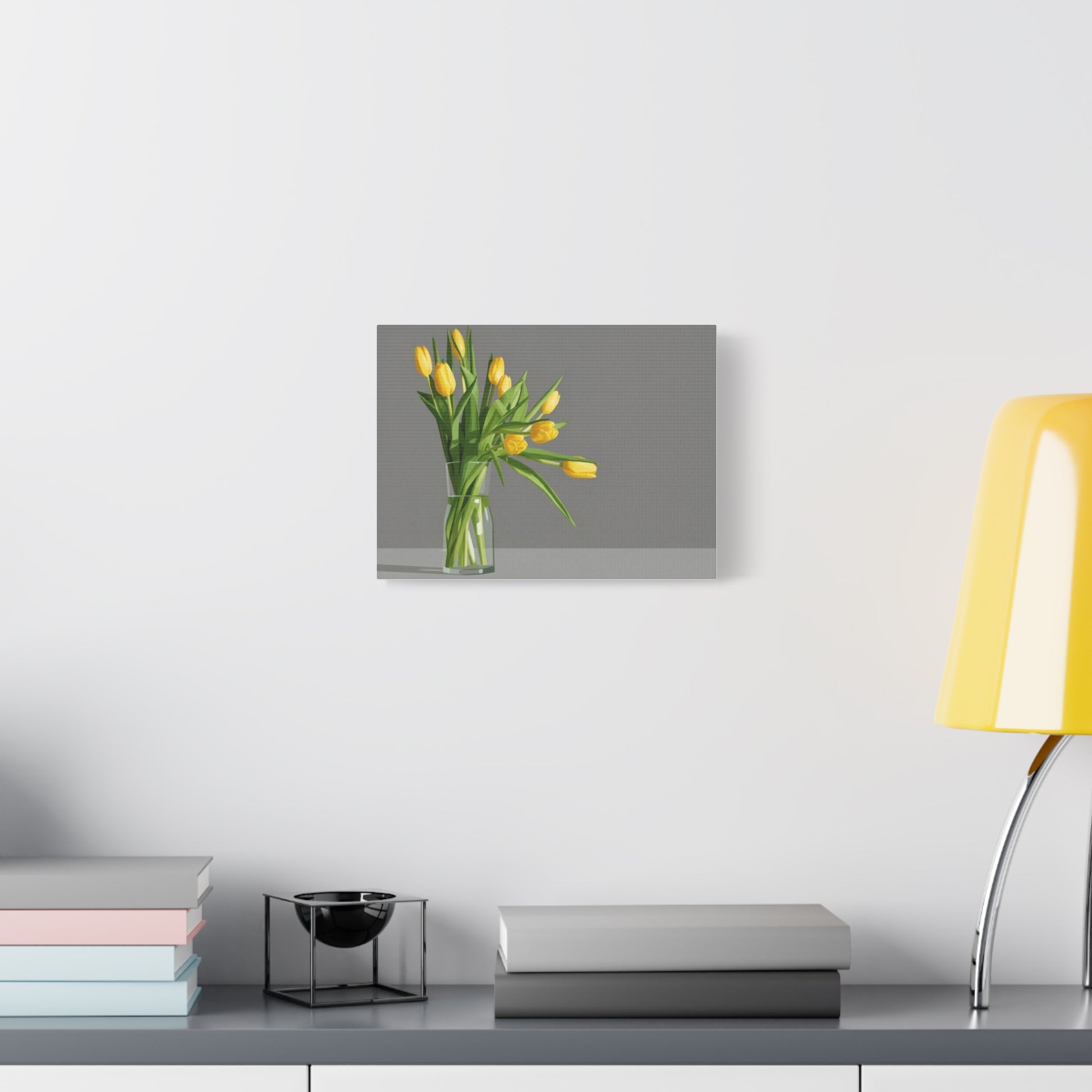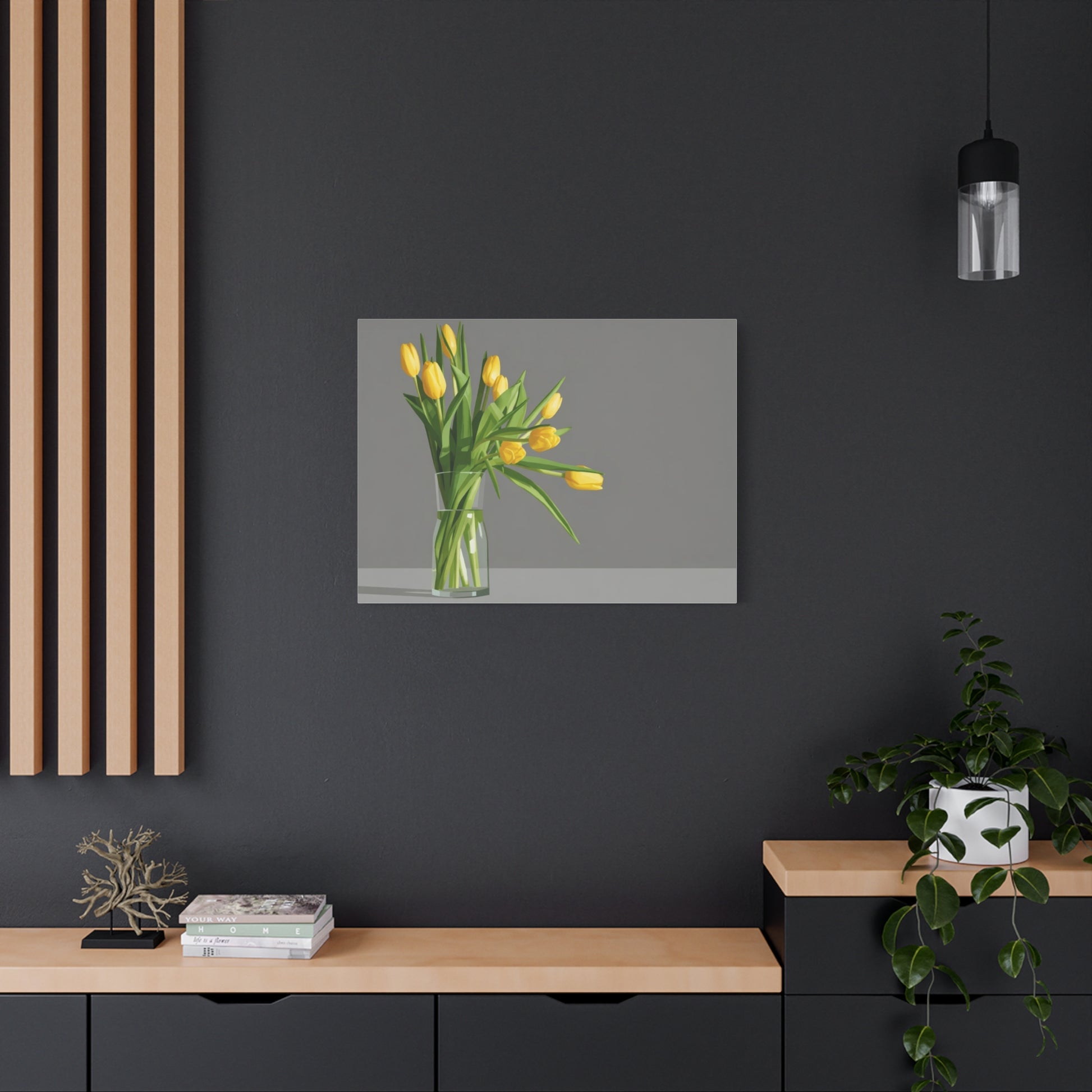 Yellow Tulips in Glass Vase — Matte Stretched Canvas Wall Art