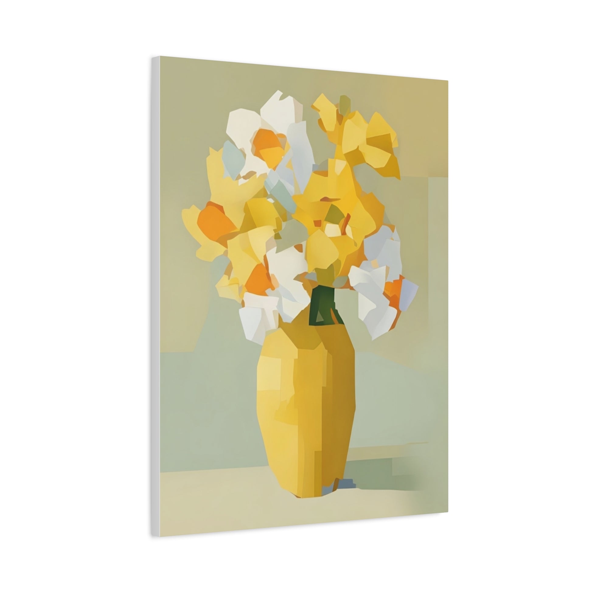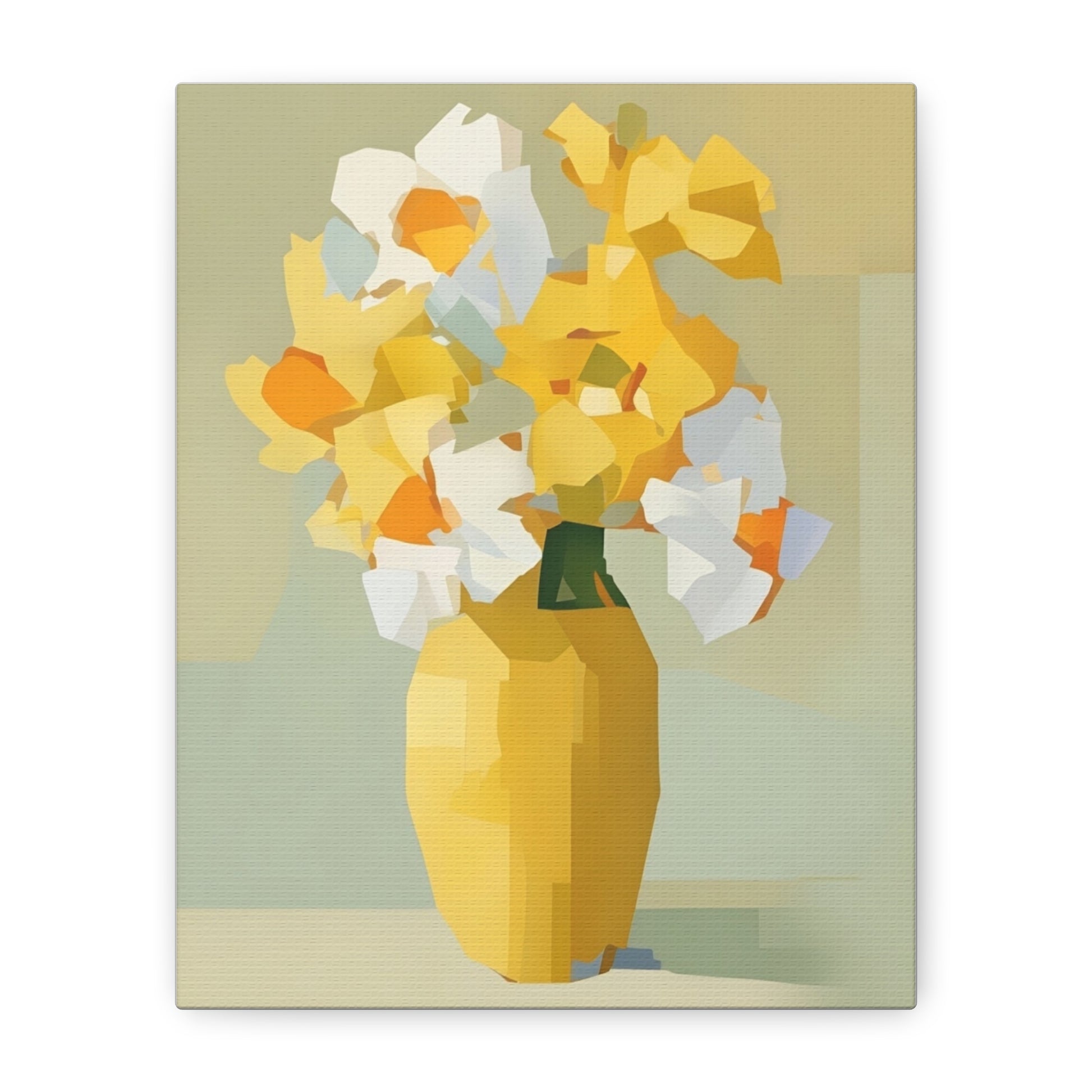 Yellow Vase Floral Canvas Print — Modern Abstract Daffodil Wall Art